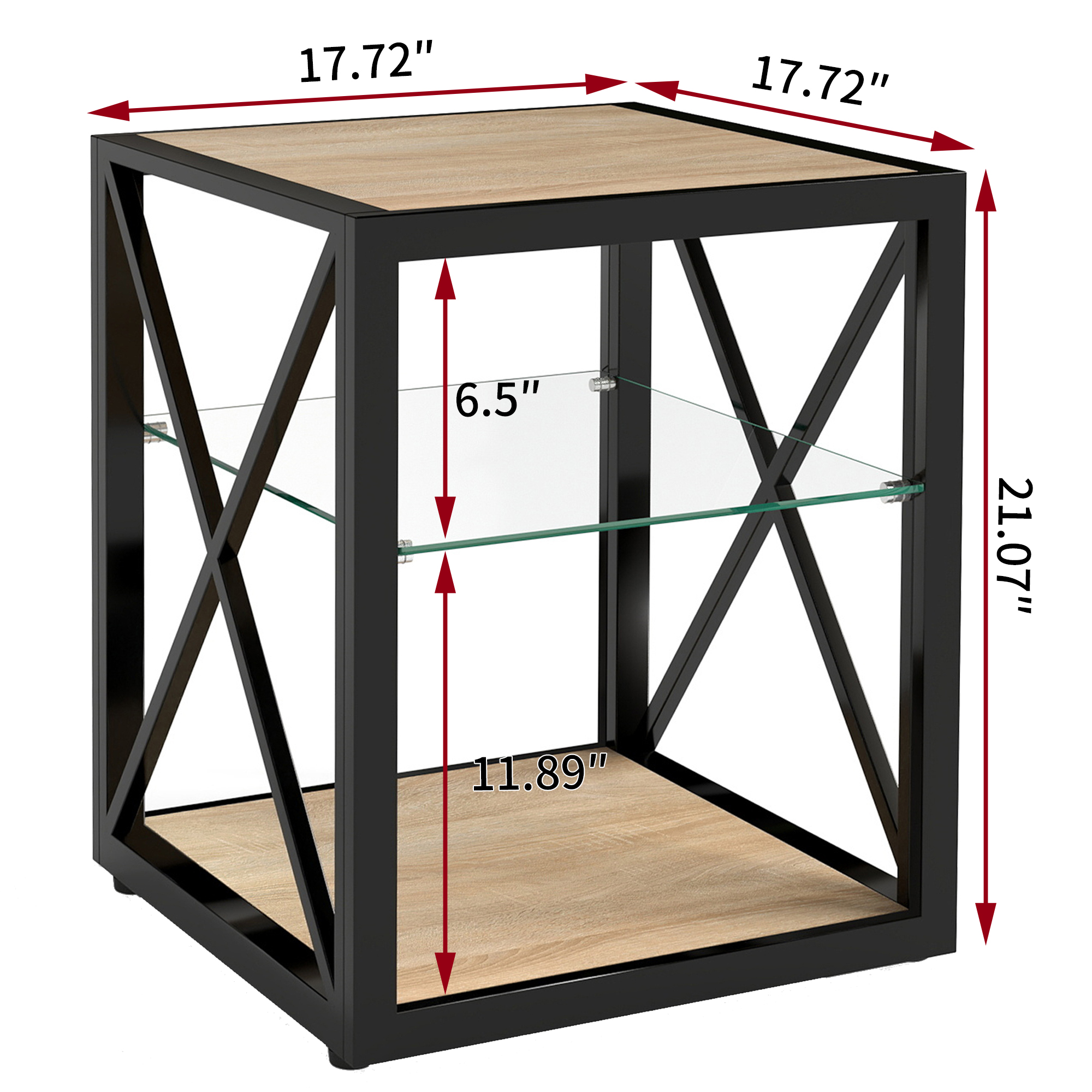Specification Product Information Product Type :Single Box Product Product Name:1 piece Modern End Table Nightstand for Bedroom & Living Room, Tempered Glass&Natural Wood MDF Top , Industrial Style Side Table...