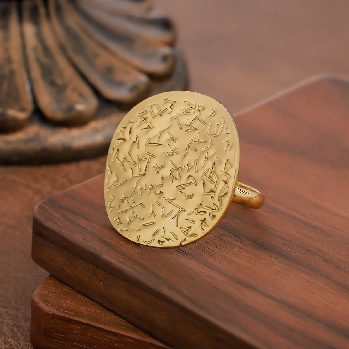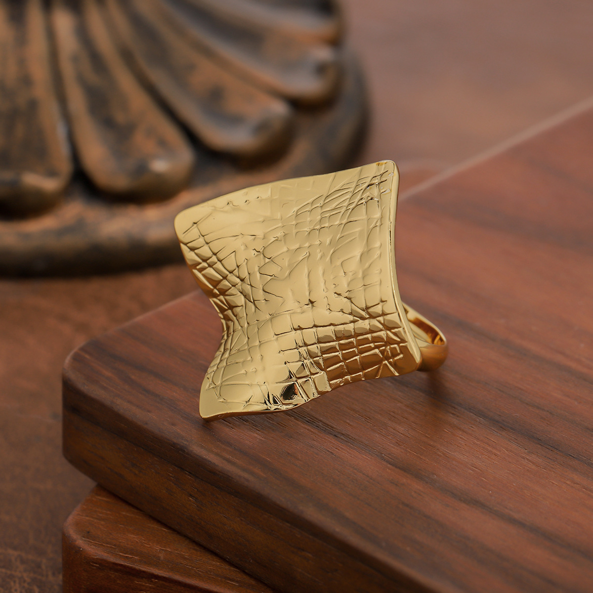 1 Piece Women's Statement Ring, Gold Tone Stainless Steel Crinkled Geometric Design, Niche...