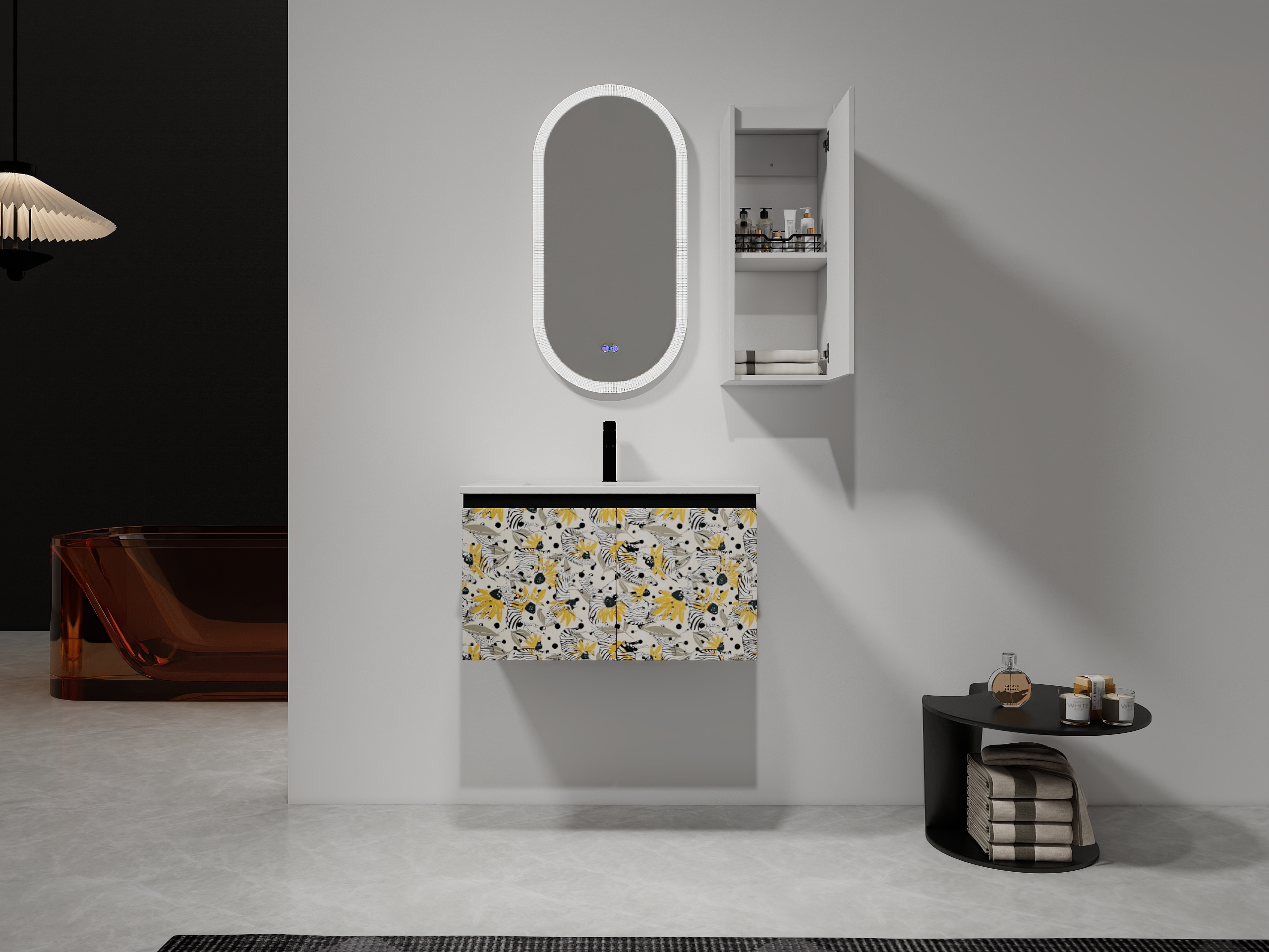 12 Bathroom Side Cabinet Soft Close Doors Float Mounting Design KD Packing