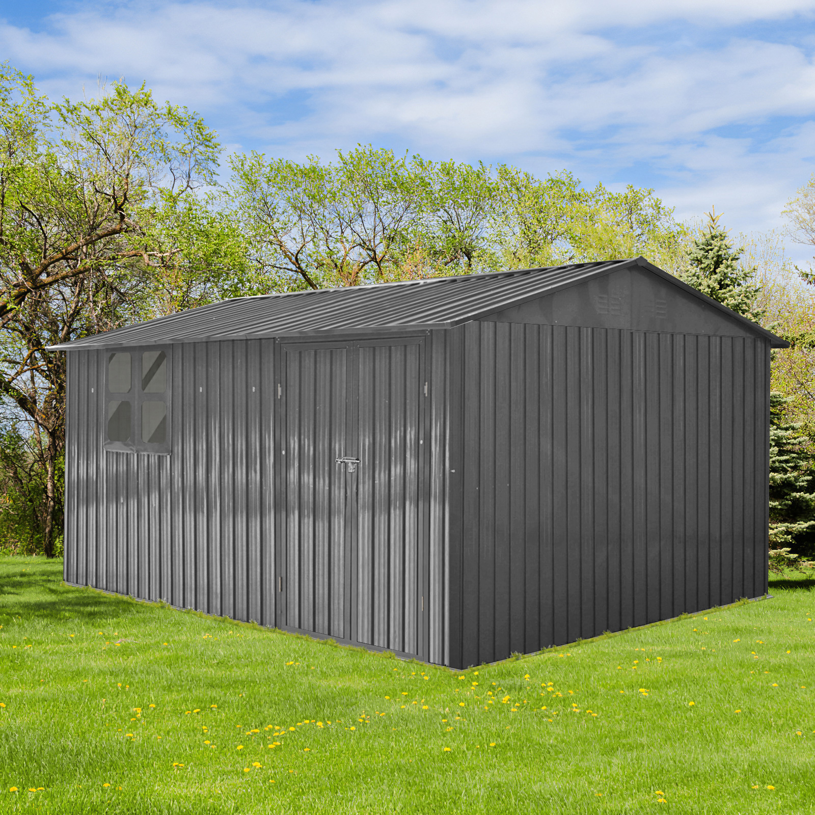 12x10 Ft Metal Garden Sheds Outdoor Storage Sheds Grey With Window