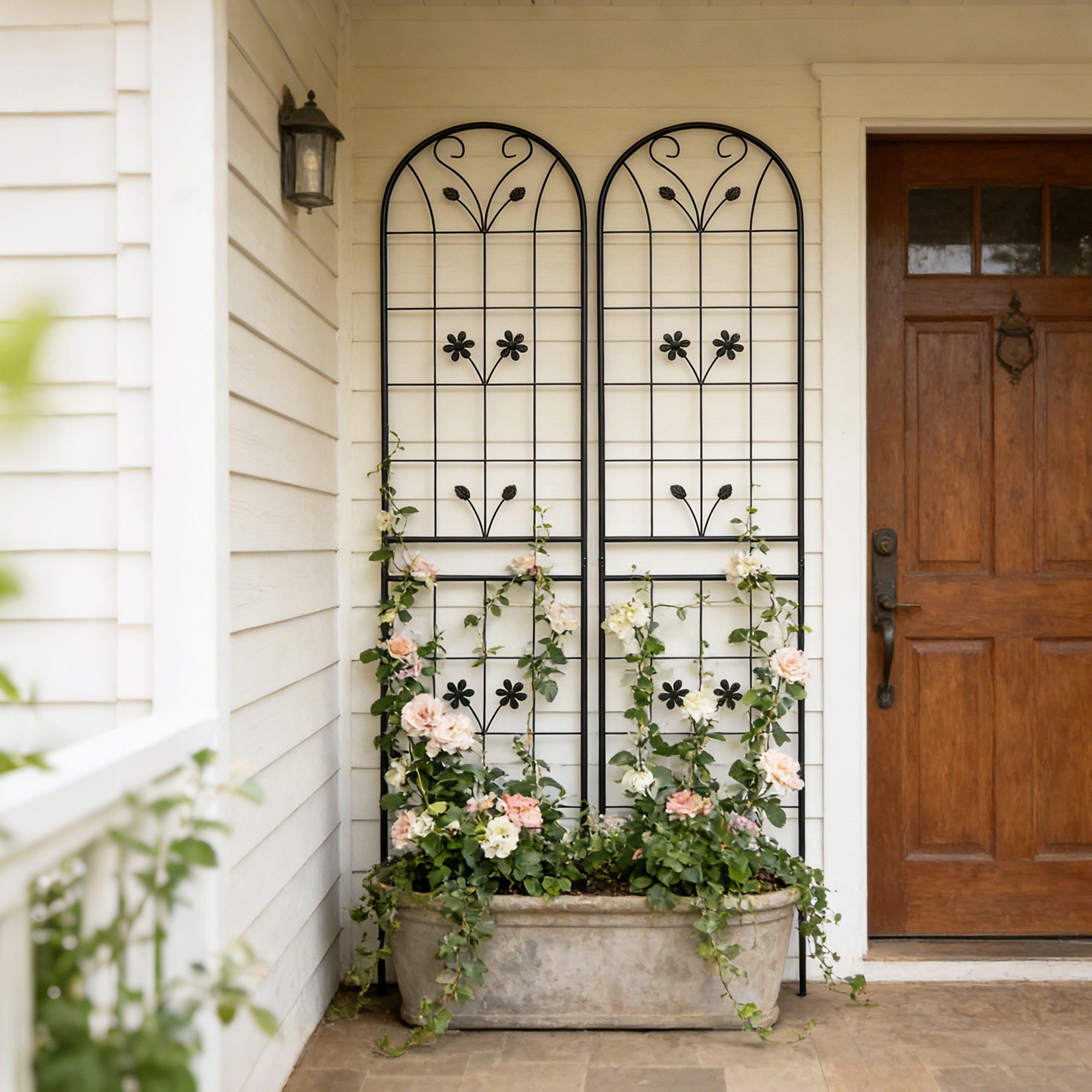 - Multi-purpose: Great metal garden trellis for climbing plants, such as ivy vines, rose, morning glory, clematis, jasmine, grape, blackberry, cucumber, beans, peas, etc.