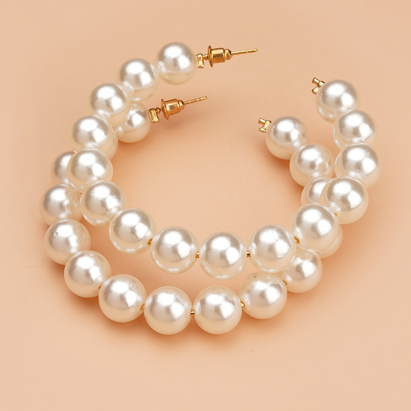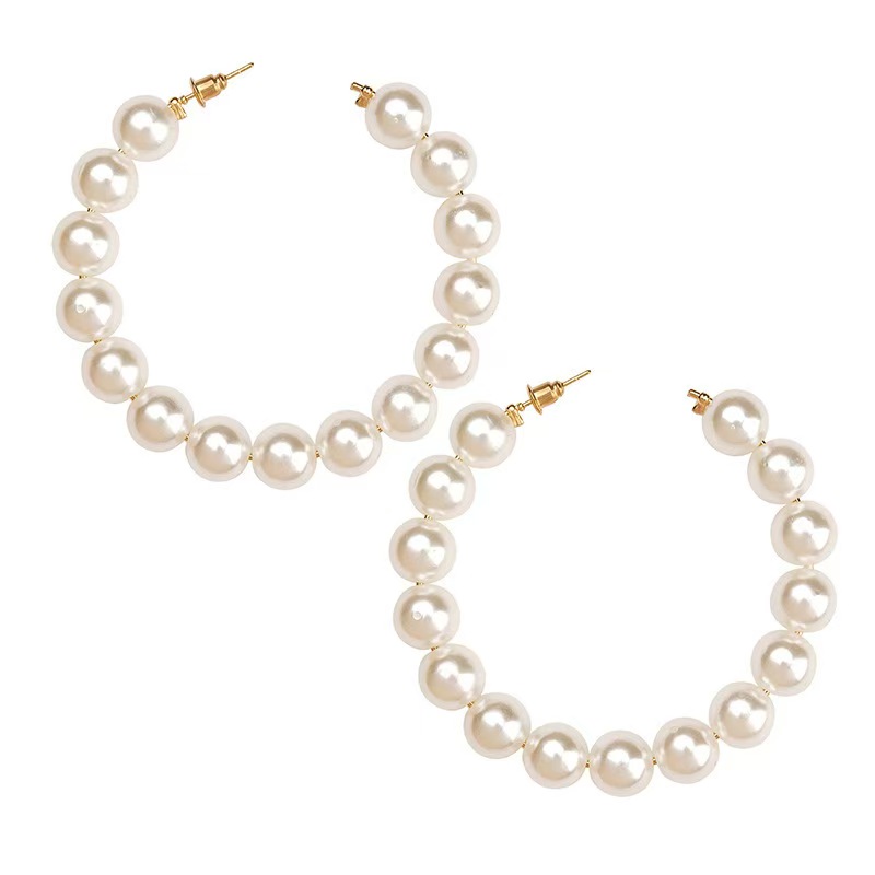2026 New Fashion Large Hoop Pearl Earrings For Women, European American Style Versatile...