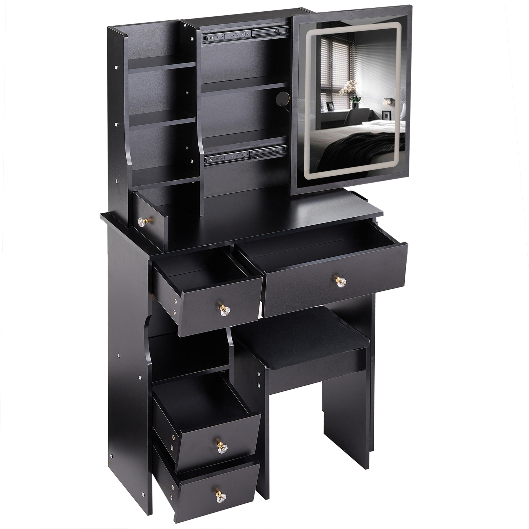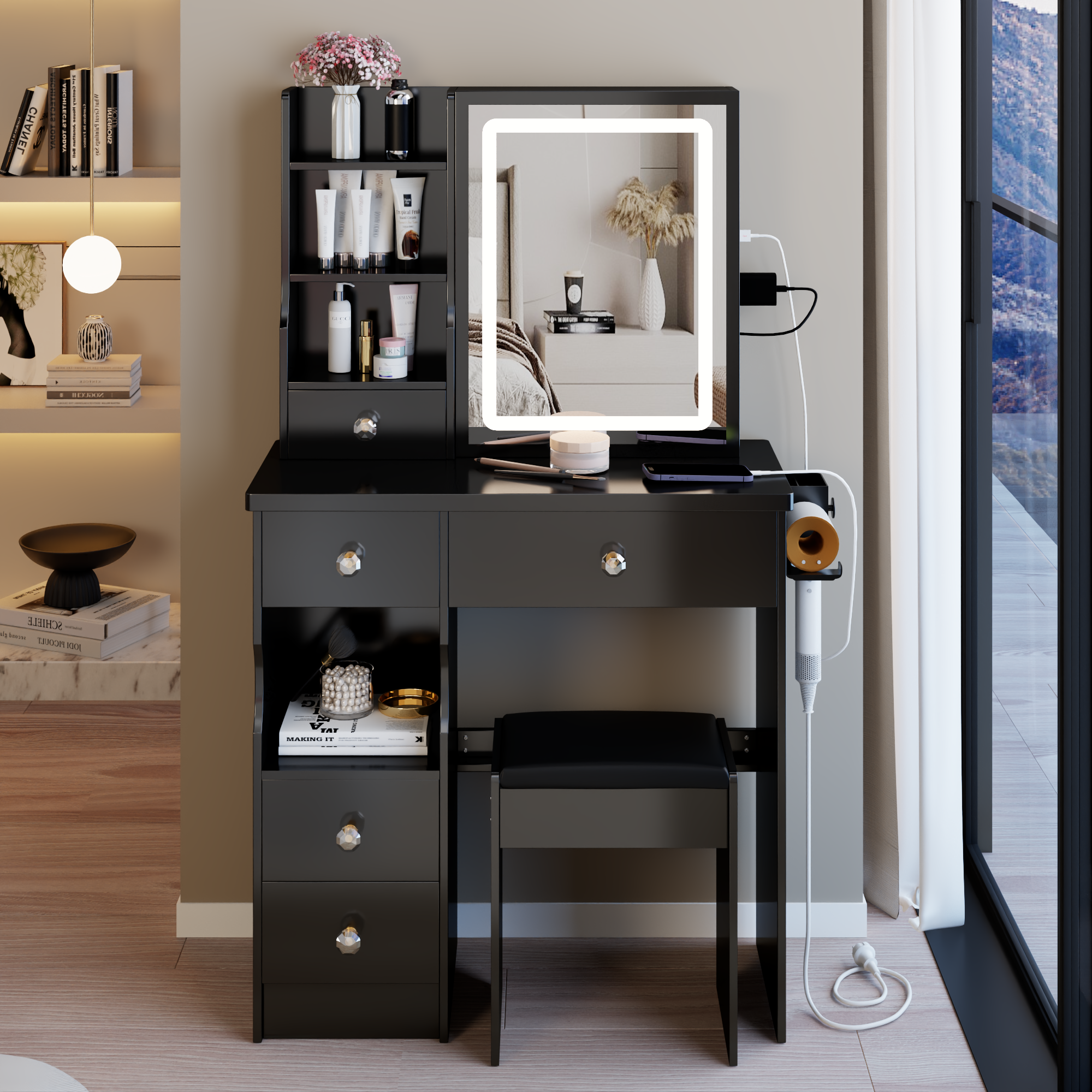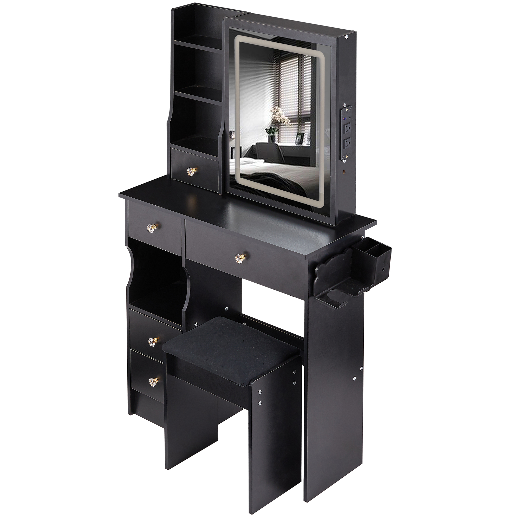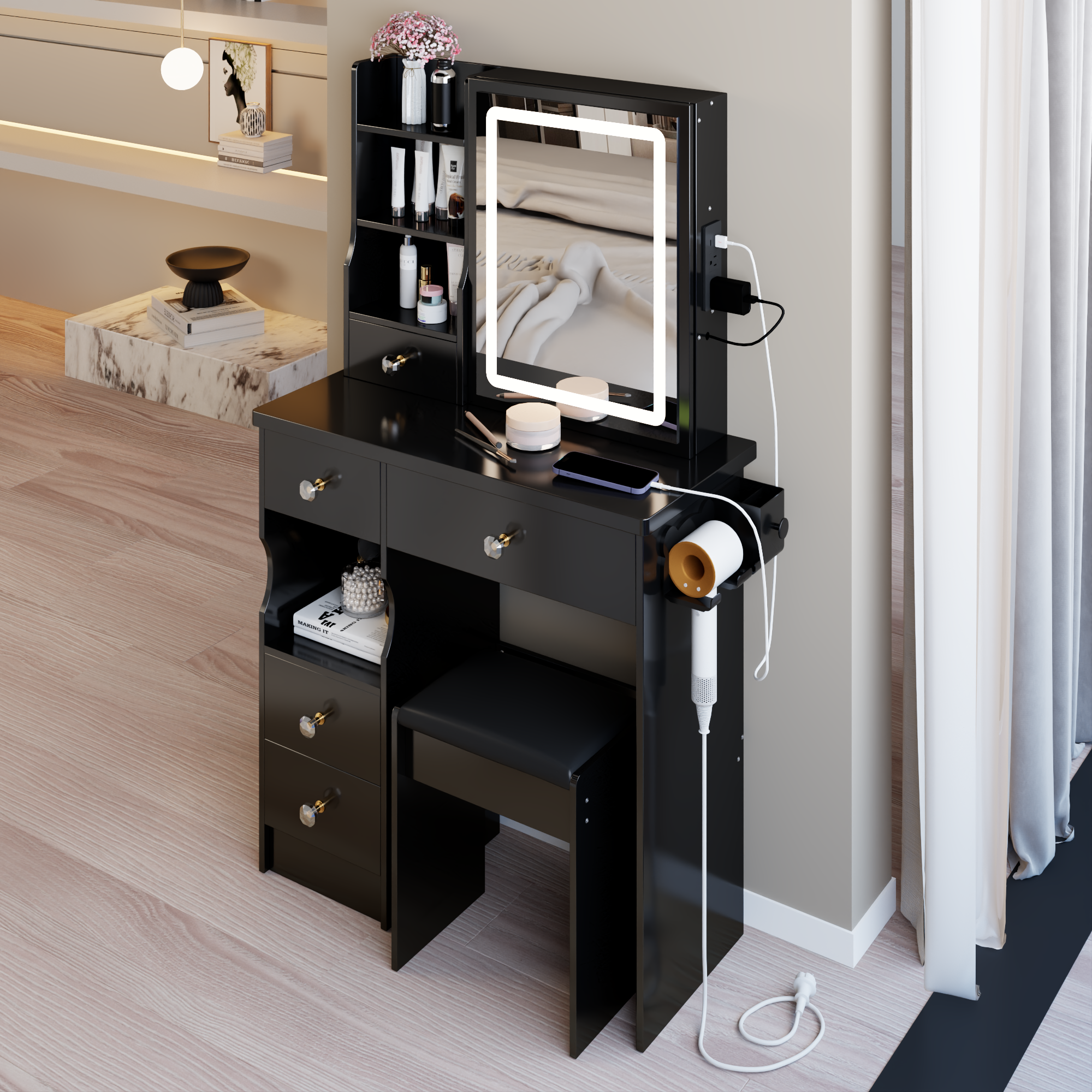 Specification Product Information Product Type :Single Box Product Product Name:29.2" Small Size Drawer Desktop Vanity Table + Cushioned Stool, 2 AC+2 USB Power Station, Hair dryer bracket, Extra Large Touch Control S...