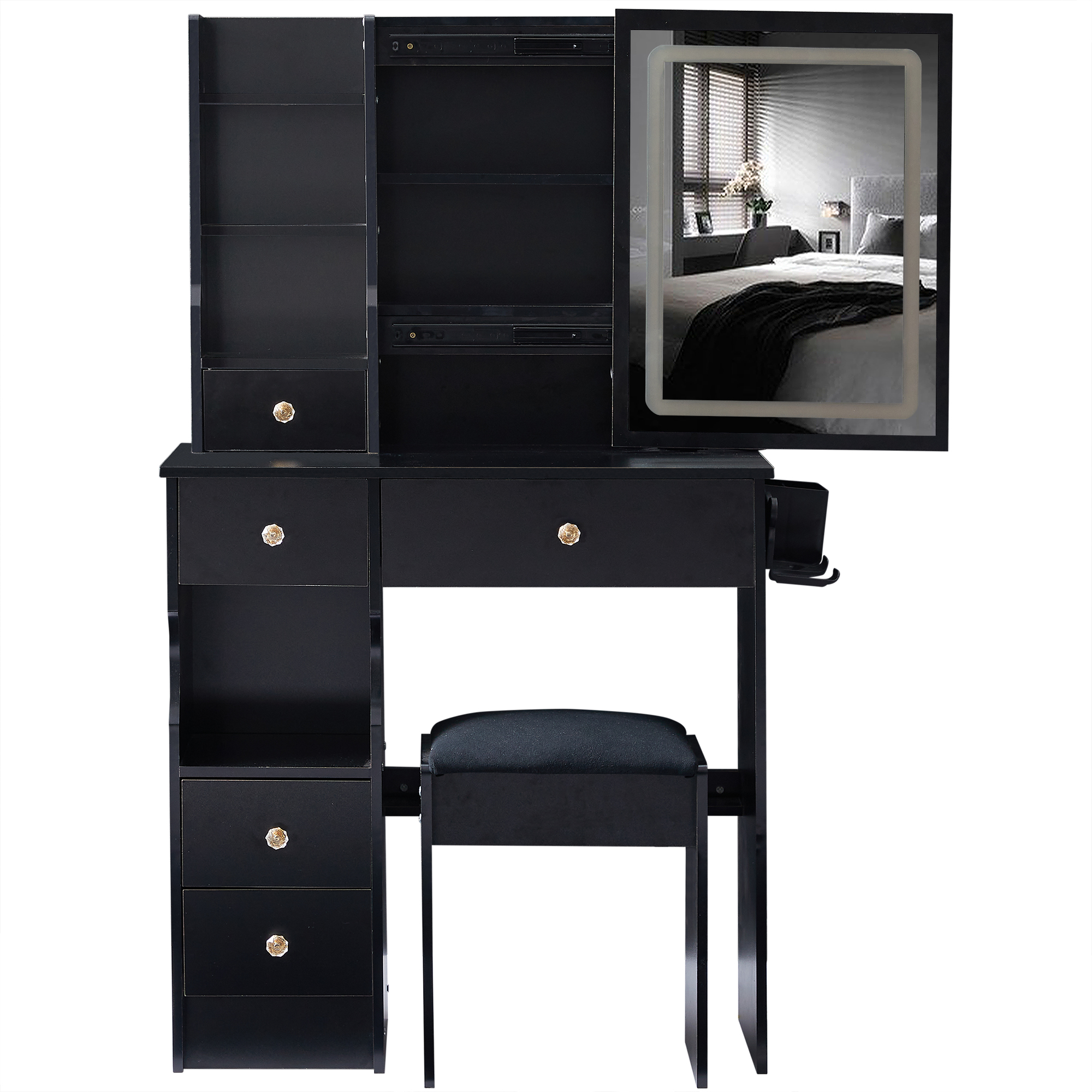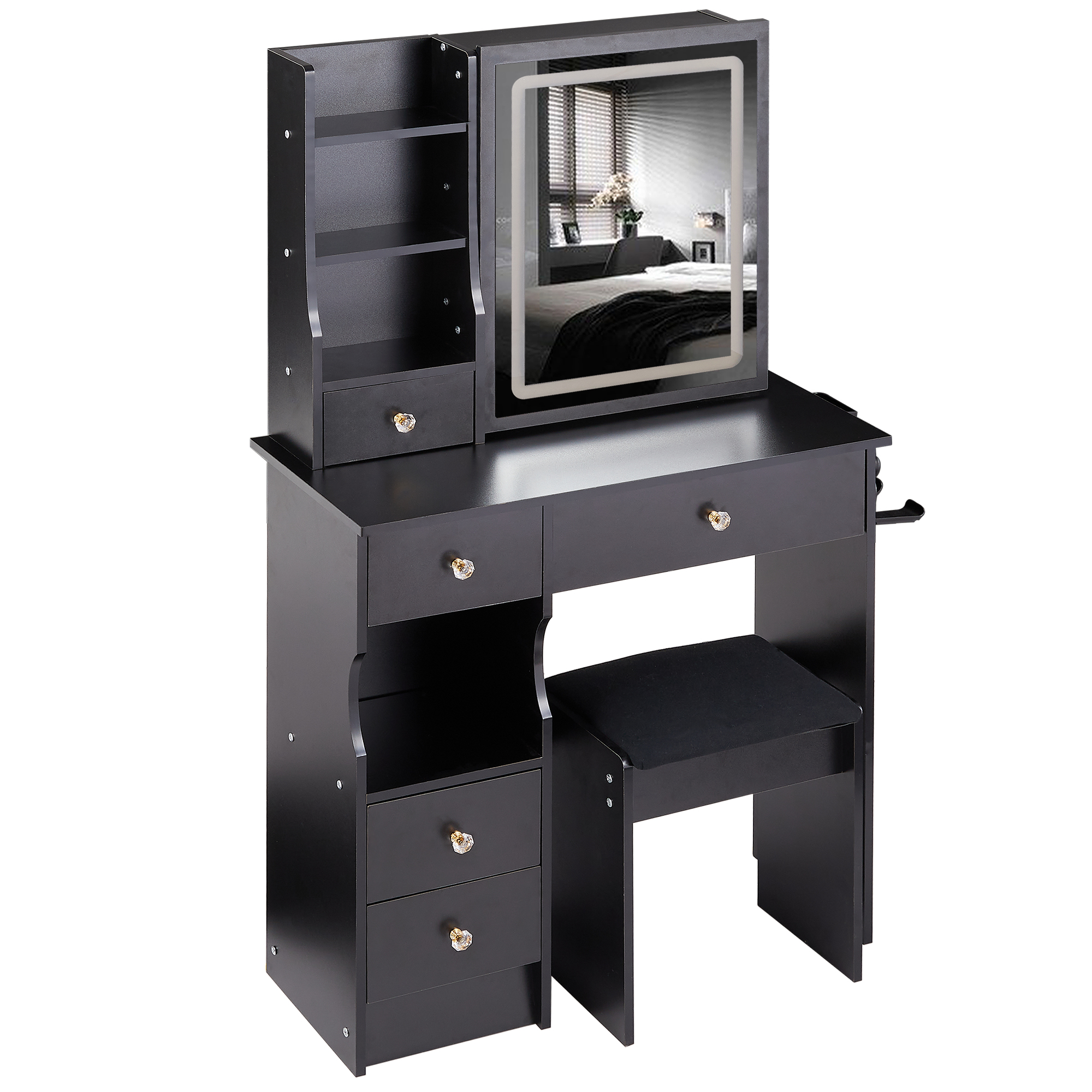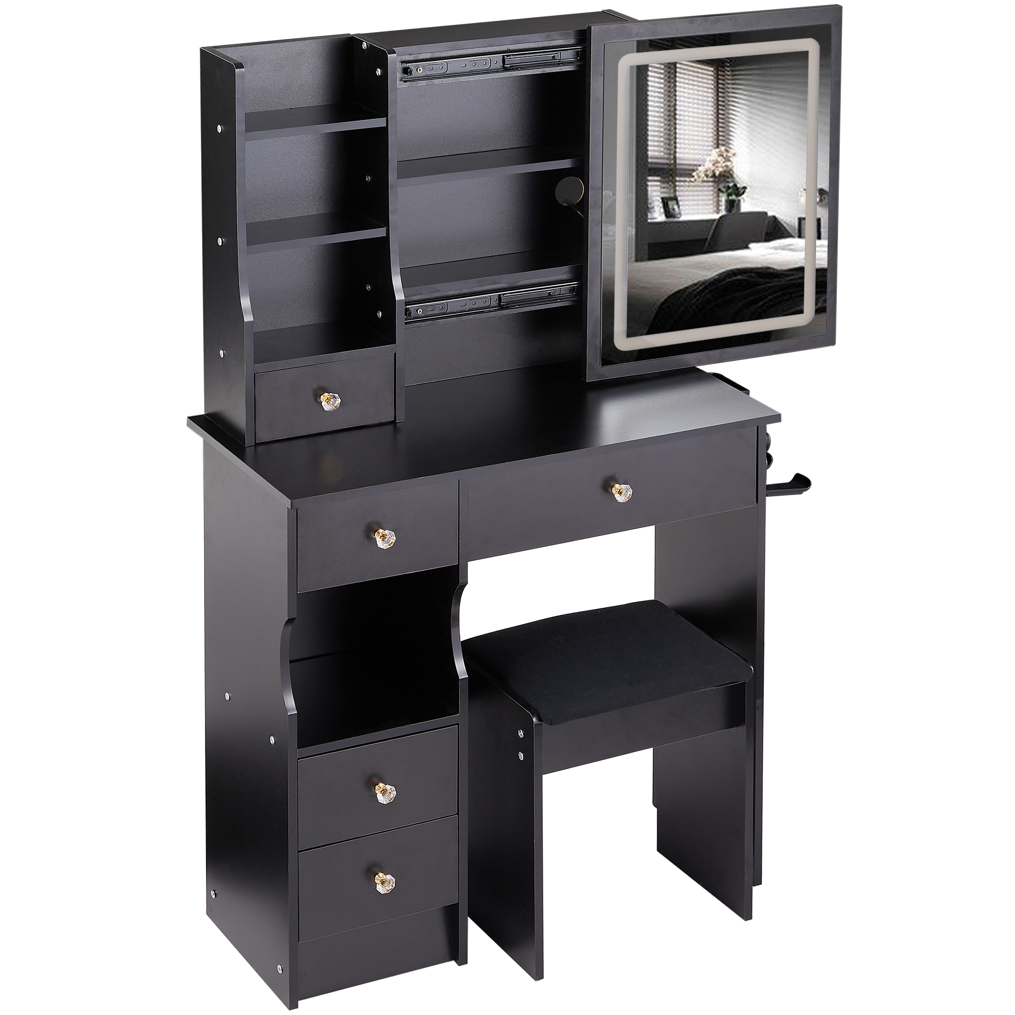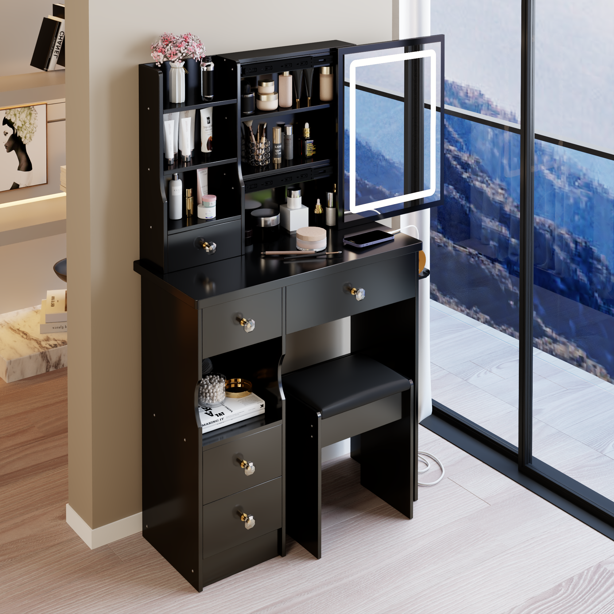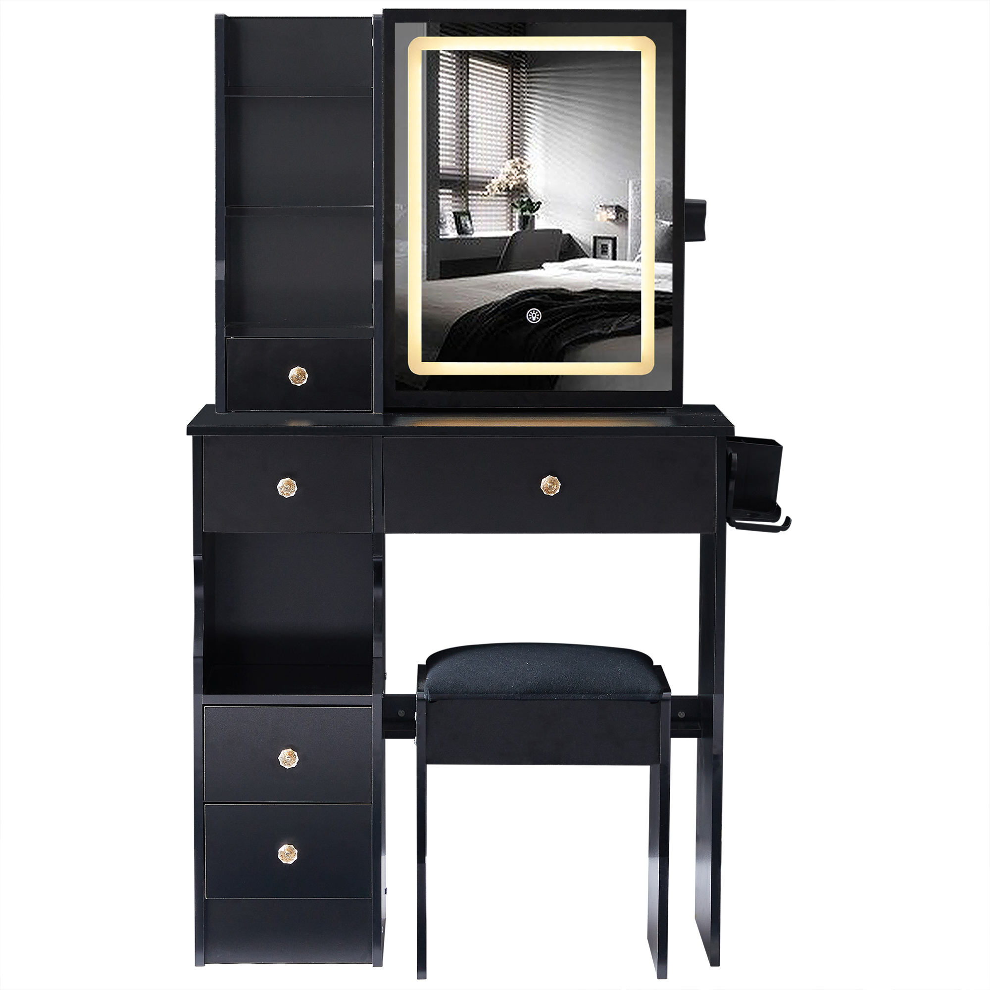 Specification Product Information Product Type :Single Box Product Product Name:29.2" Small Size Drawer Desktop Vanity Table + Cushioned Stool, 2 AC+2 USB Power Station, Hair dryer bracket, Extra Large Touch Control S...