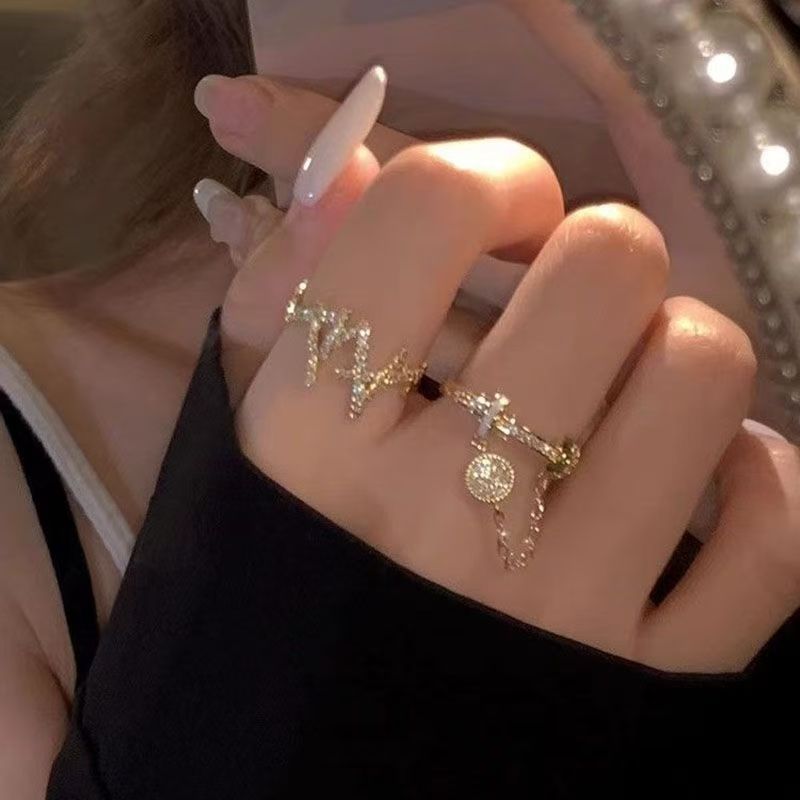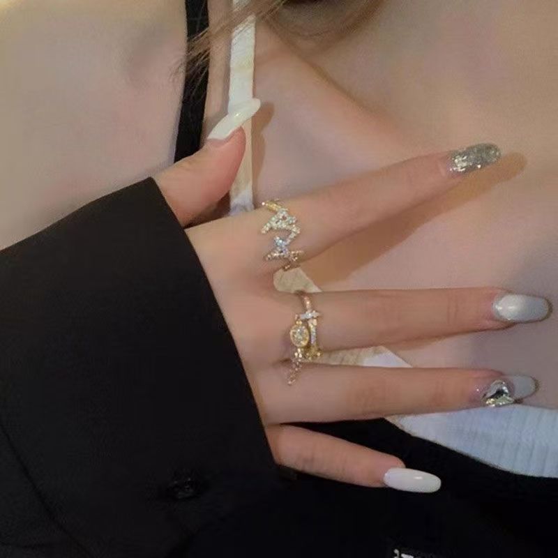 2PC Y2K Bling Zircon Open Ring, Korean & Japanese Style, Elegant All Match, Minimalist Niche...