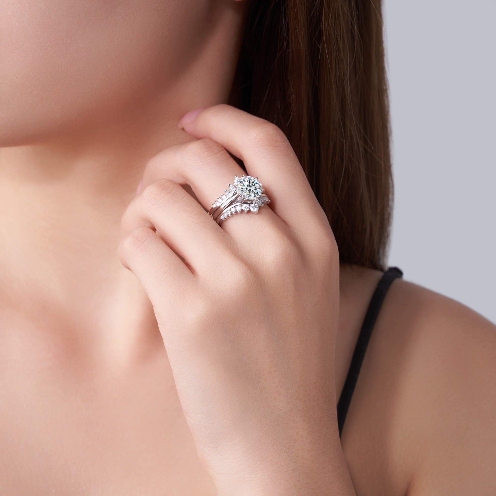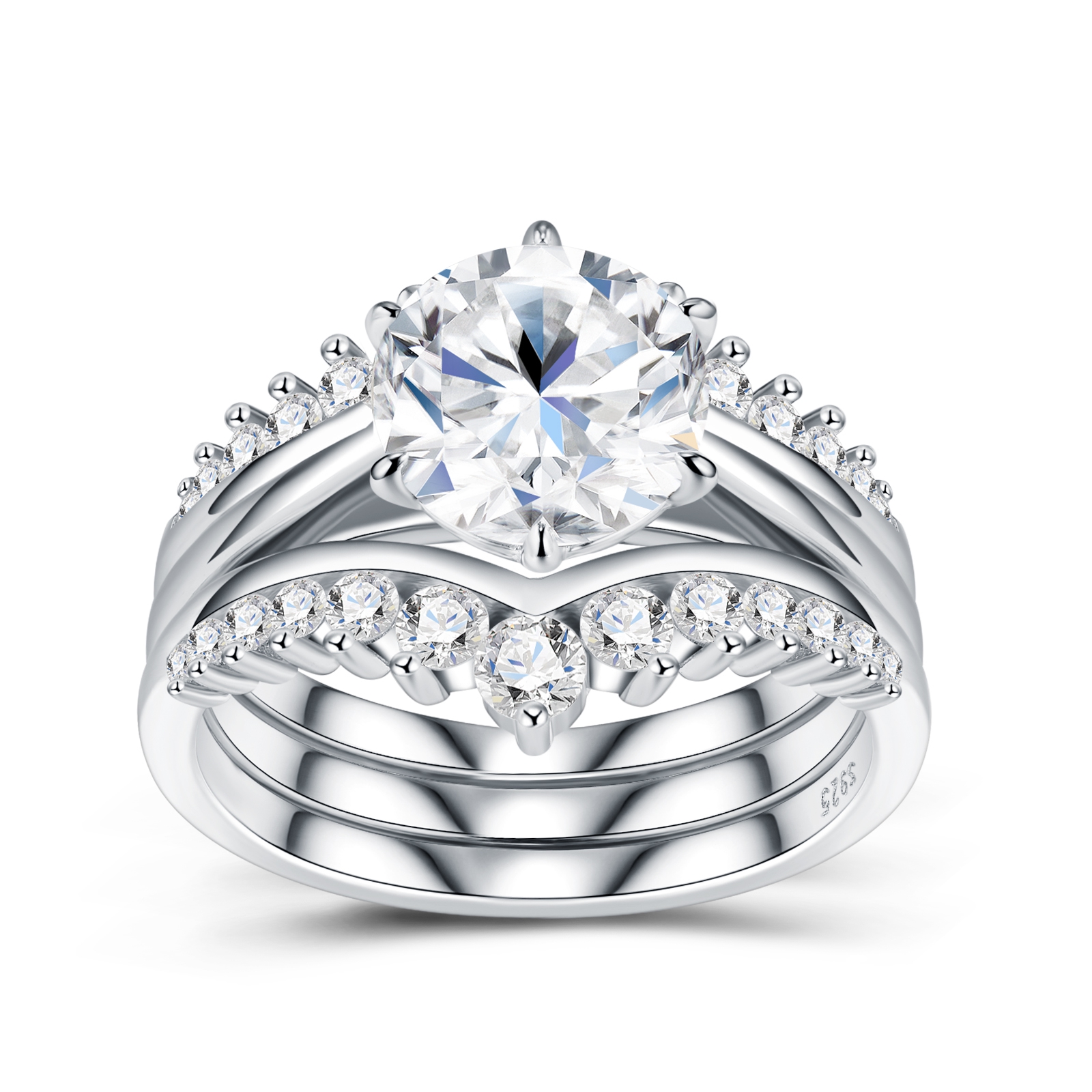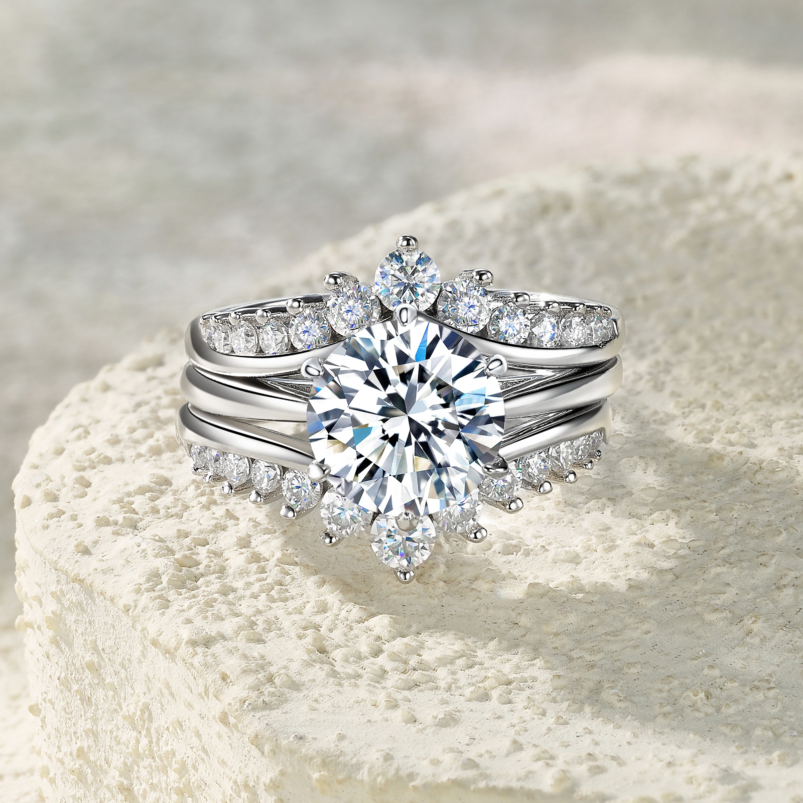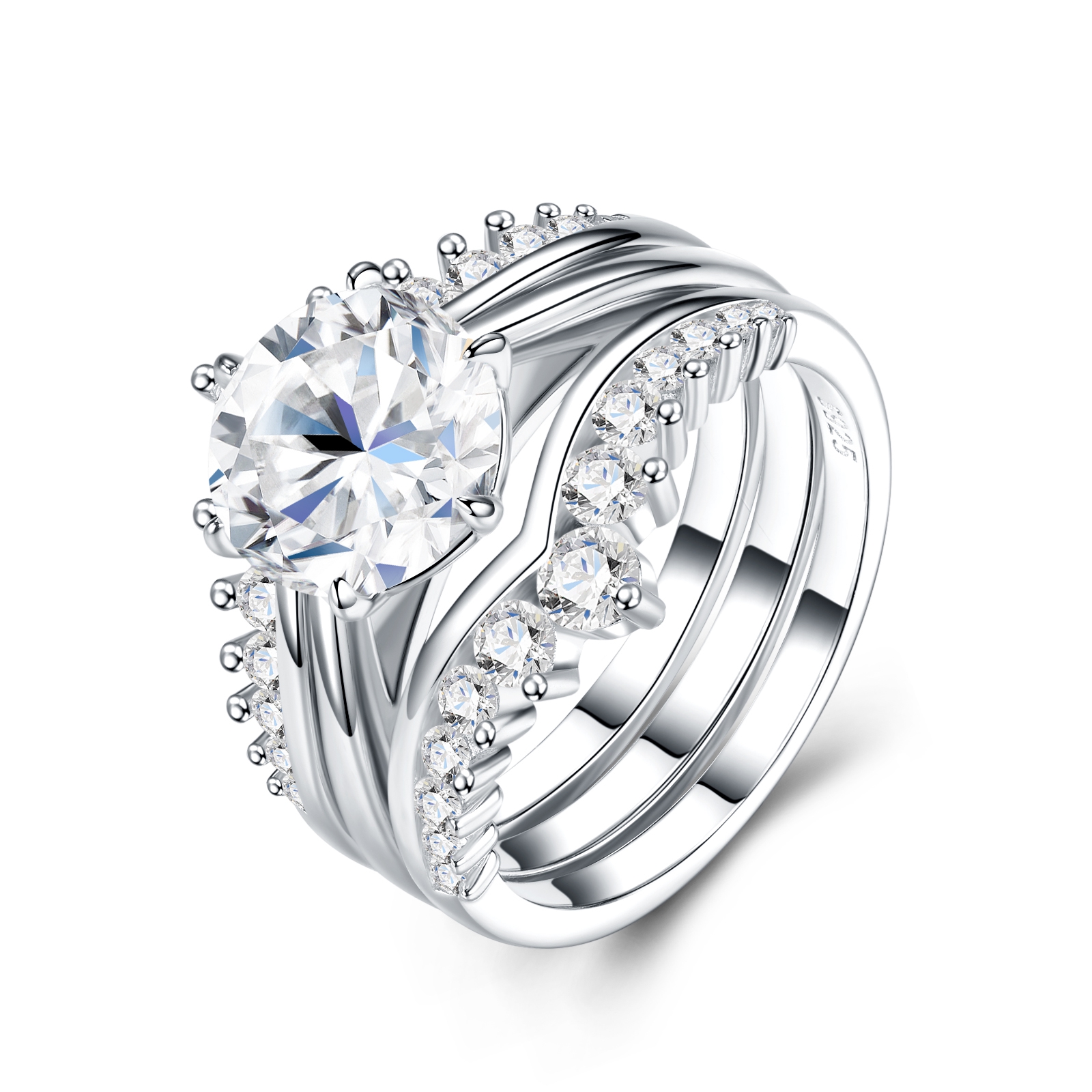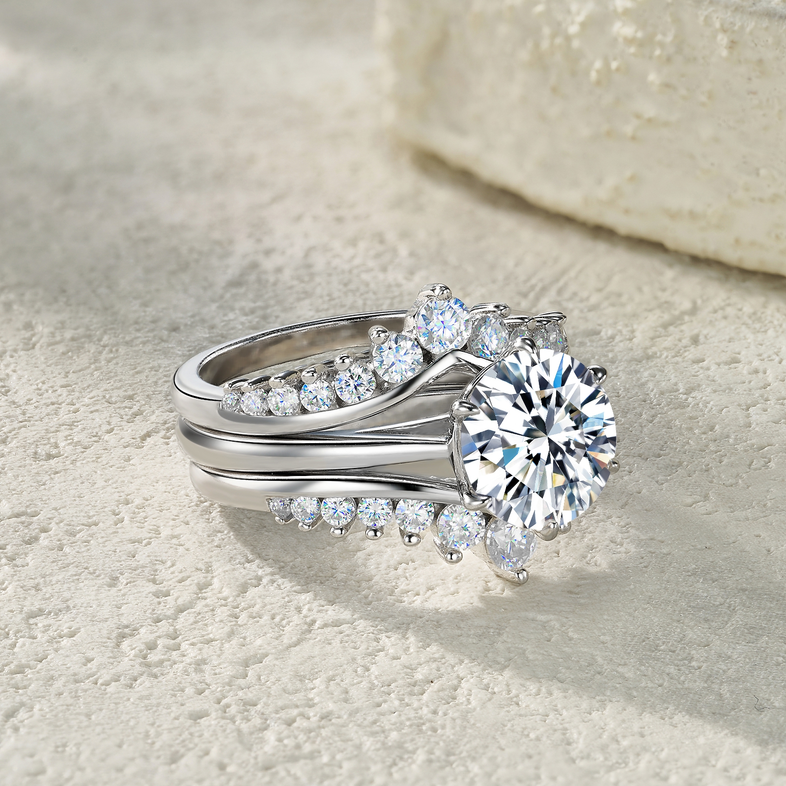 3 carat Luxury Fashion Minimalist Trend Jewelry Silver Ring Set With Top quality Morganite....