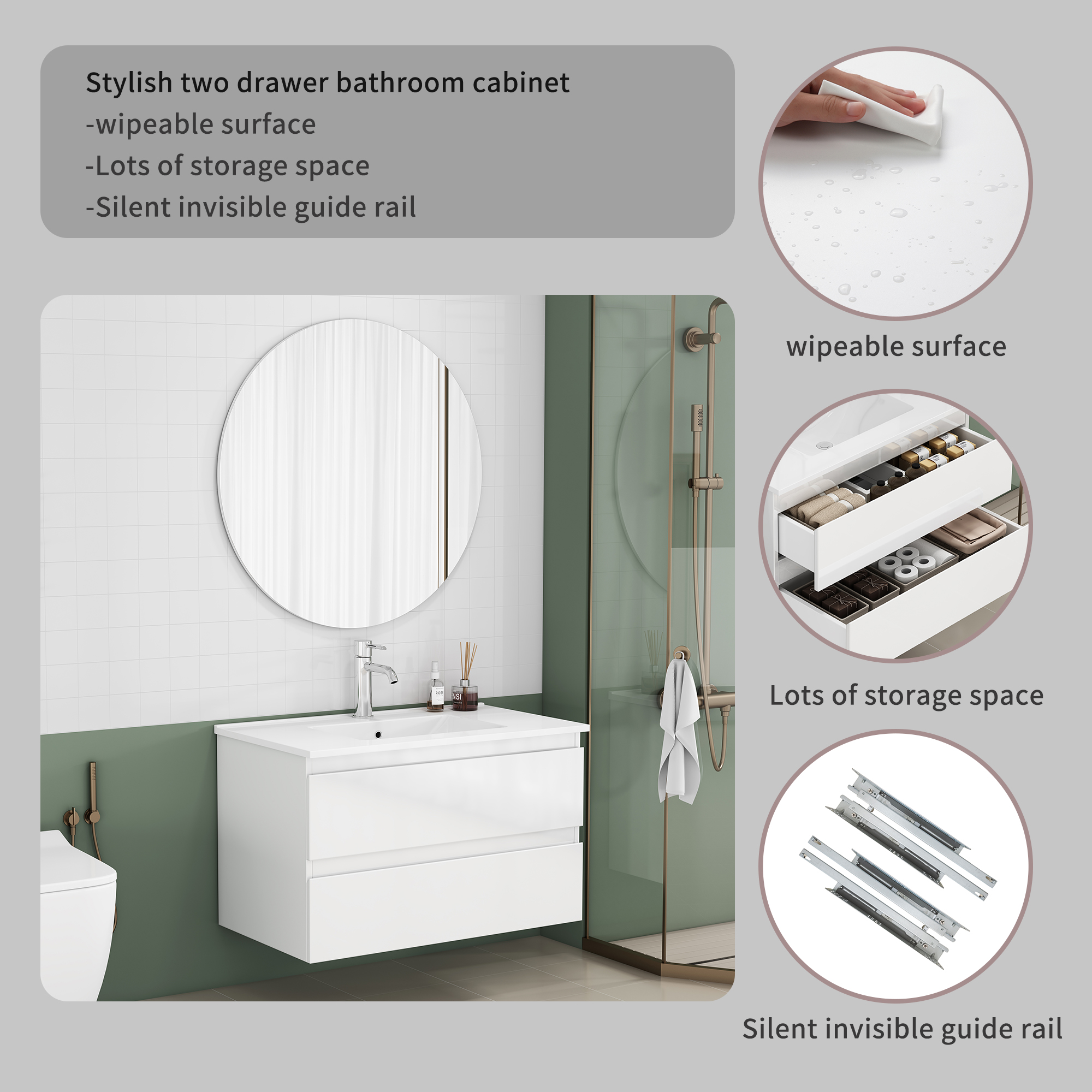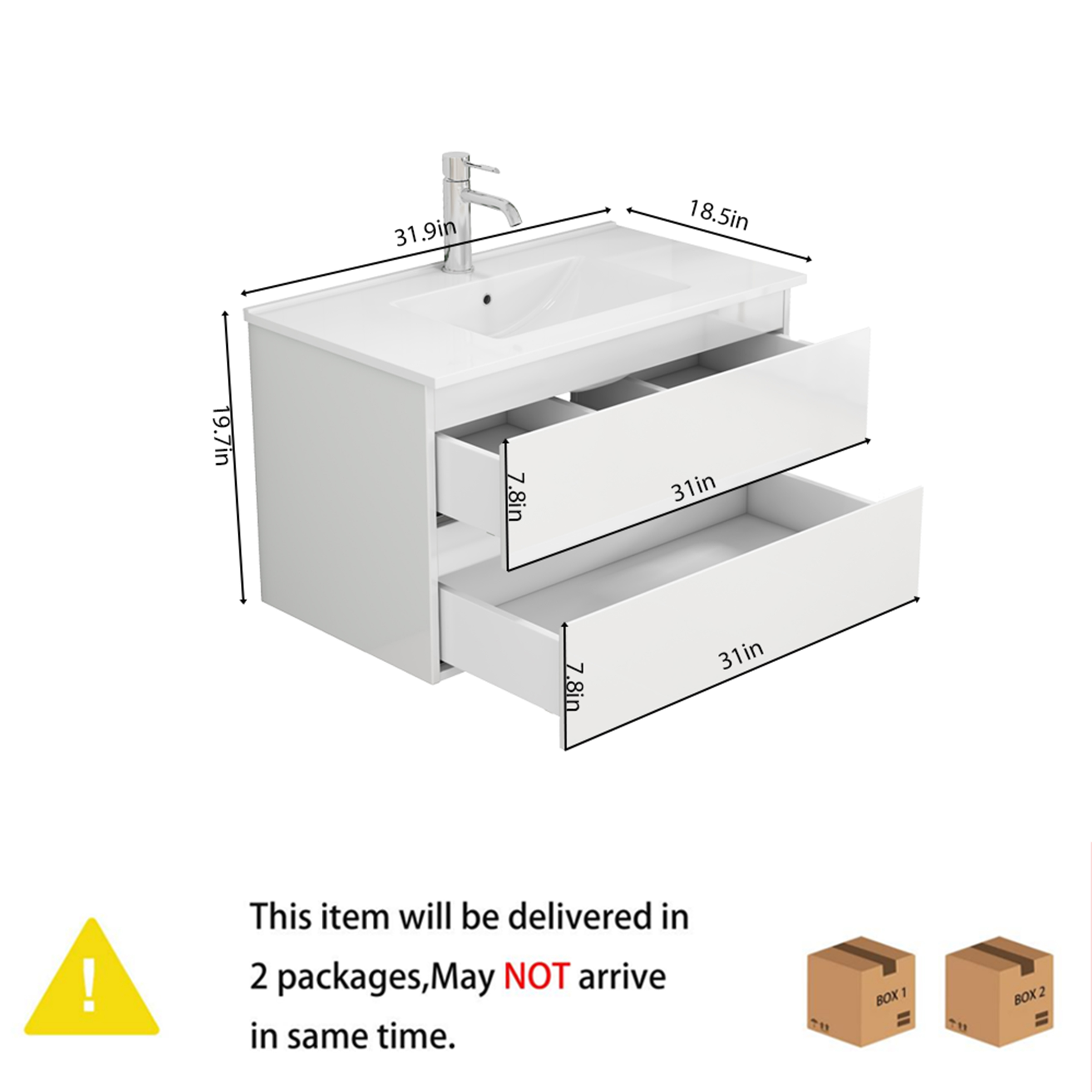 Product Name:31.5-inch Bathroom Vanity With Sink Combo,Cabinet With 2 Big Drawers,Soft Close System,2 Big Drawers,Handle-Free Design,Easy Assemble,Glossy White