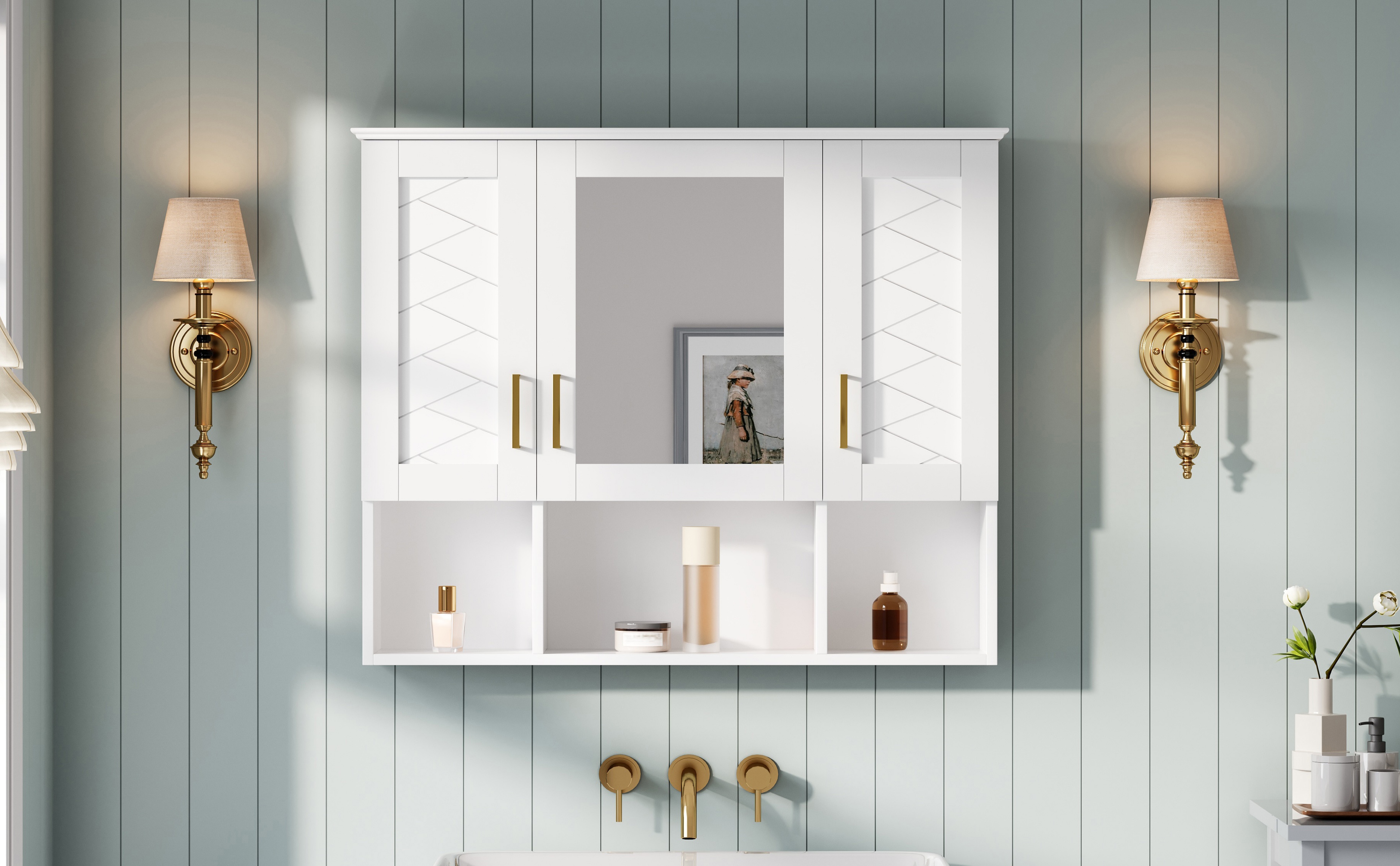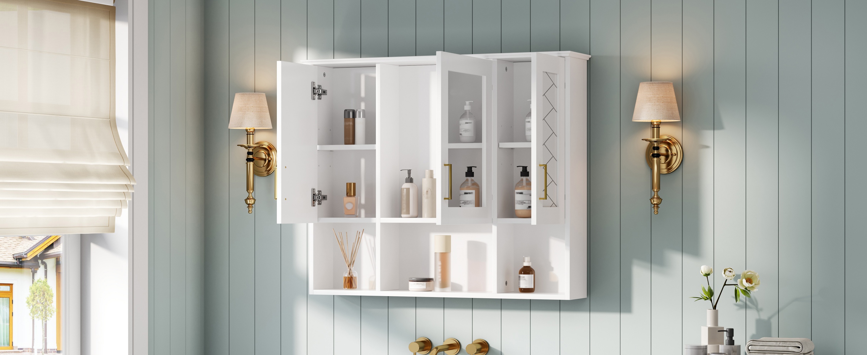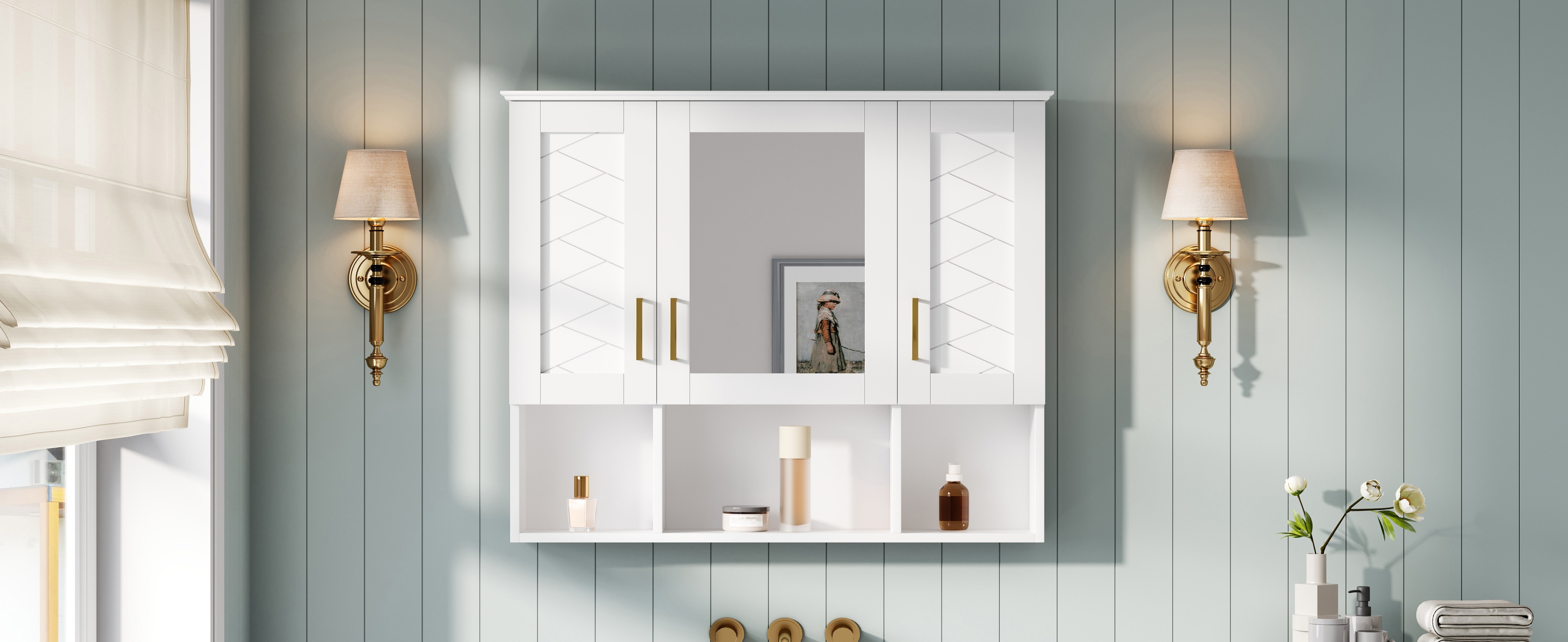 - [Flexible & Intelligent Storage Solutions] This cabinet is ingeniously designed for maximum versatility. It masterfully combines closed storage behind the mirror. This 2-in-1 approach allows you to hide away toiletries for a clean look while keeping frequently used items or decorative objects within easy reach. It’s the perfect balance of concealed organization and displayed accessibility.