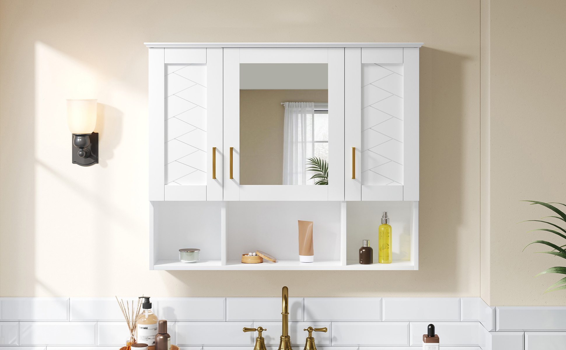 - [Sophisticated Finishing Touches] Attention to detail elevates the entire design. The sophisticated top design adds an extra layer of elegance, making the cabinet appear as a built-in piece of furniture rather than just a functional unit. When combined with the textured lines, premium handle, and seamless construction, this mirror cabinet presents a complete, cohesive look. It offers not just storage and a reflection, but a significant upgrade to your bathroom’s style and functionality.