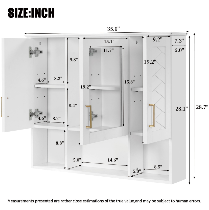 Product Name:35 inch 2-in-1 Wall Mounted Medicine Cabinet with Adjustable Shelves & Soft Close Doors, High-Define Mirror with Storage for Bathroom Vanity