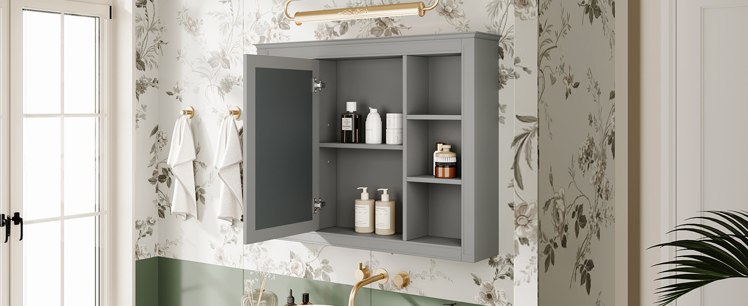 - [ Mirror cabinet ] Wall-mounted cabinets with mirrors can save you extra time picking out mirrors. At the same time, a mirror cabinet can meet your diverse needs. While you can use it as a storage cabinet, it can also satisfy your need to use it as a makeup mirror.