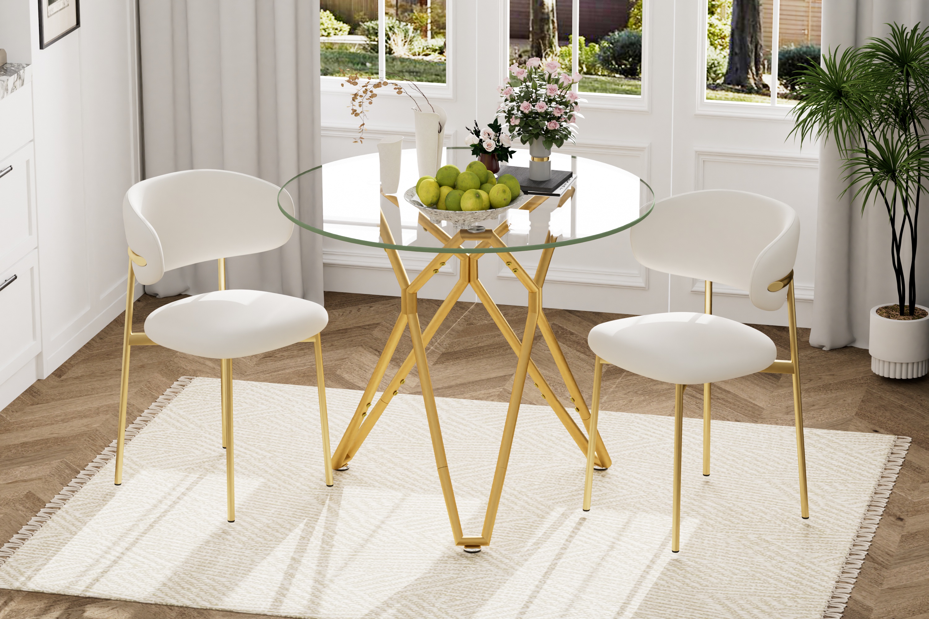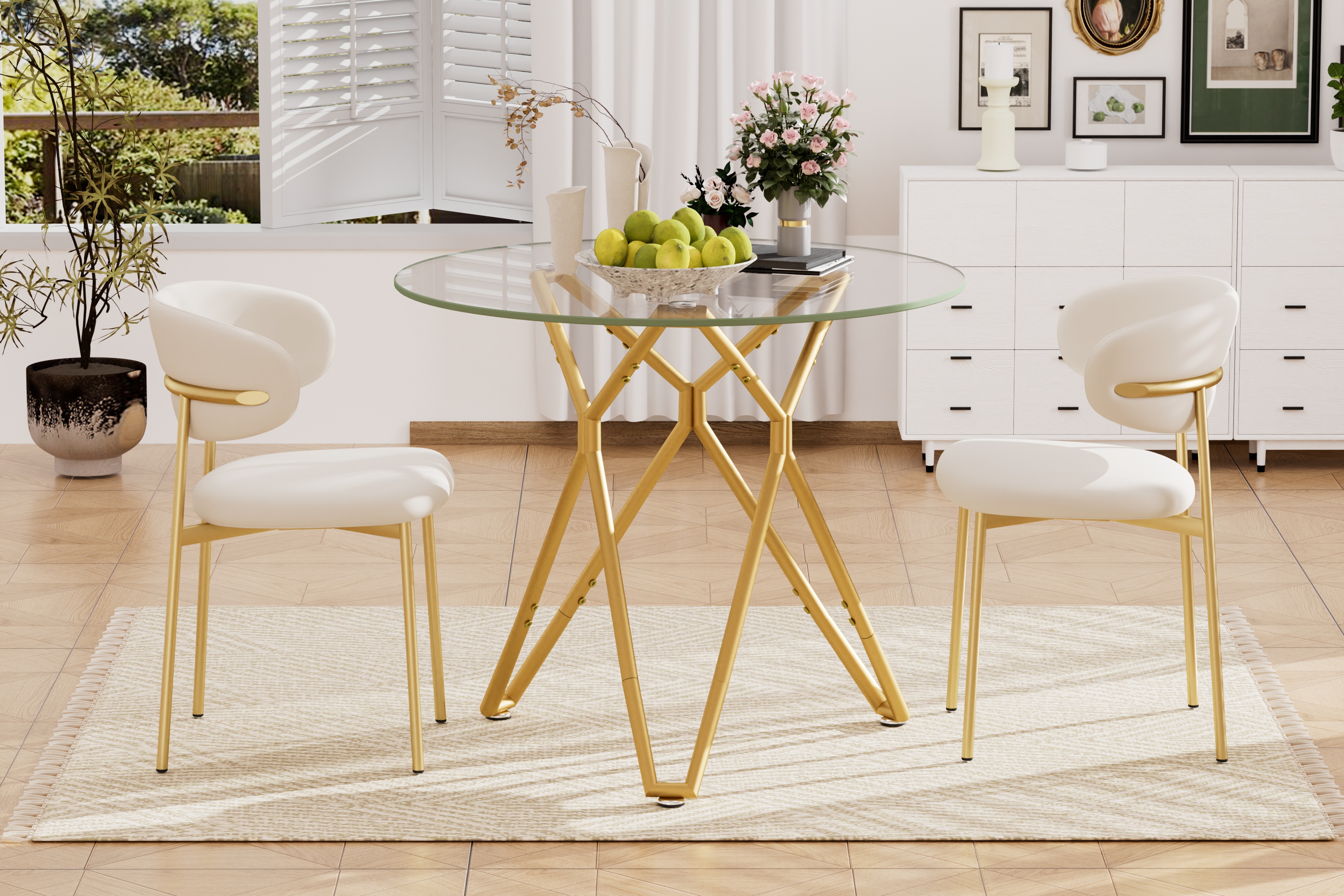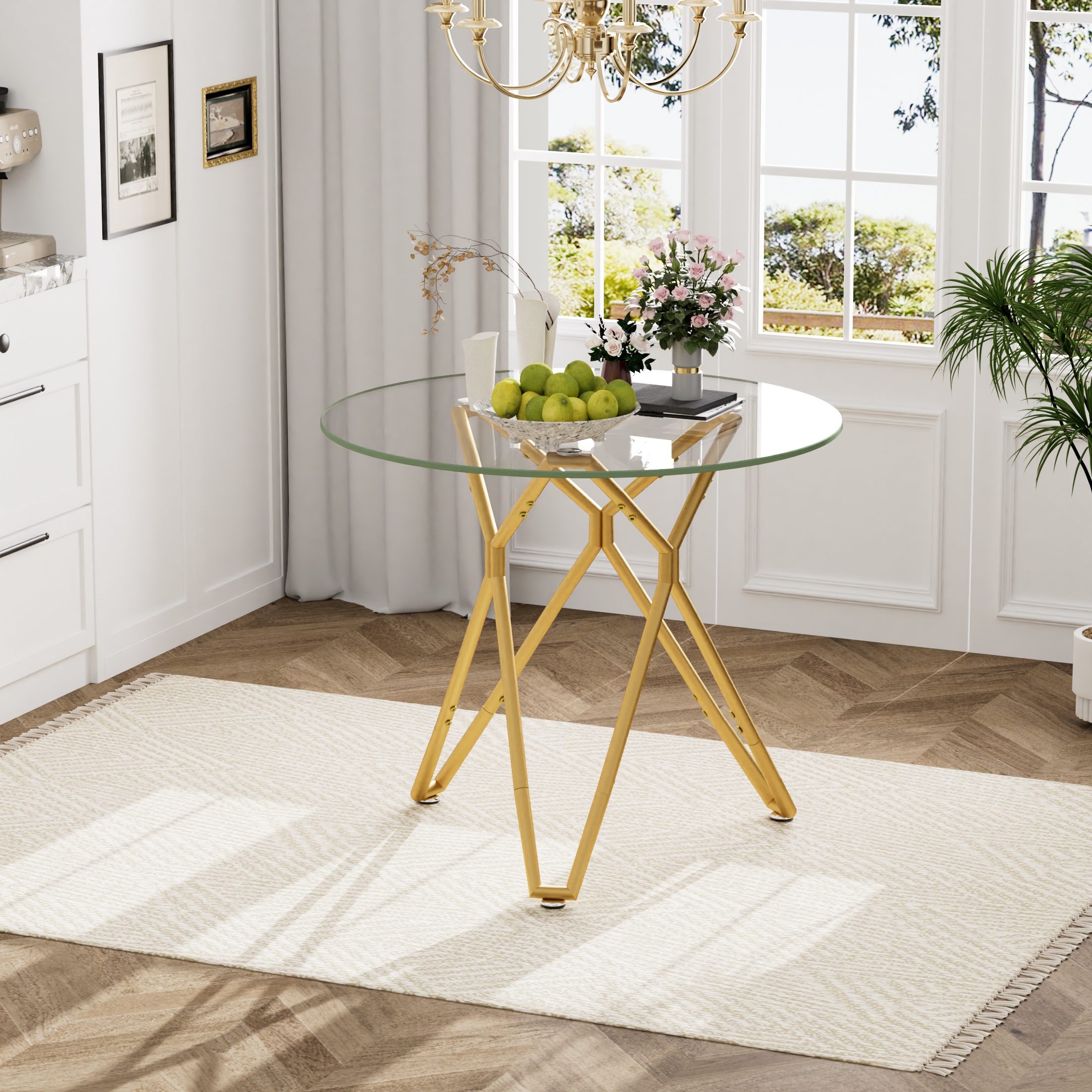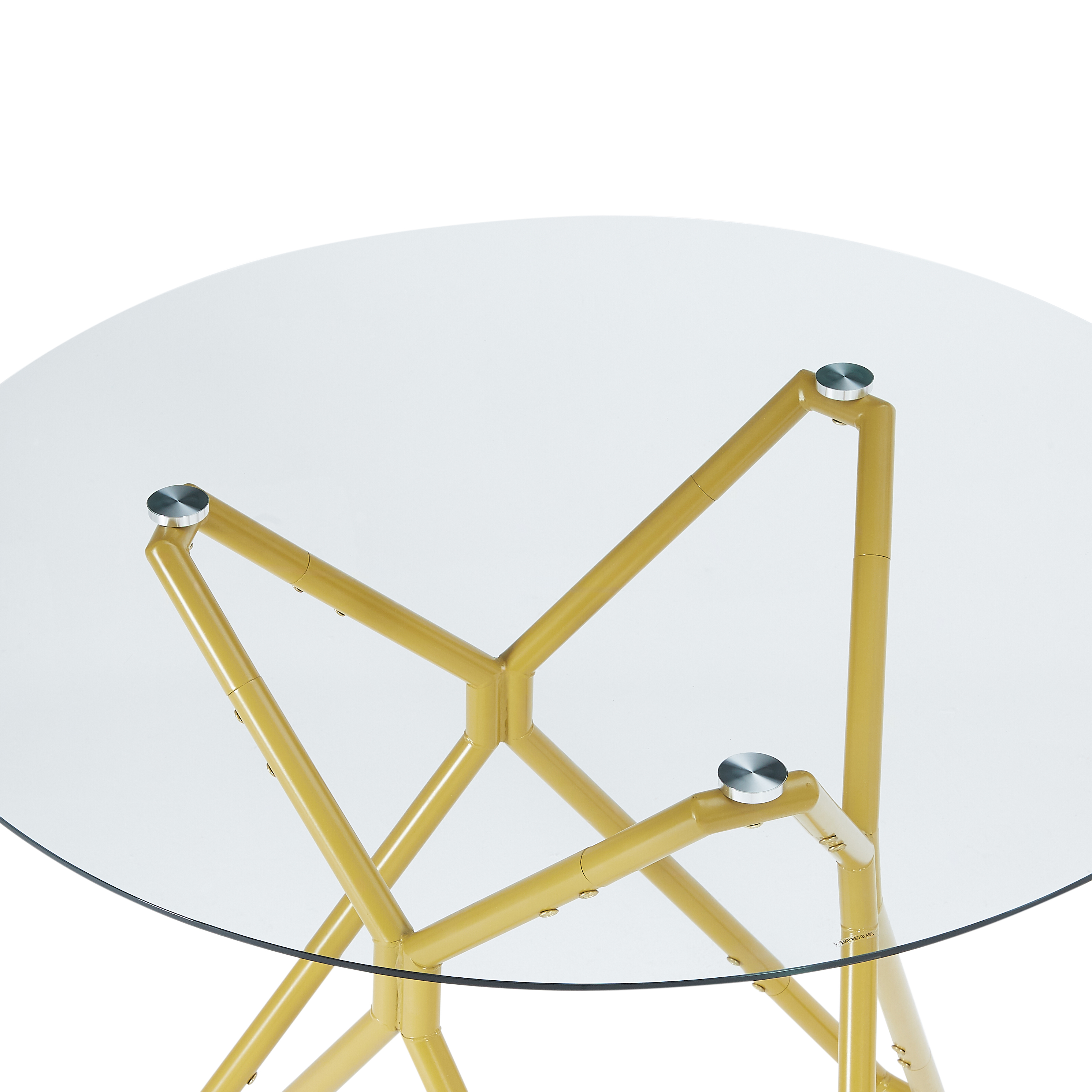 Product Name:35.4-inch round tempered glass dining table, suitable for 1-4 people, space-saving small kitchen dining table, equipped with sturdy metal table legs, suitable for dining room, living room,Gold