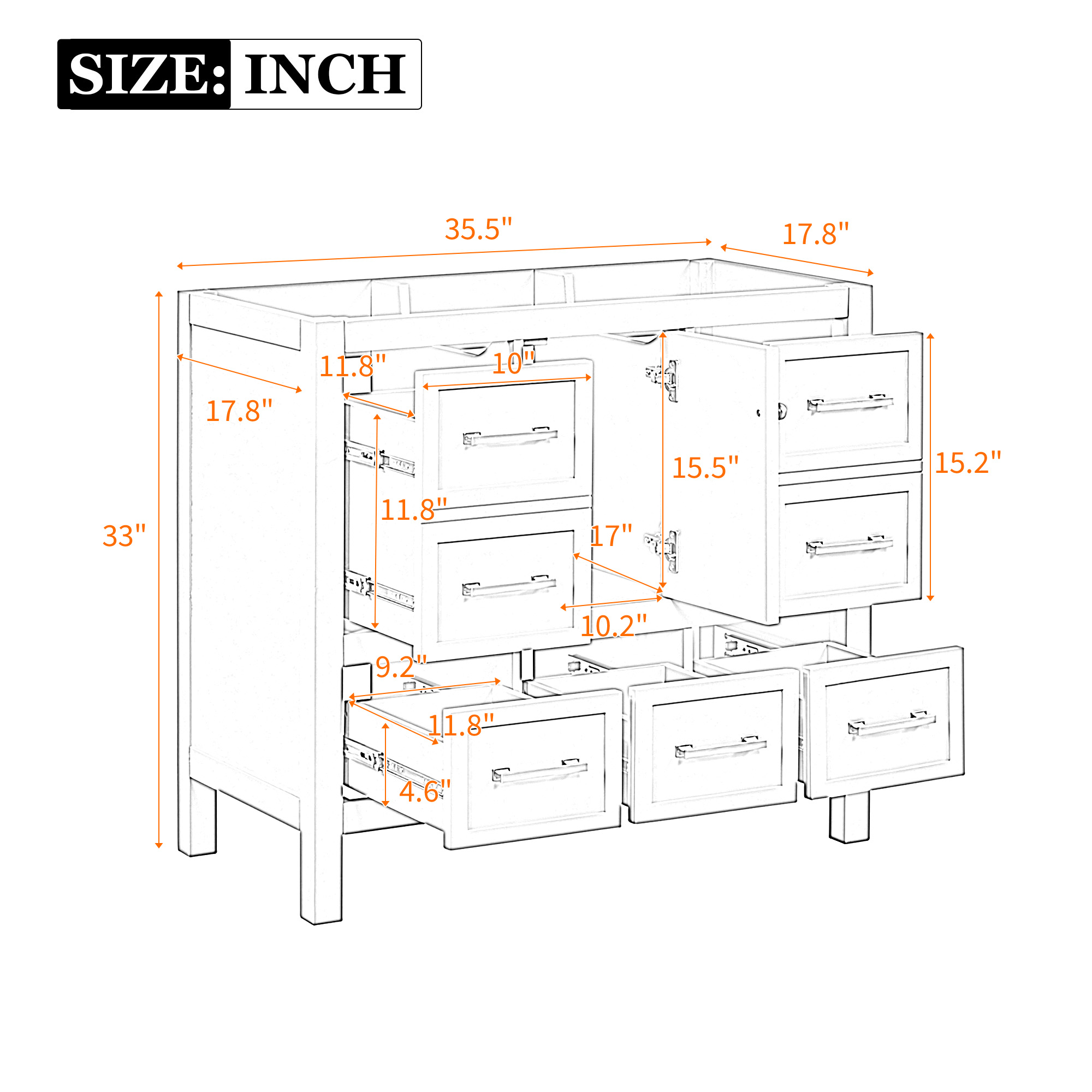 Product Specifications Basic Information Item Code:N710P256102K Product type:Single Box Product Product Name:36'' Bathroom Vanity without Sink, Solid Wood Frame Bathroom Storage Cabinet, Freestanding Vanity with 5 Dra...