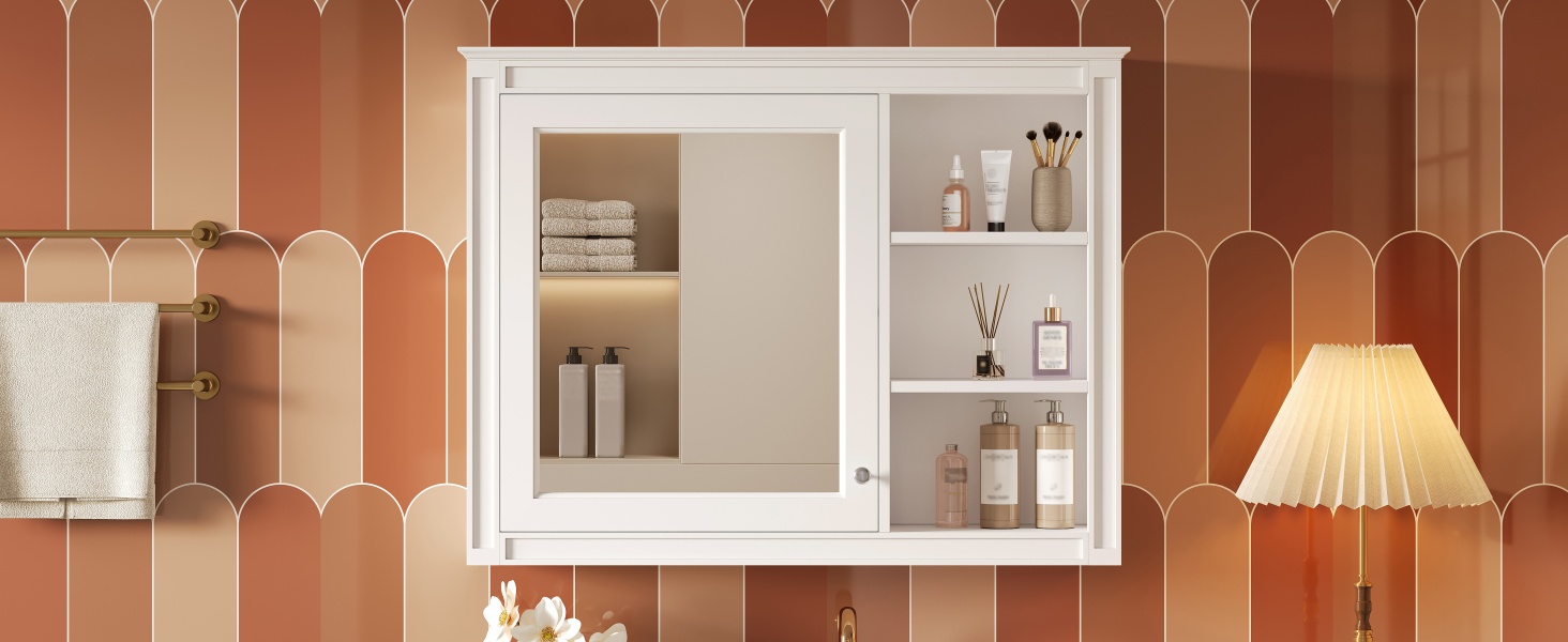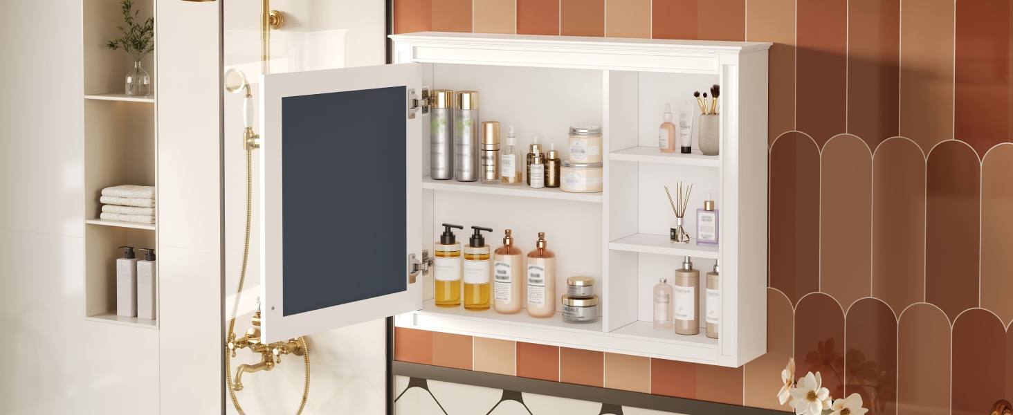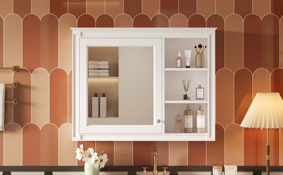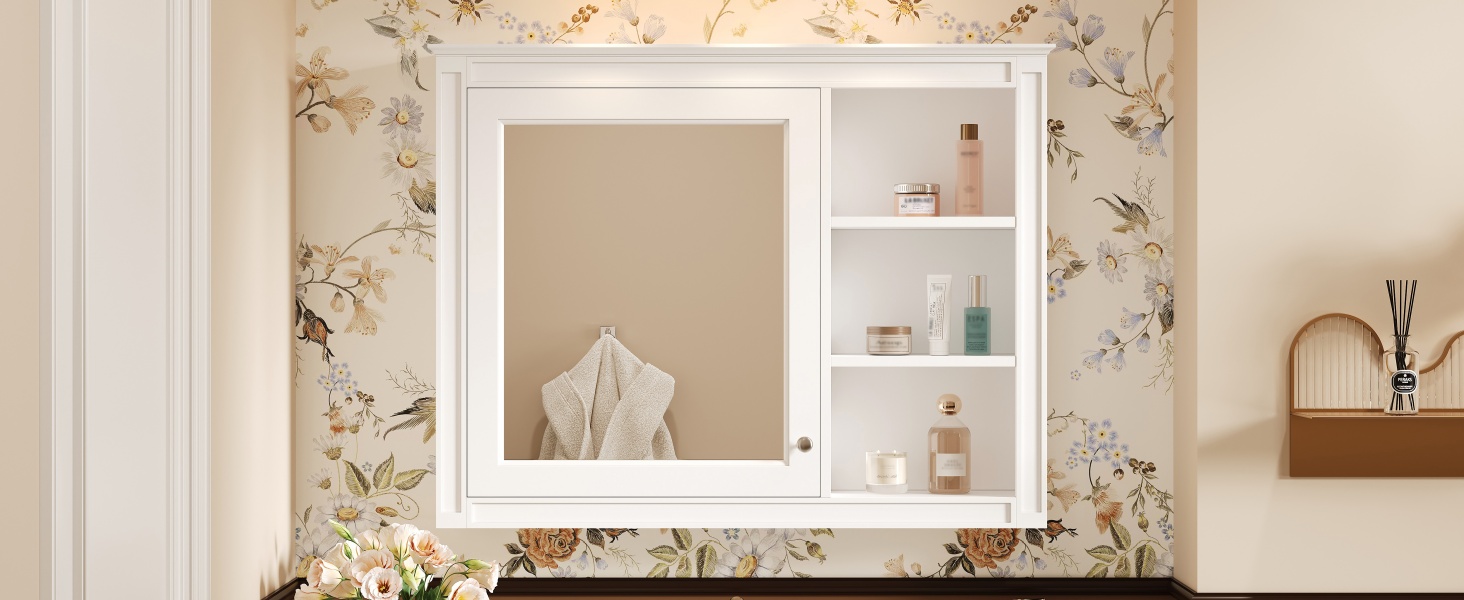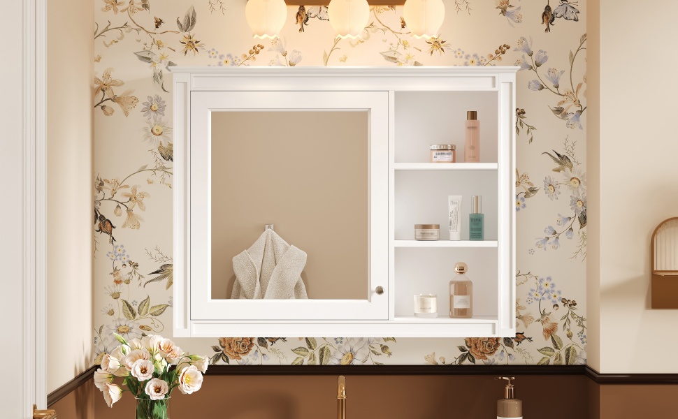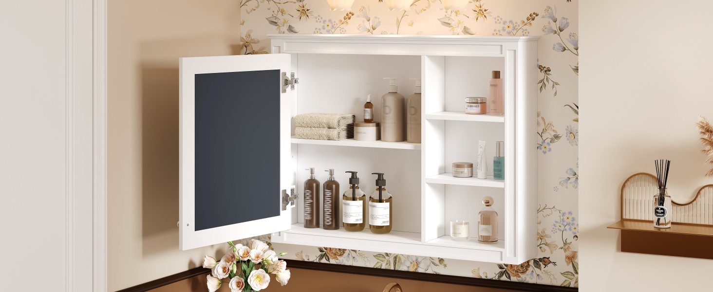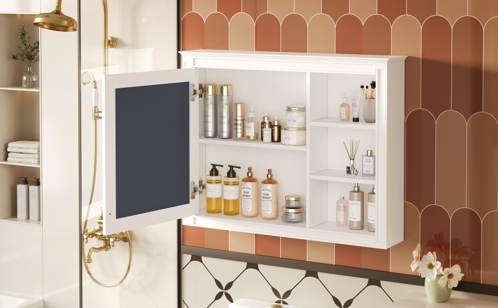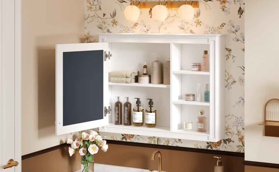 - [ Mirror cabinet ] Two-in-One Solution for Your SpaceSimplify your routine with this all-in-one mirror cabinet. It saves you the hassle of selecting a separate mirror while meeting your diverse needs. Use the spacious interior for organized storage, and rely on the high-definition surface as a perfect makeup or grooming mirror.