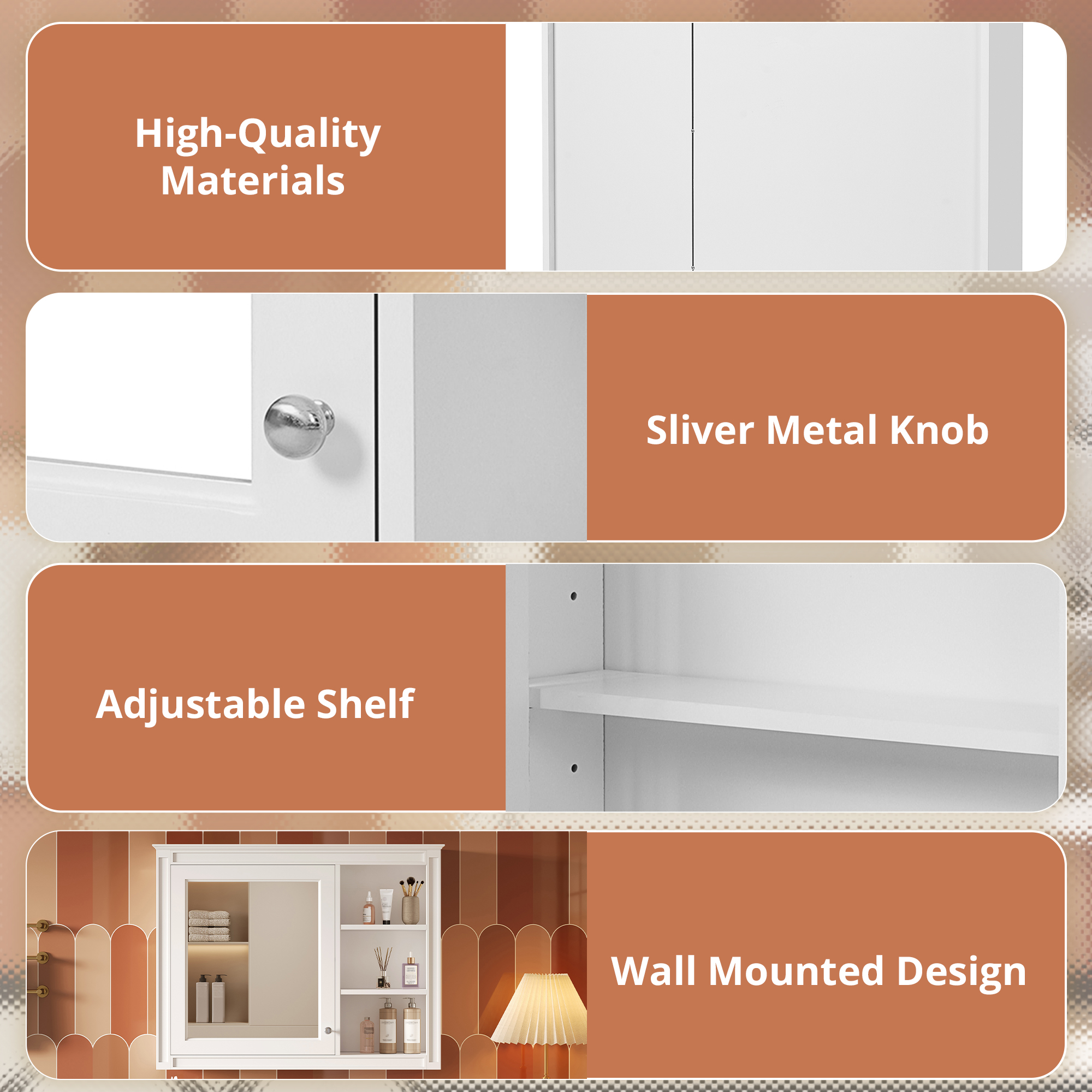 Crafted from premium MDF board, this wall-mounted mirror cabinet offers lasting durability with its eco-friendly and odorless construction, ensuring stable performance over time. The high-definition mirror delivers a crystal-clear reflection for effortless daily grooming. Its smart design features both concealed storage and open shelving—keeping essentials neatly organized while allowing quick access to frequently used items. With adjustable shelf heights, it easily adapts to store a variety of objects, perfectly accommodating your organizational needs. Ideal for the bathroom, bedroom, or living room, this mirror cabinet seamlessly blends into any home setting, enhancing both space cleanliness and everyday convenience.