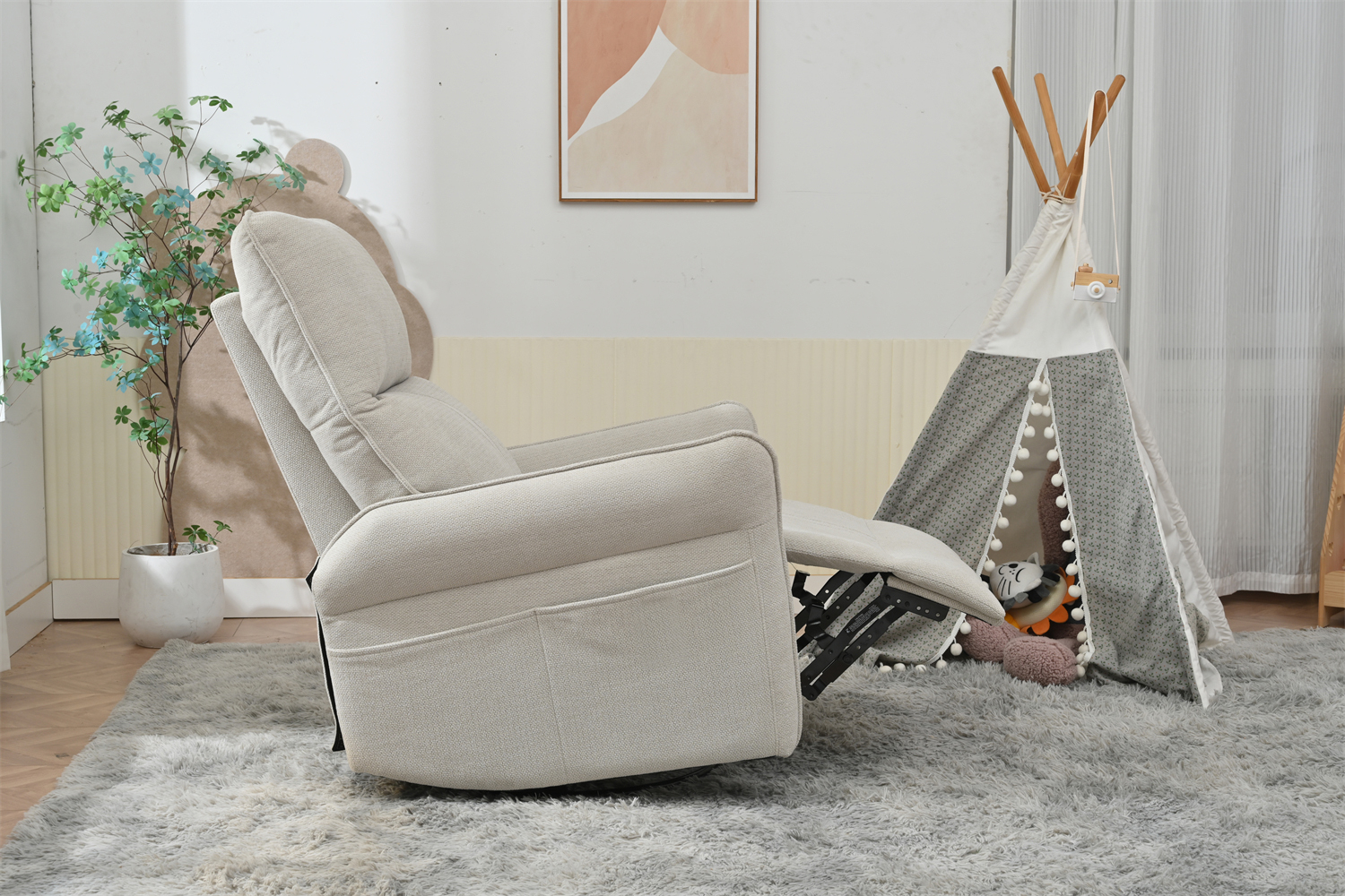 Product Specifications: Basic information Product Type:Combo Item Product Name:360° Swivel Rocker Recliner Chair,Swivel Nursery Rocking Chair w/Pull Ring,Glider Chair,Modern Rocking Swivel Recliner Chair for Bedroom,L...