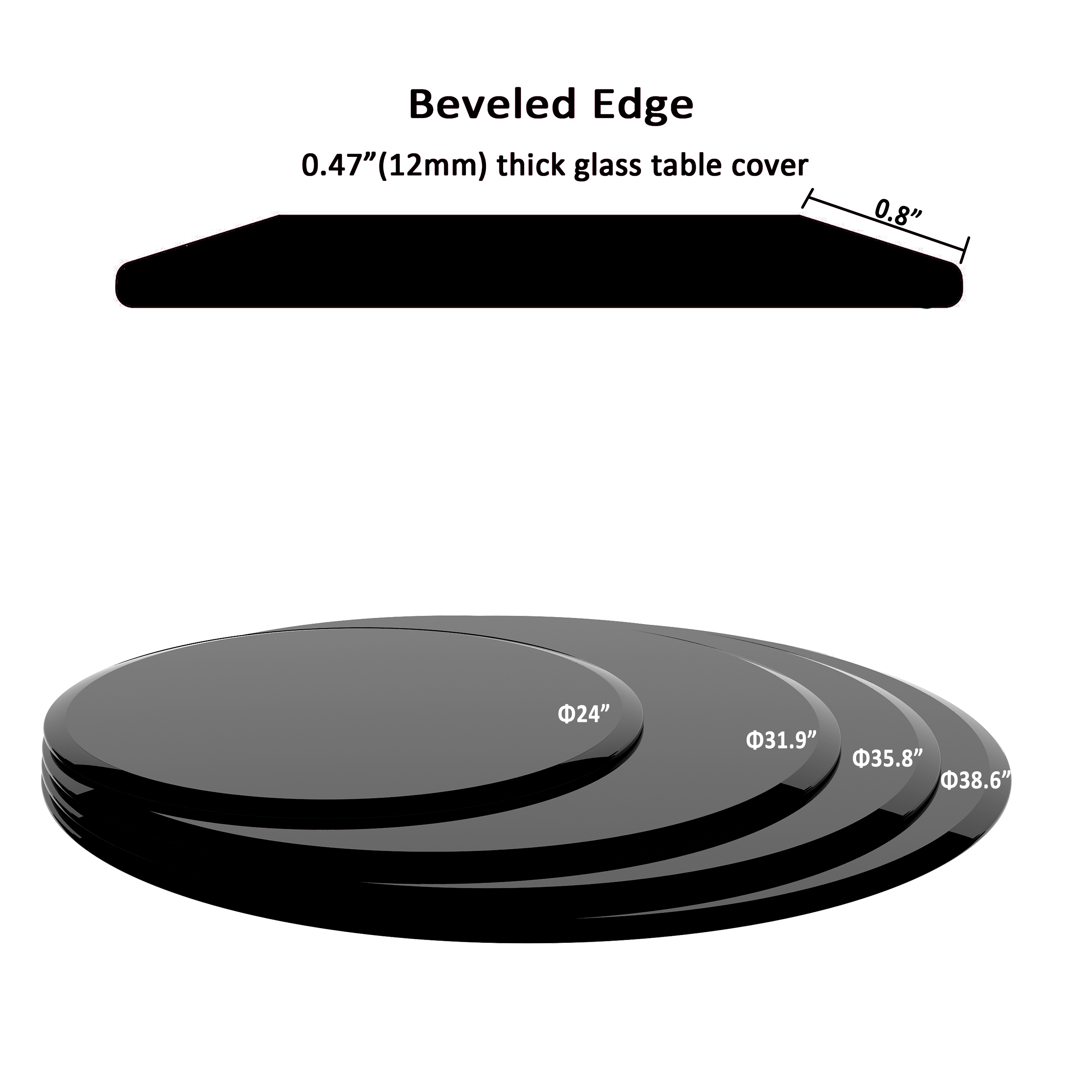 Product Name:38.6" Inch Round Tempered Glass Table Top black Glass 1/2" Inch Thick Beveled Polished Edge(old SKU:W1265118652)