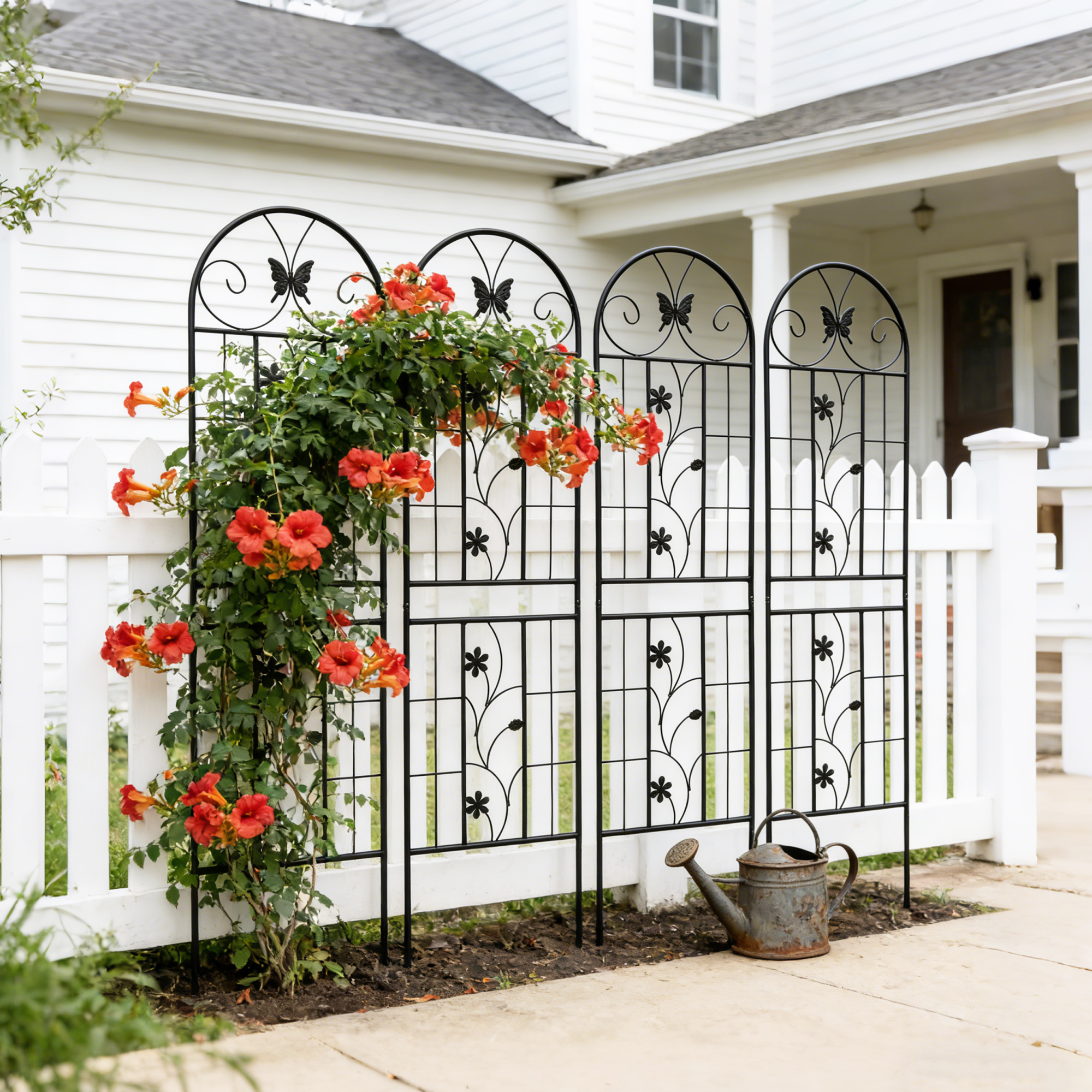Product Specifications: Basic information Product Type:Single Box Product Product Name:4 Pack Metal Garden Trellis 71" x 19.7" Rustproof Trellis for Climbing Plants Outdoor Flower Support Black Origin:China Color:Blac...