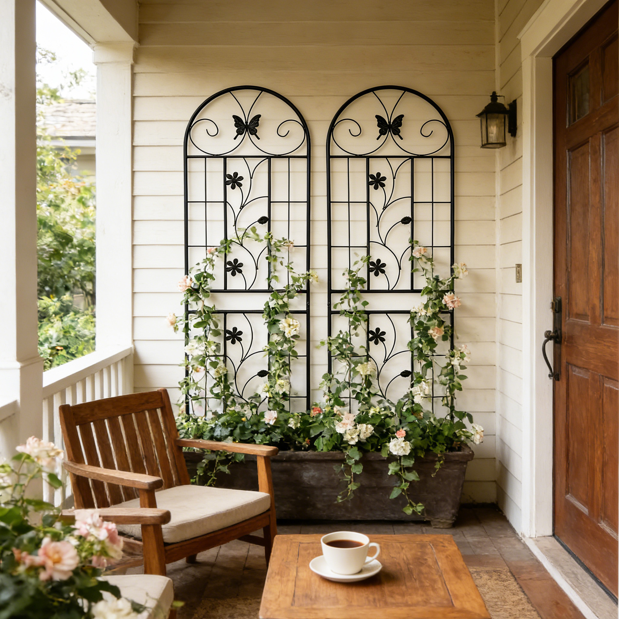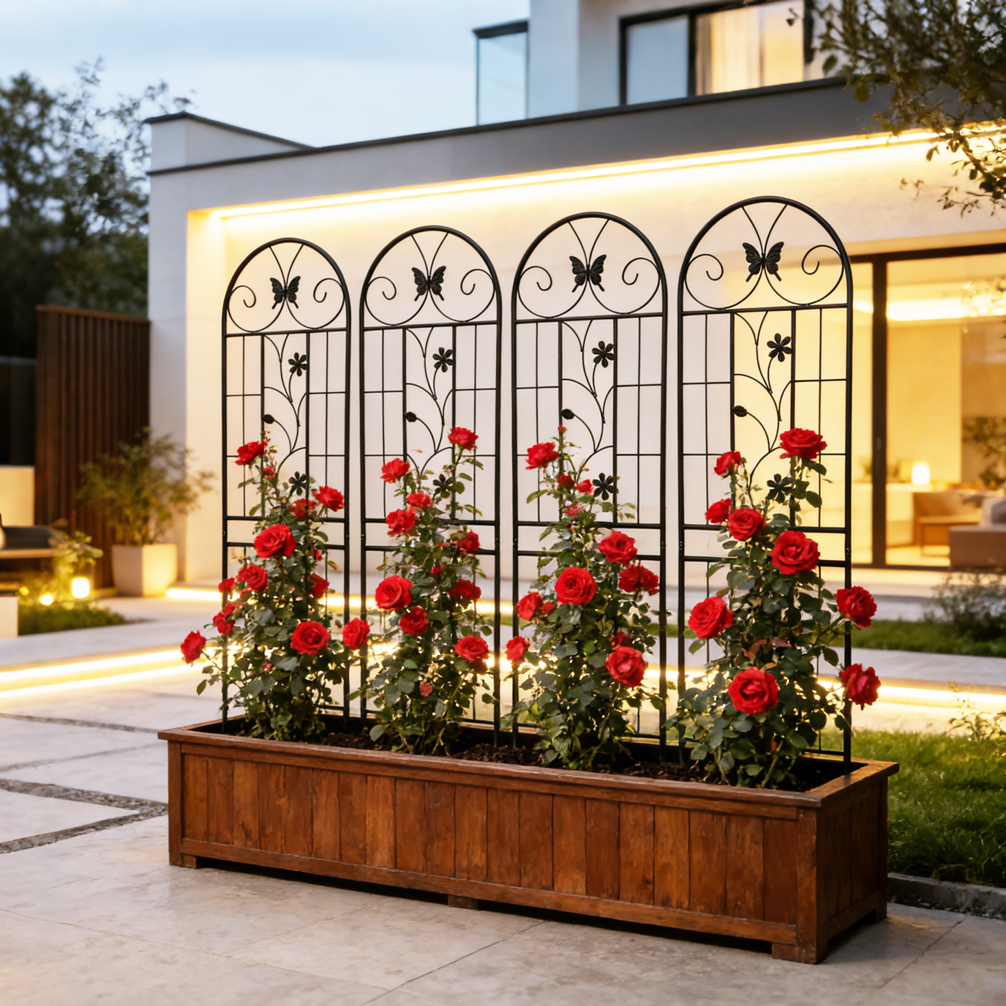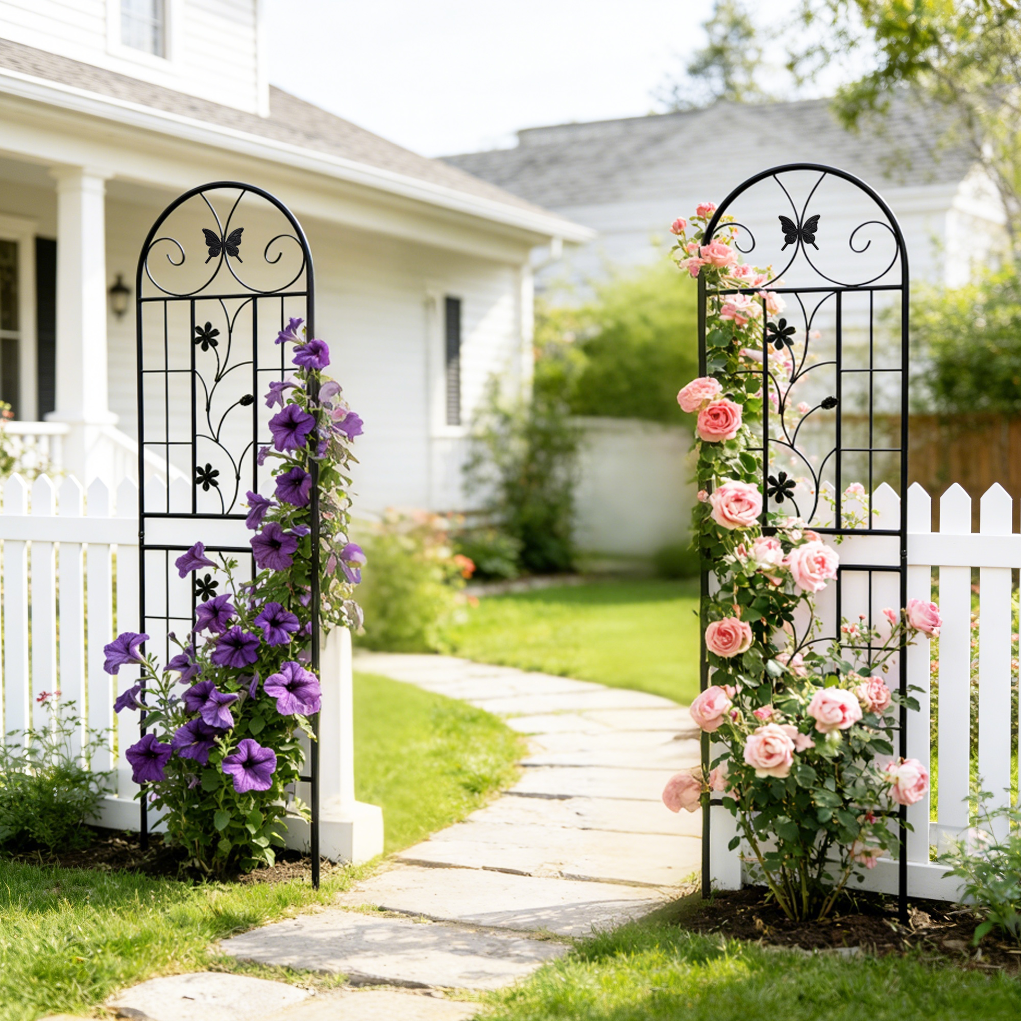 - Multi-purpose: Great metal garden trellis for climbing plants, such as ivy vines, rose, morning glory, clematis, jasmine, grape, blackberry, cucumber, beans, peas, etc.