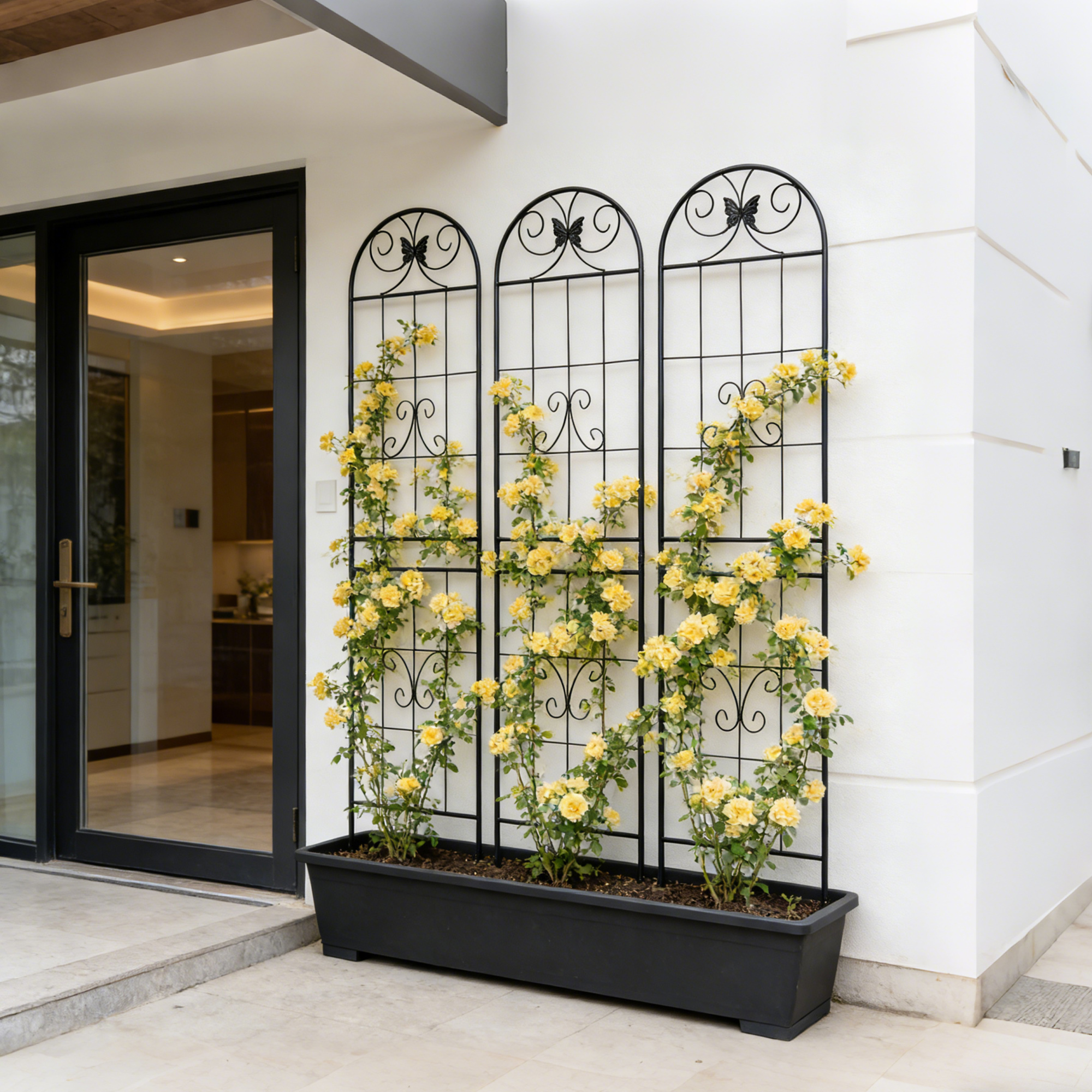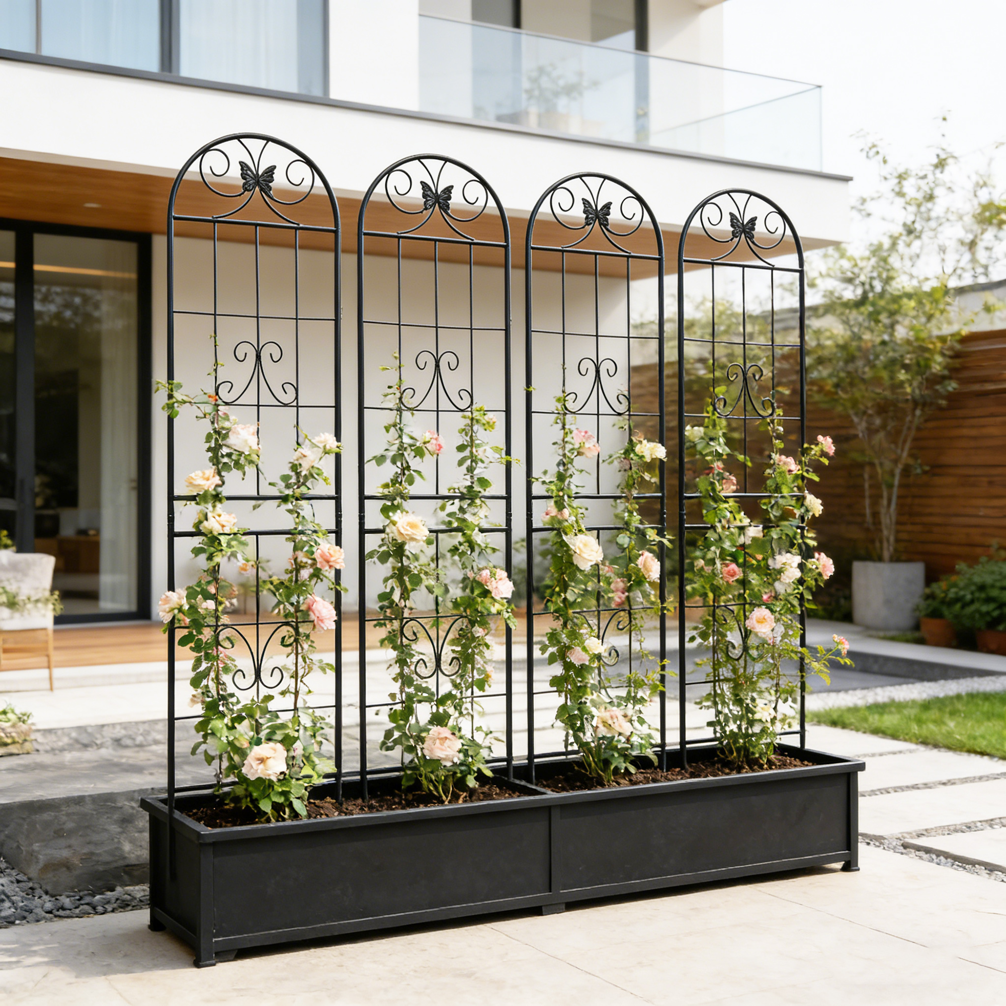 - Multi-purpose: Great metal garden trellis for climbing plants, such as ivy vines, rose, morning glory, clematis, jasmine, grape, blackberry, cucumber, beans, peas, etc.