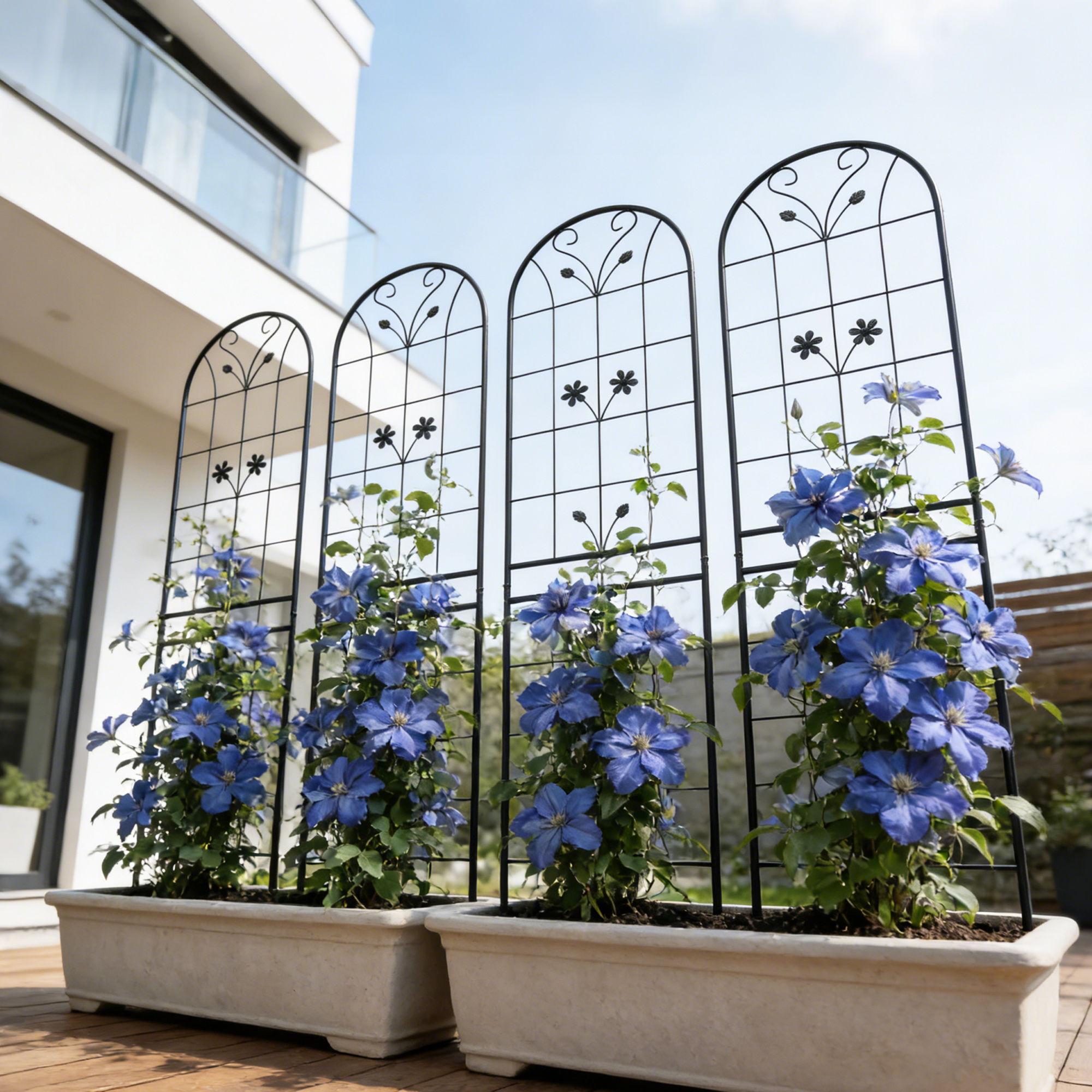 - Multi-purpose: Great metal garden trellis for climbing plants, such as ivy vines, rose, morning glory, clematis, jasmine, grape, blackberry, cucumber, beans, peas, etc.