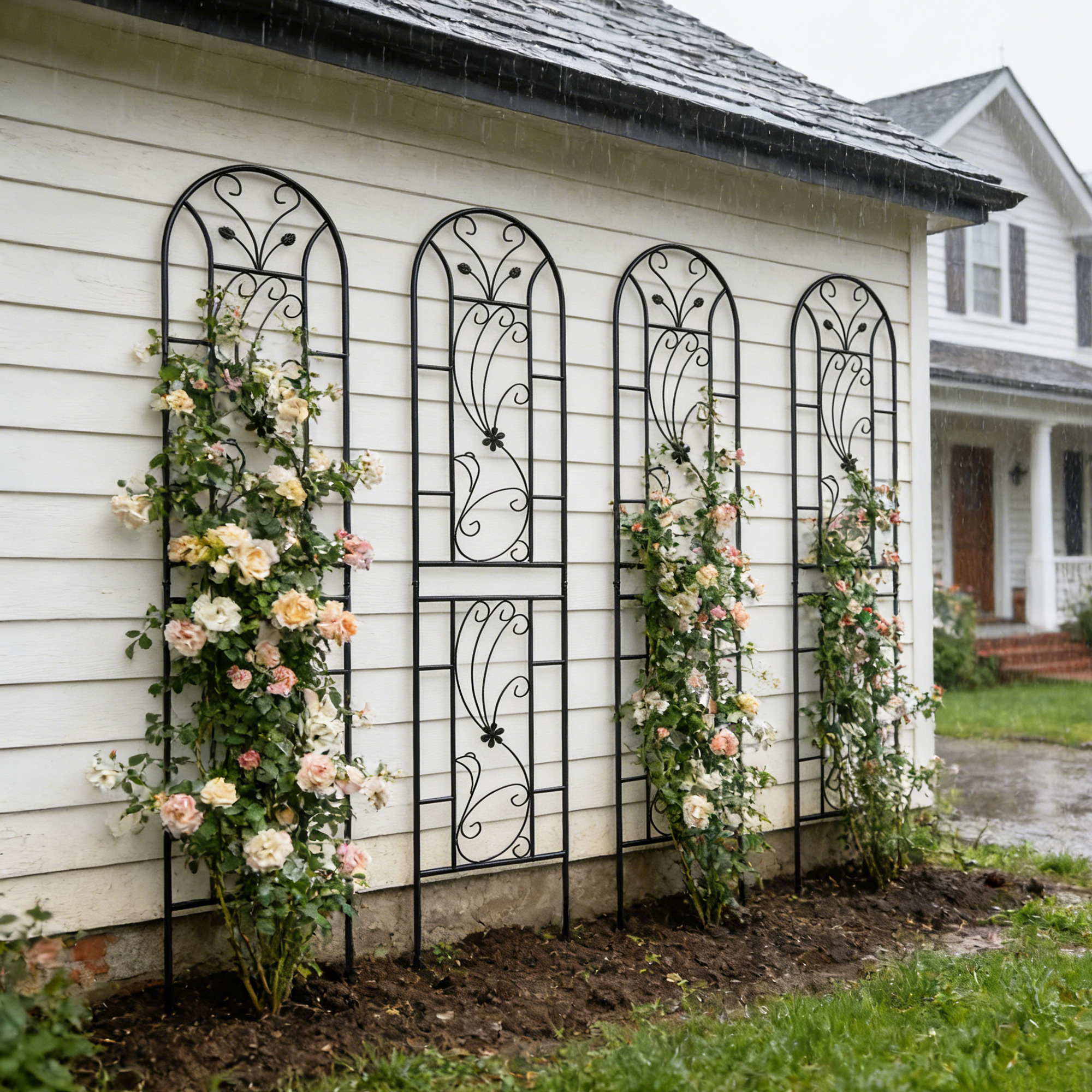 - Multi-purpose: Great metal garden trellis for climbing plants, such as ivy vines, rose, morning glory, clematis, jasmine, grape, blackberry, cucumber, beans, peas, etc.