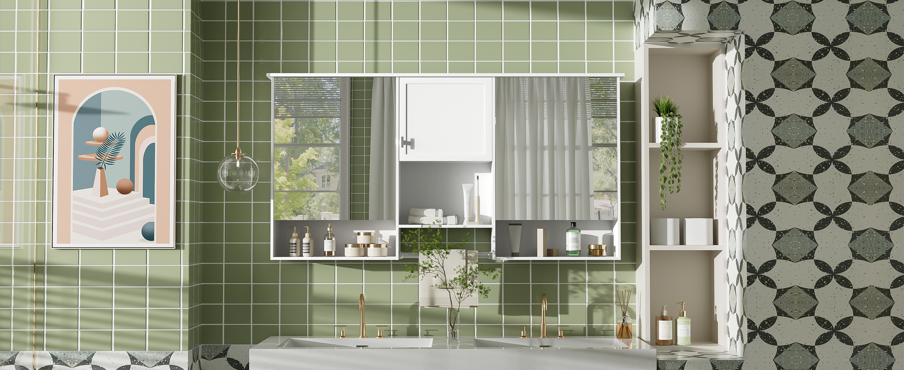- [The Ultimate Space-Saving Solution] Maximizing both style and utility, this 2-in-1 mirror cabinet is the ultimate space-saving solution. Its clever design integrates a spacious storage compartment with a high-definition mirror, eliminating the need for separate units. The wall-mount design frees up valuable floor space, creating a feeling of openness. This makes it an ideal choice for smaller bathrooms or powder rooms where efficiency is key.