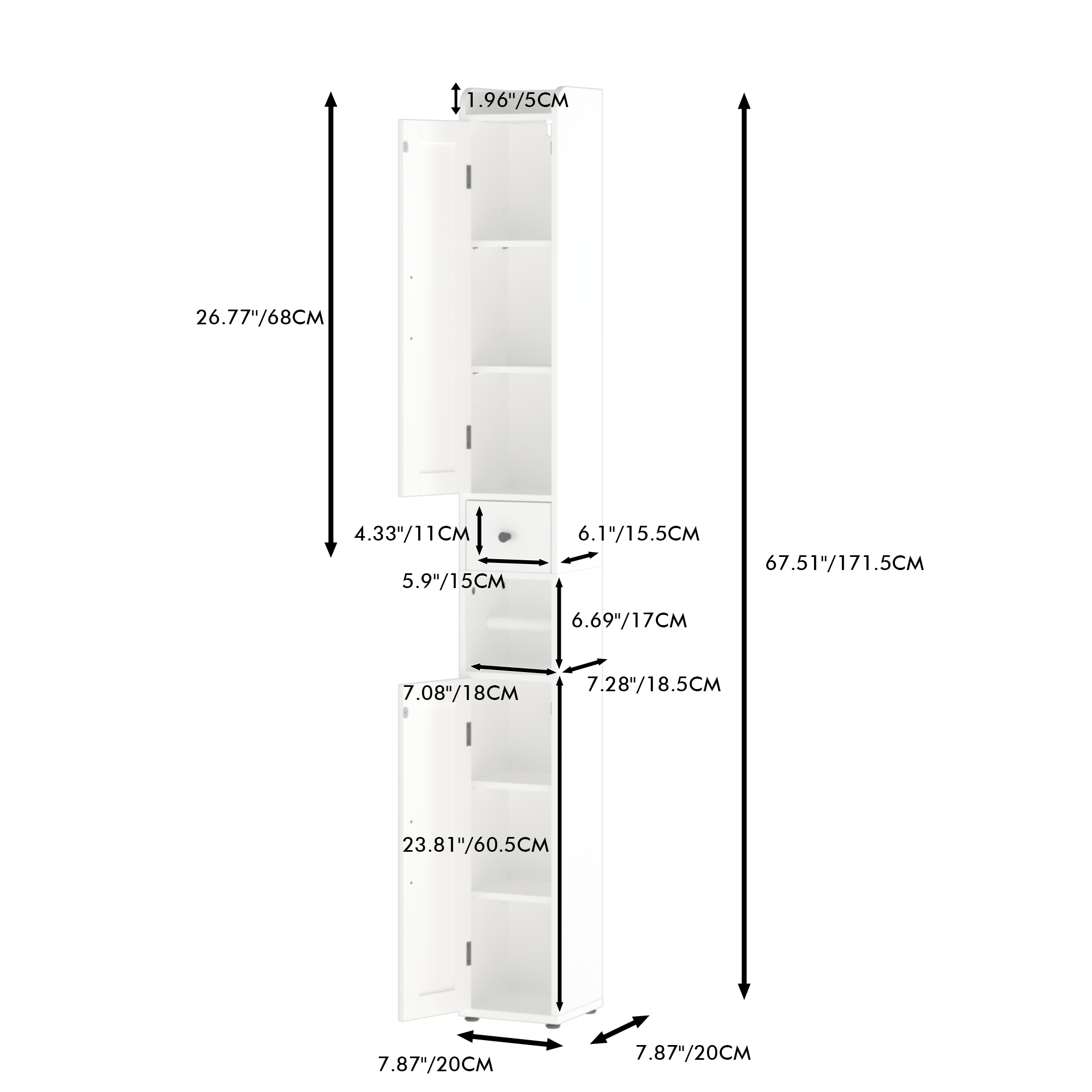 Product Name:67.51" Tall Bathroom Storage Cabinet with Adjustable Shelves,Slim 2 Doors Freestanding Cabinet with Anti-Tip, Open compartments, for Home, Small Spaces, Bathroom,Kitchen, Living Room, White