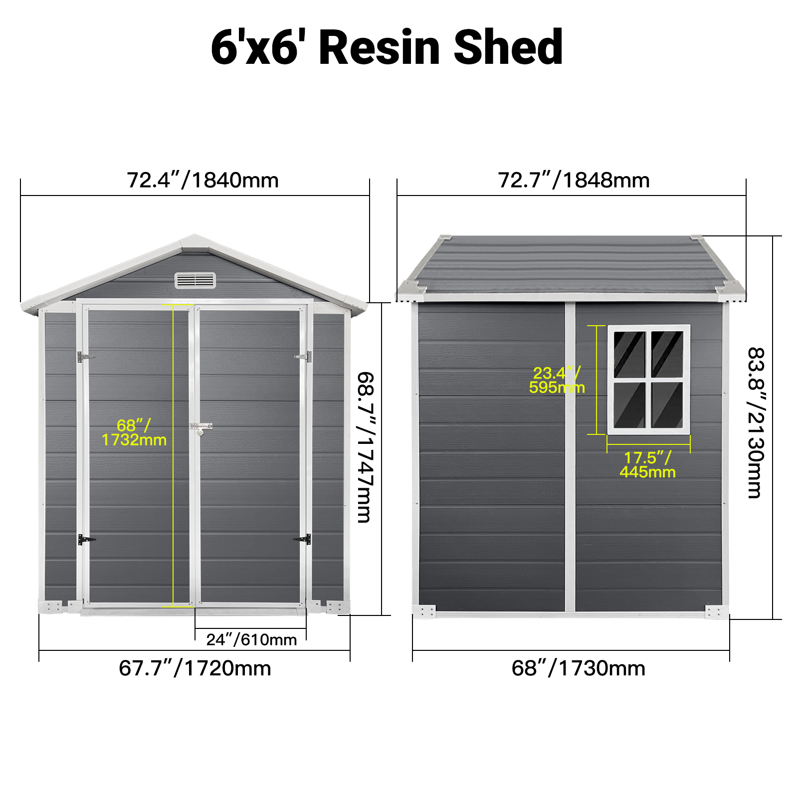 - 6x6 ft outdoor storage with floor, garden tool shed with lockable door, window, vent, waterproof plastic storage for backyard, patio, lawn, gray.