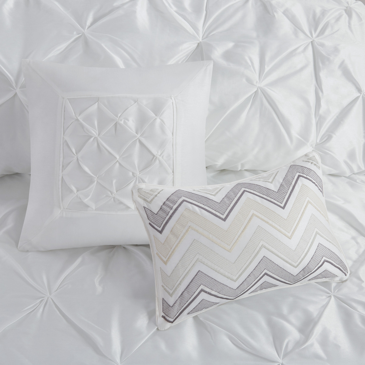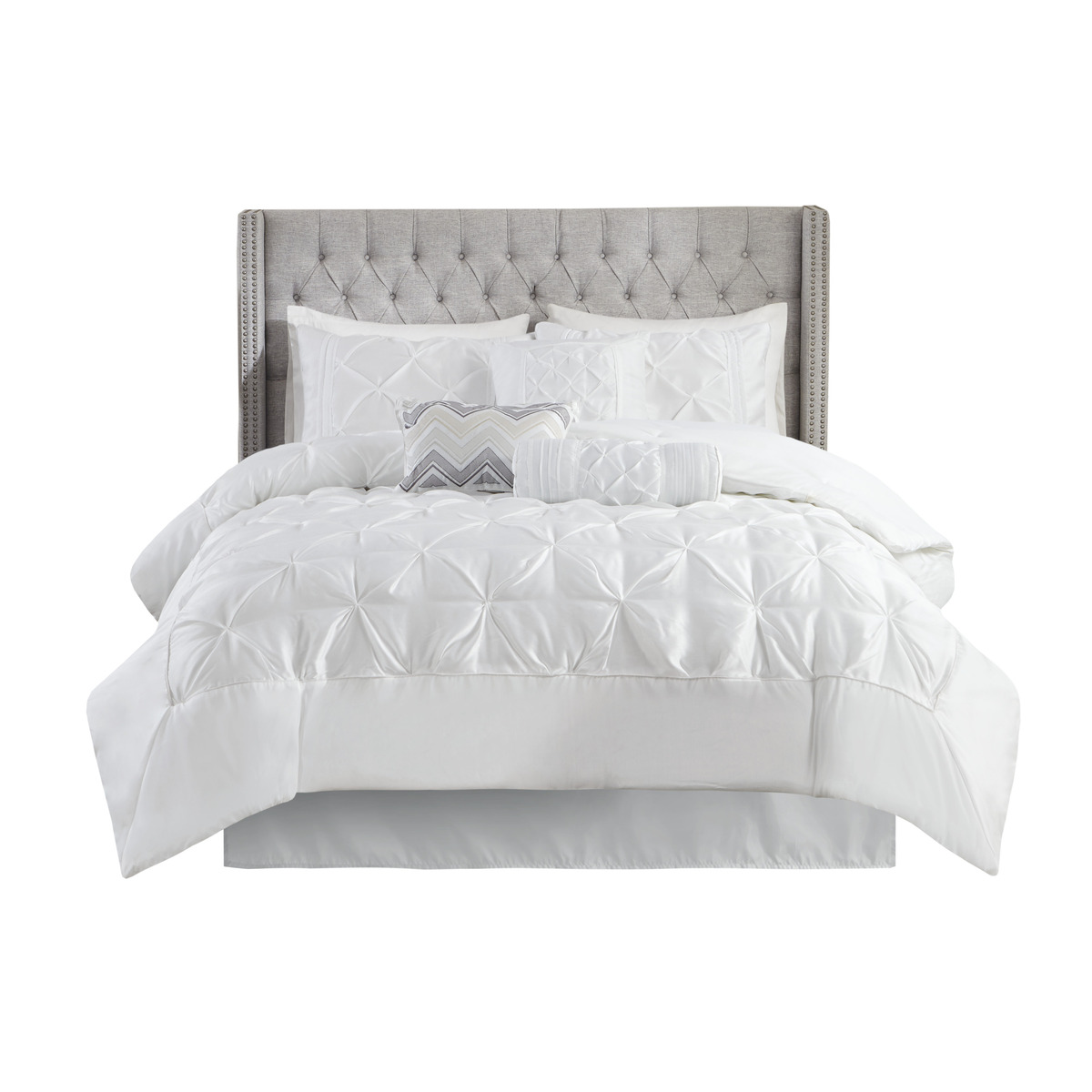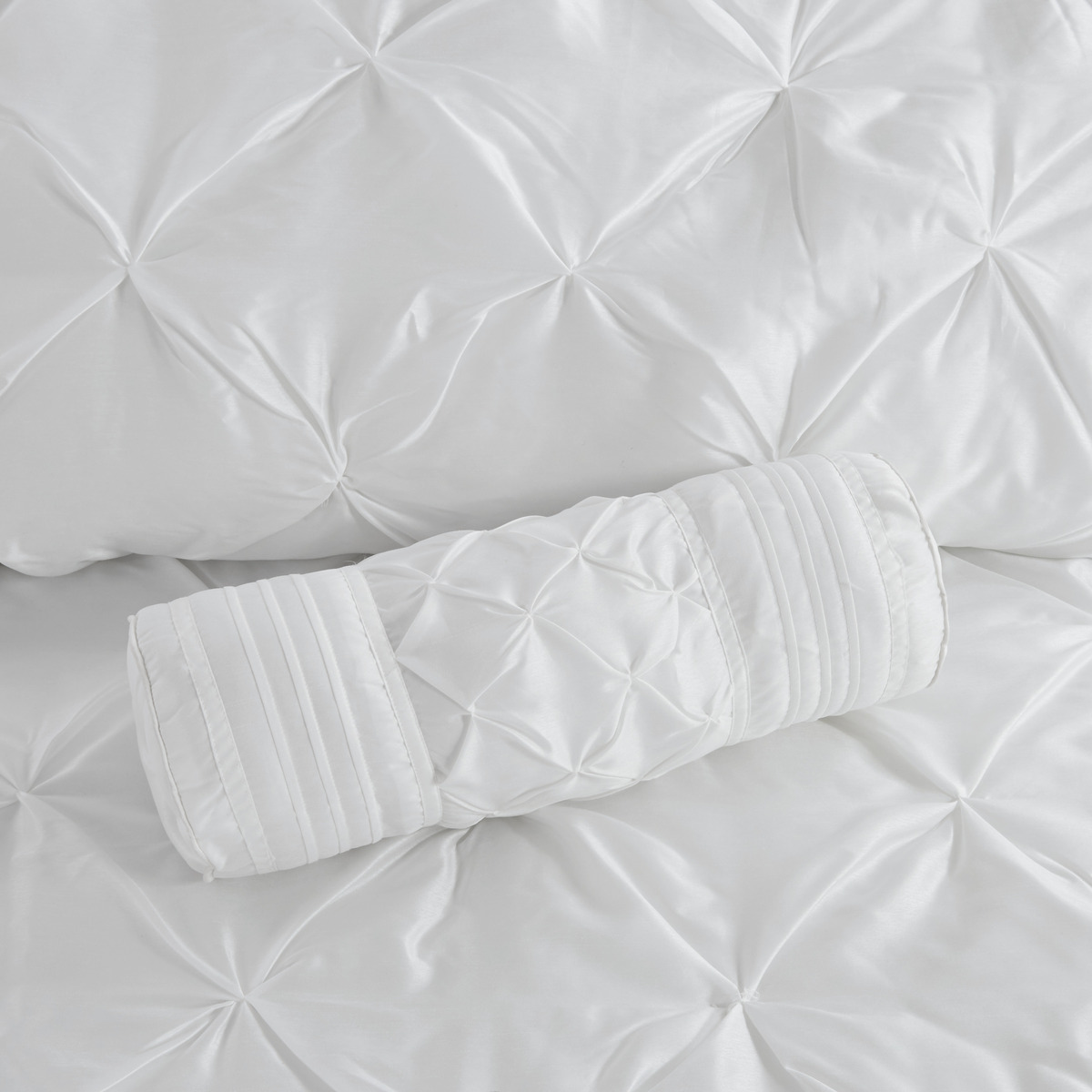 This utifully tufted bed is from the bedding collection. Its white co ng makes this set easy to accessorize in your bedroom. The collection is made from 100% polyester po i and has pieced fabric sewn together to give this set added dimension. It is finished with a smooth edge of fabric that creates a utiful border around this comforter. Items in the set may come in a rolled or compressed packaging, which will need to be fluffed up or steam ironed before use to remove wrinkles.