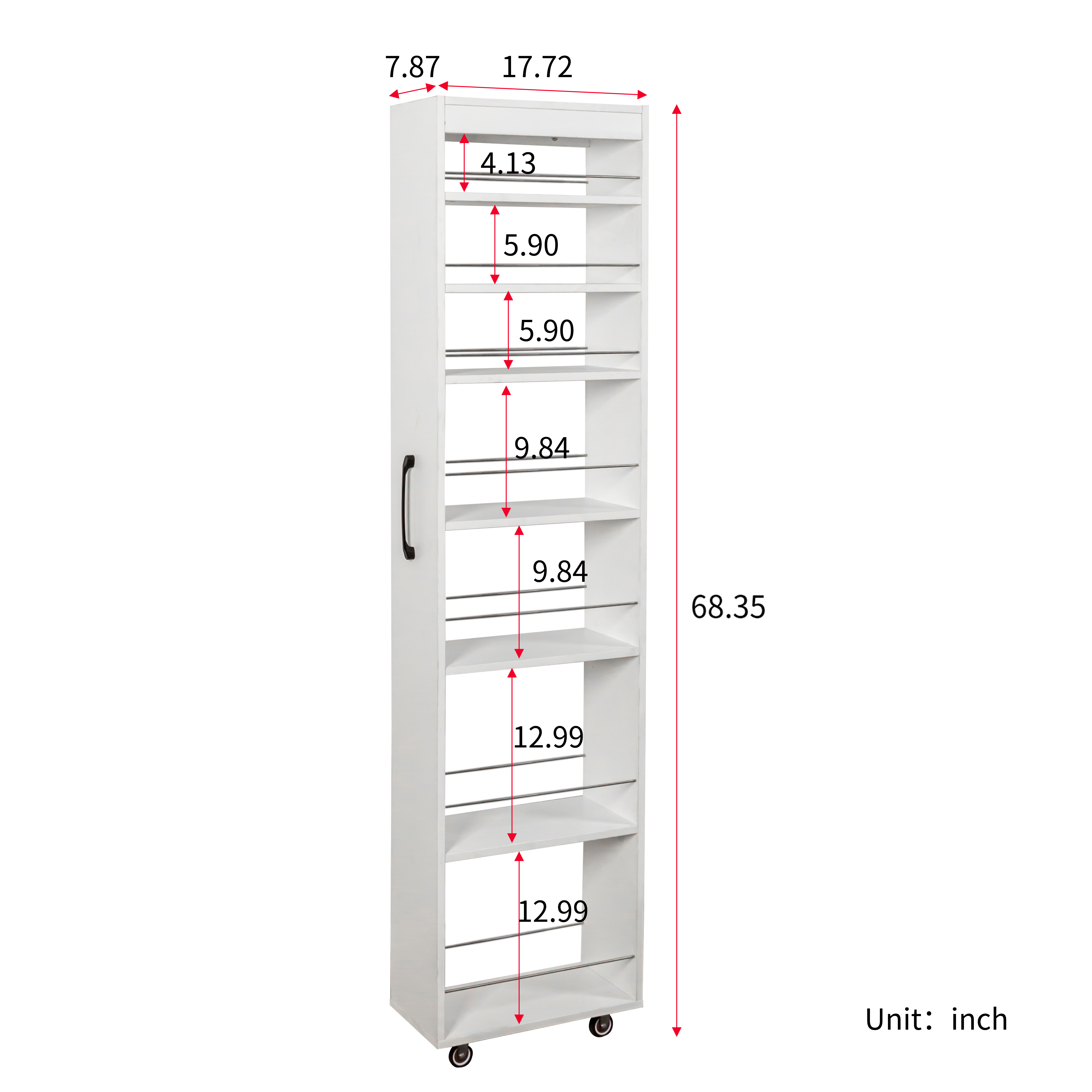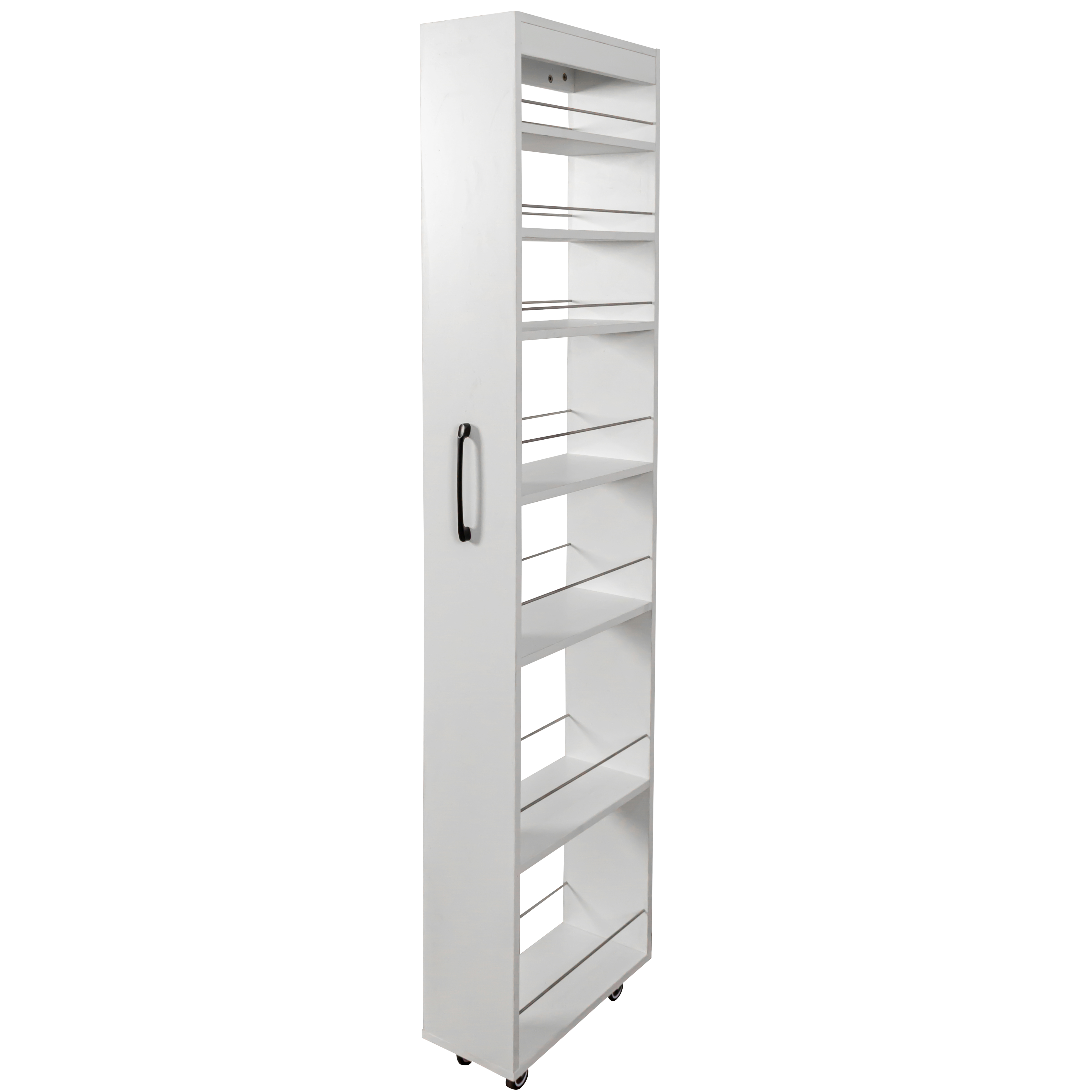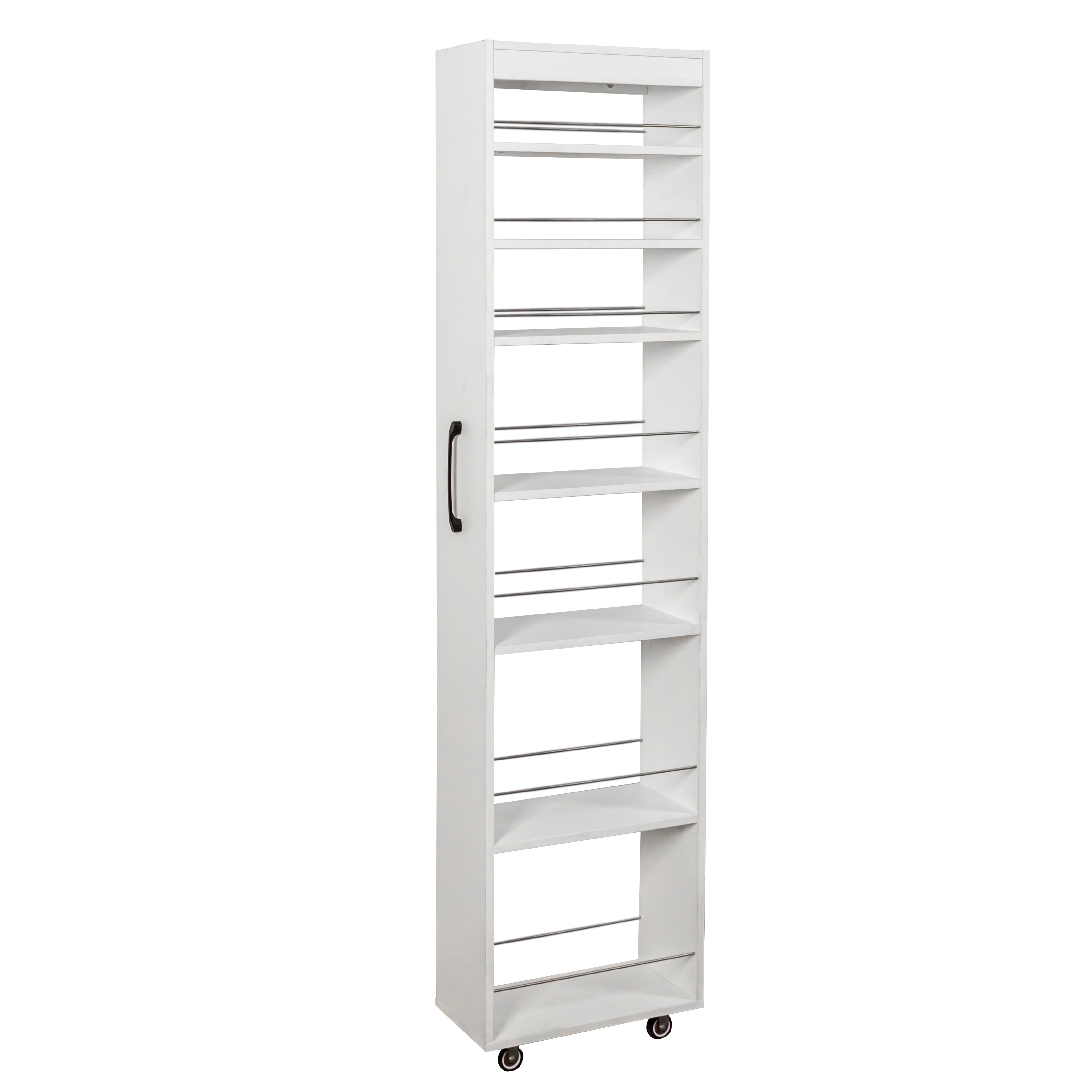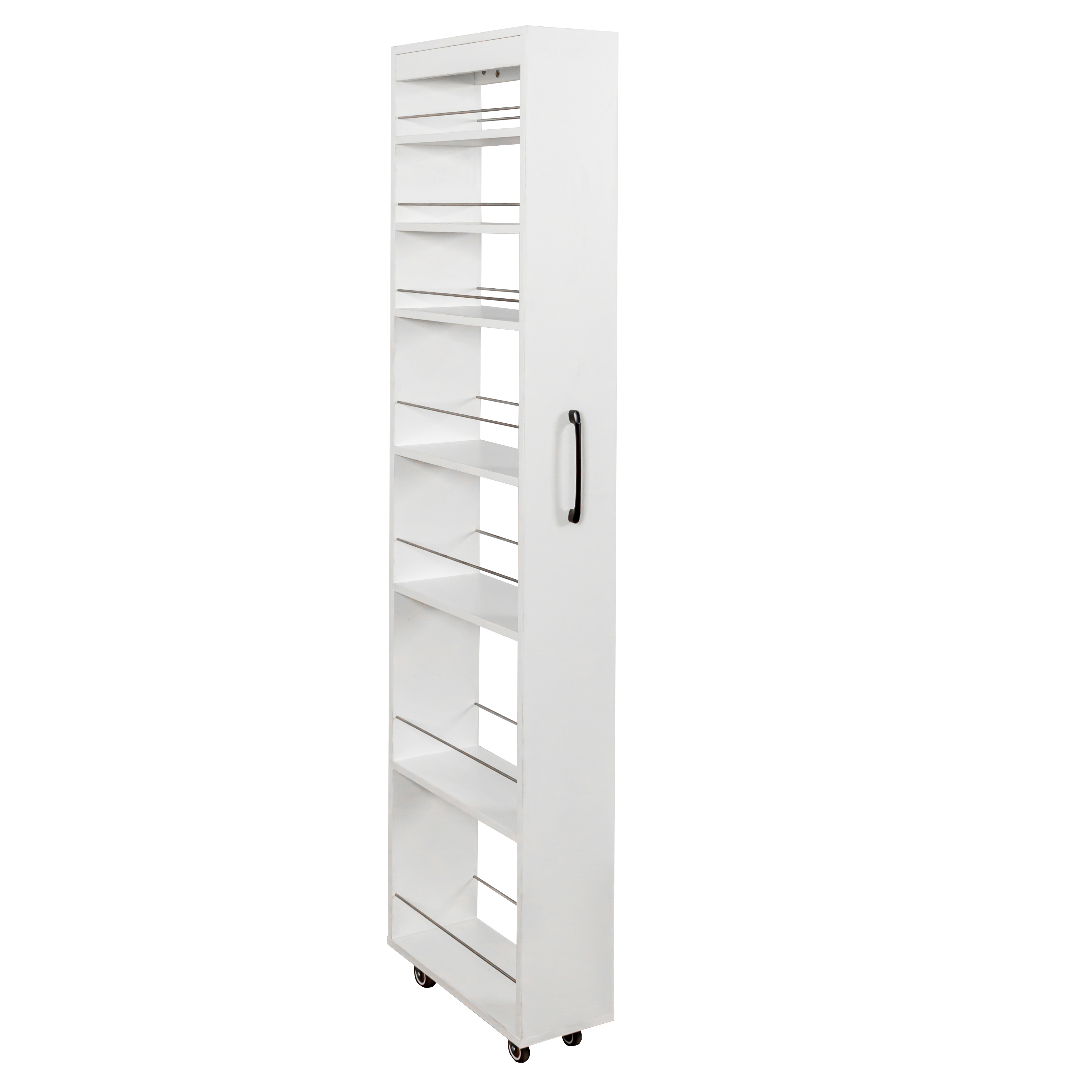 - This storage shelf is only 7.80 inches wide, designed perfectly fits between refrigerator/counter, washer/dryer, or tight corners. Maximize every inch of space in your home, it is a small house storage savior.
