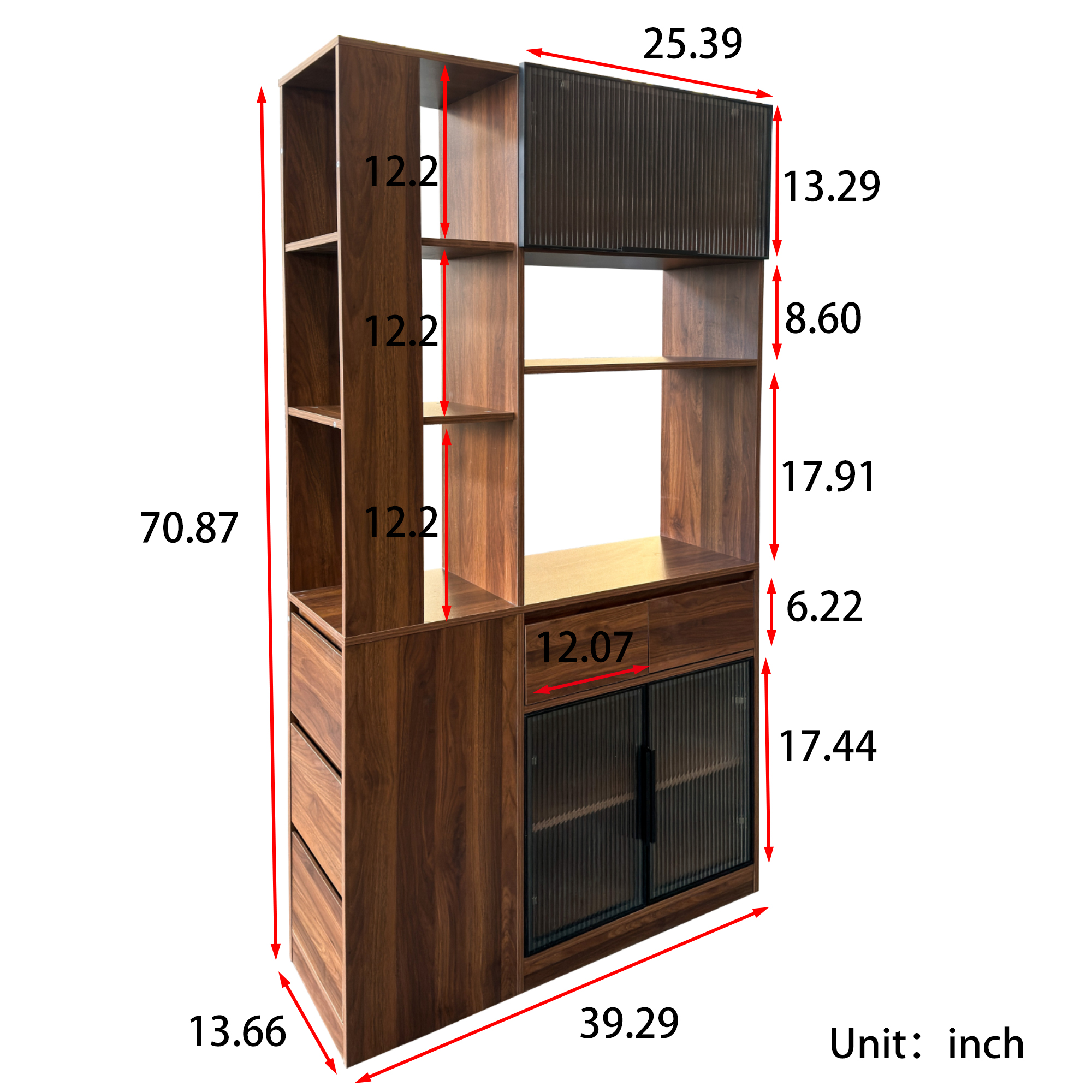- The two storage with glasses doors offers diverse storage possibilities for organizing various items.You can utilize the small display shelves to attach various decorations to create a unique display area This tall storage can provide you with storage and display solutions anywhere.