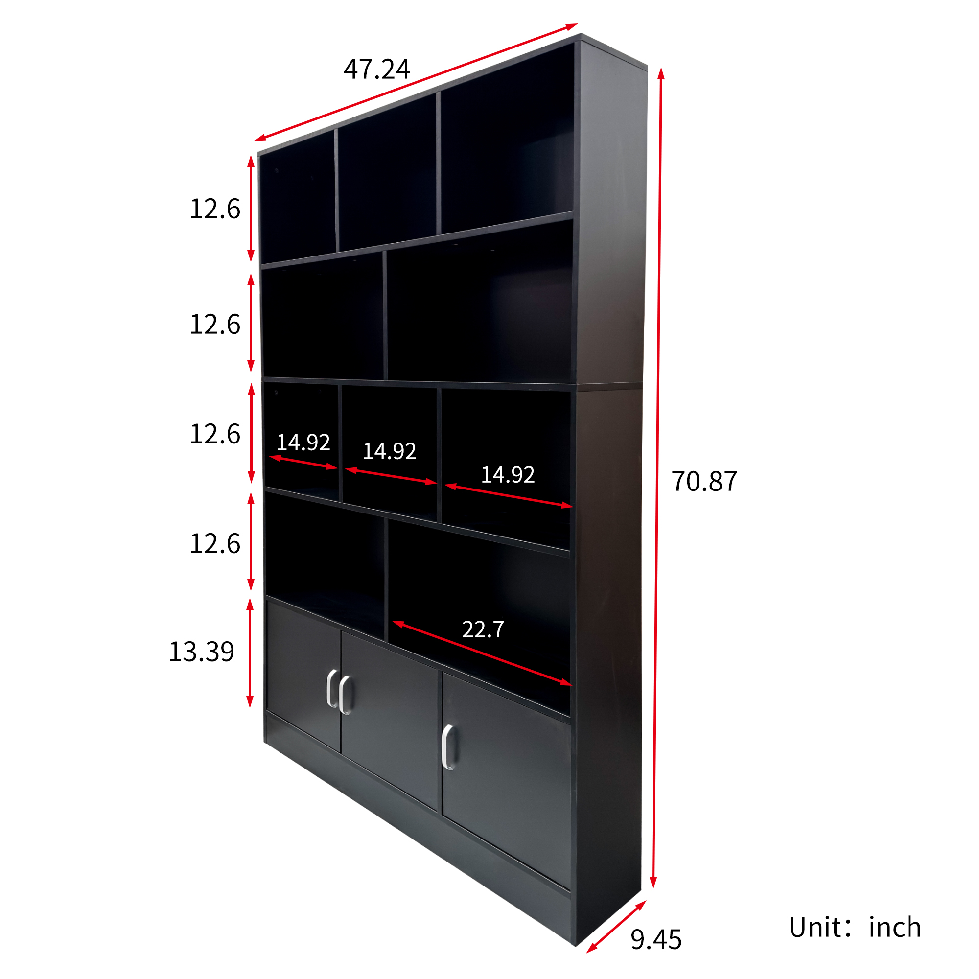 Product Name:70.87" Tall Bookshelf with 10 Cubes and 3 Doors, 4-Tier Bookshelf, Open Shelf Bookcase with Cabinet, Modern Cube Storage Organizer for Living Room, and Office