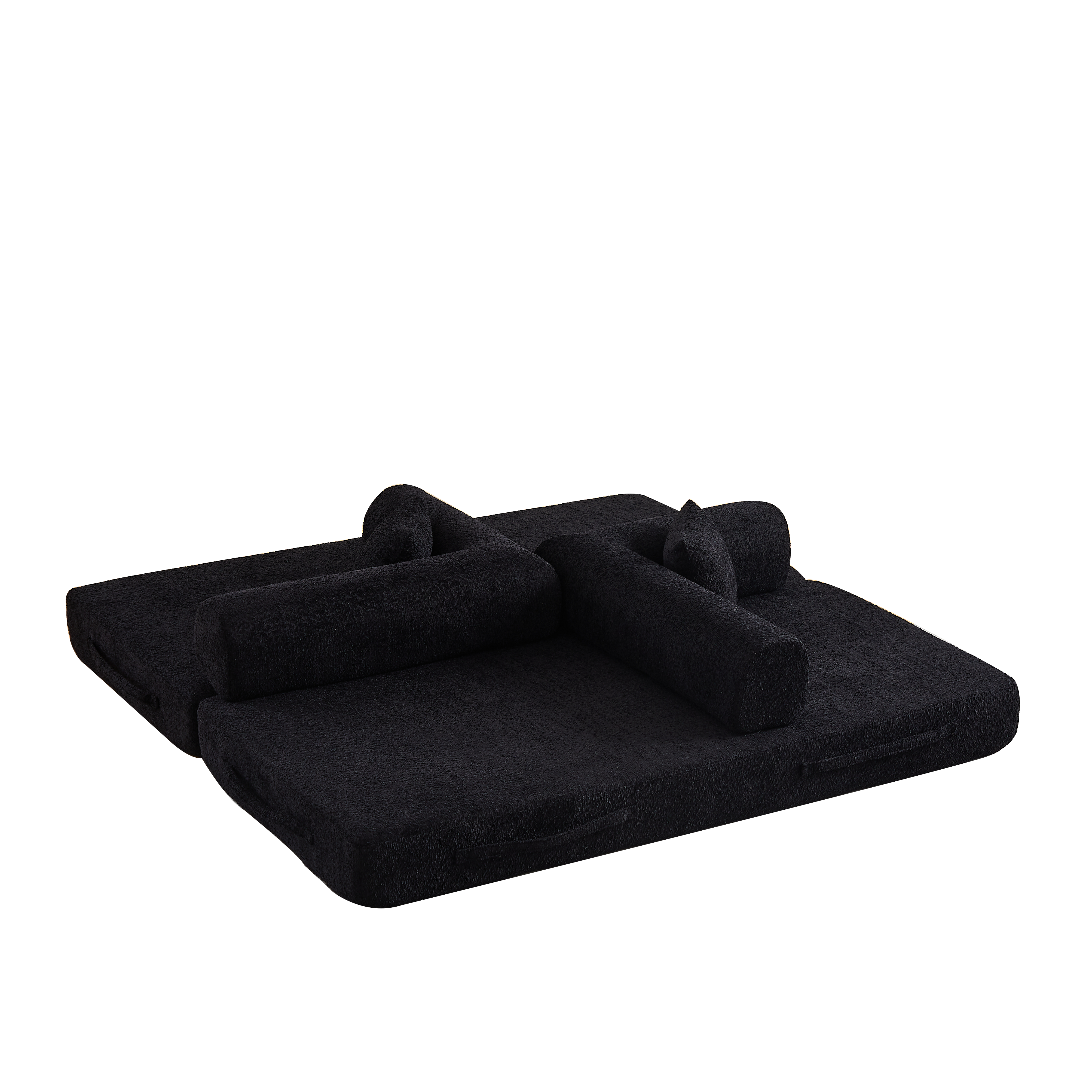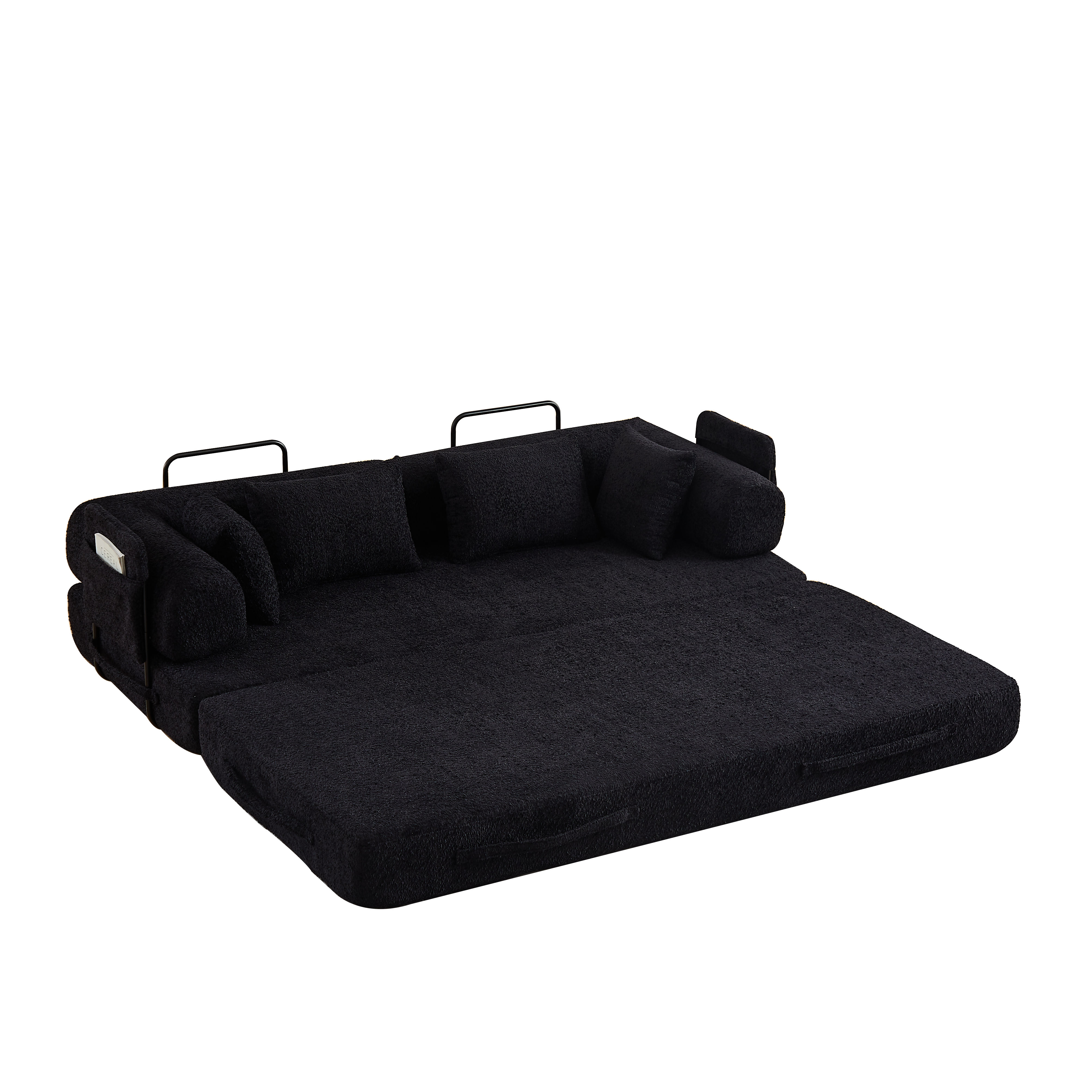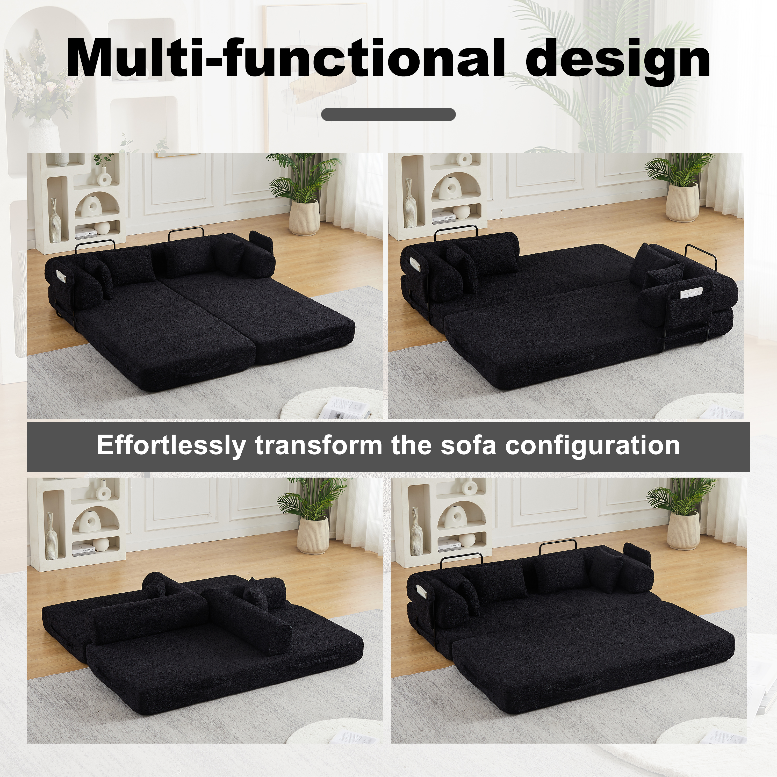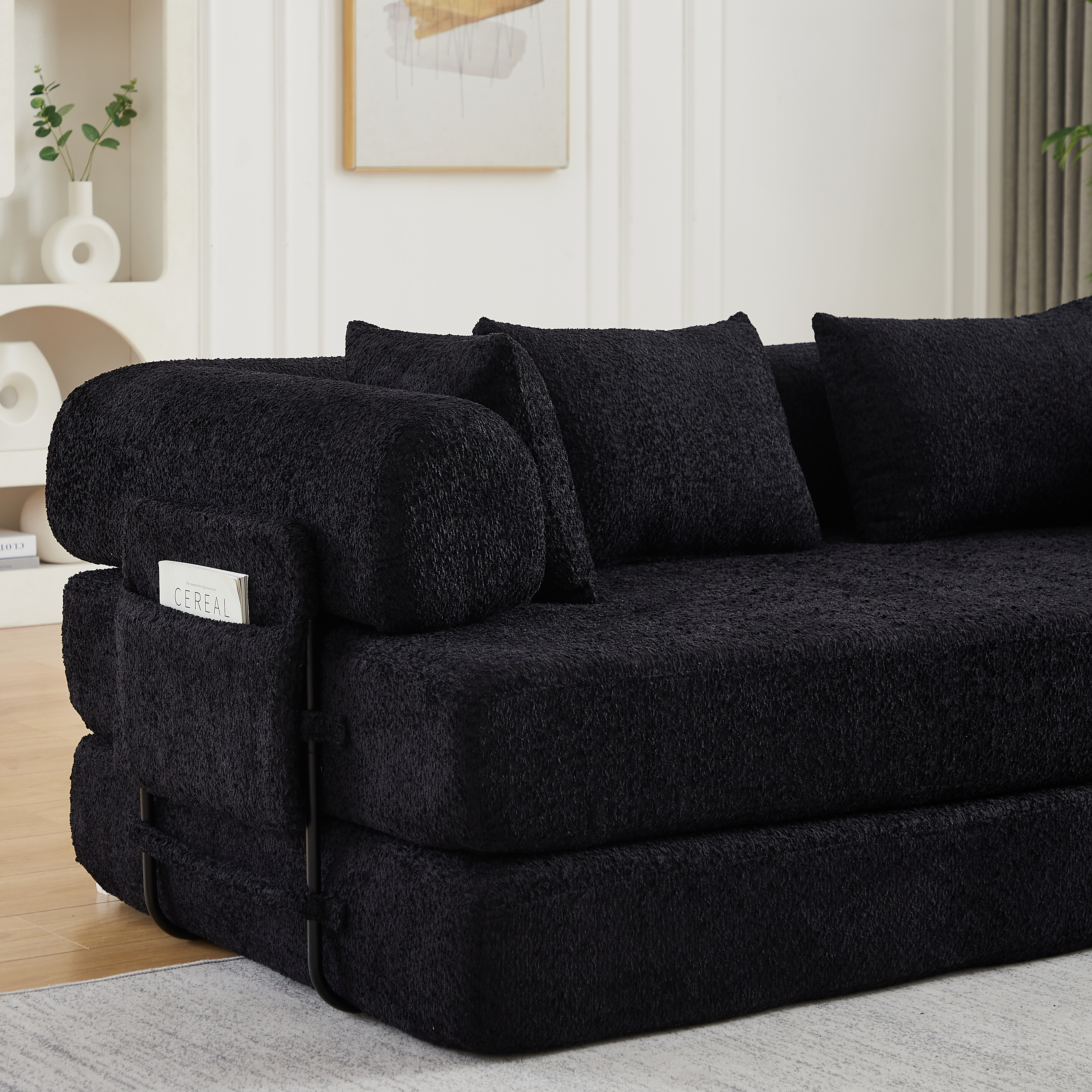 Product Name:78.7-Inch Convertible Sleeper Sofa Bed with Cylindrical Pillow, Chenille Folding Mattress Couch with ,Folding Sofa Bed with Side Pocket, Floor Sofa Lounge Couch for Living Room Bedroom Lounge Studio