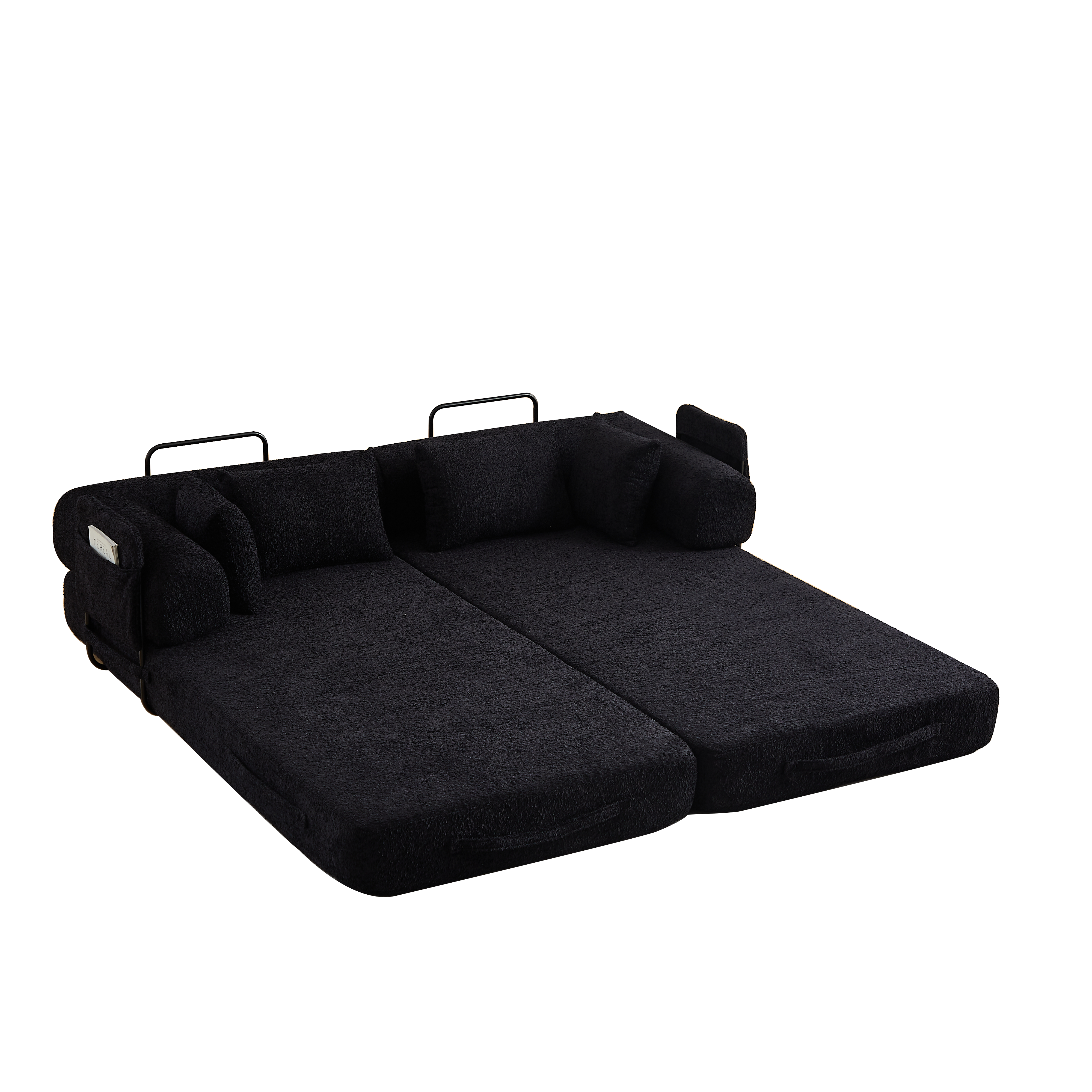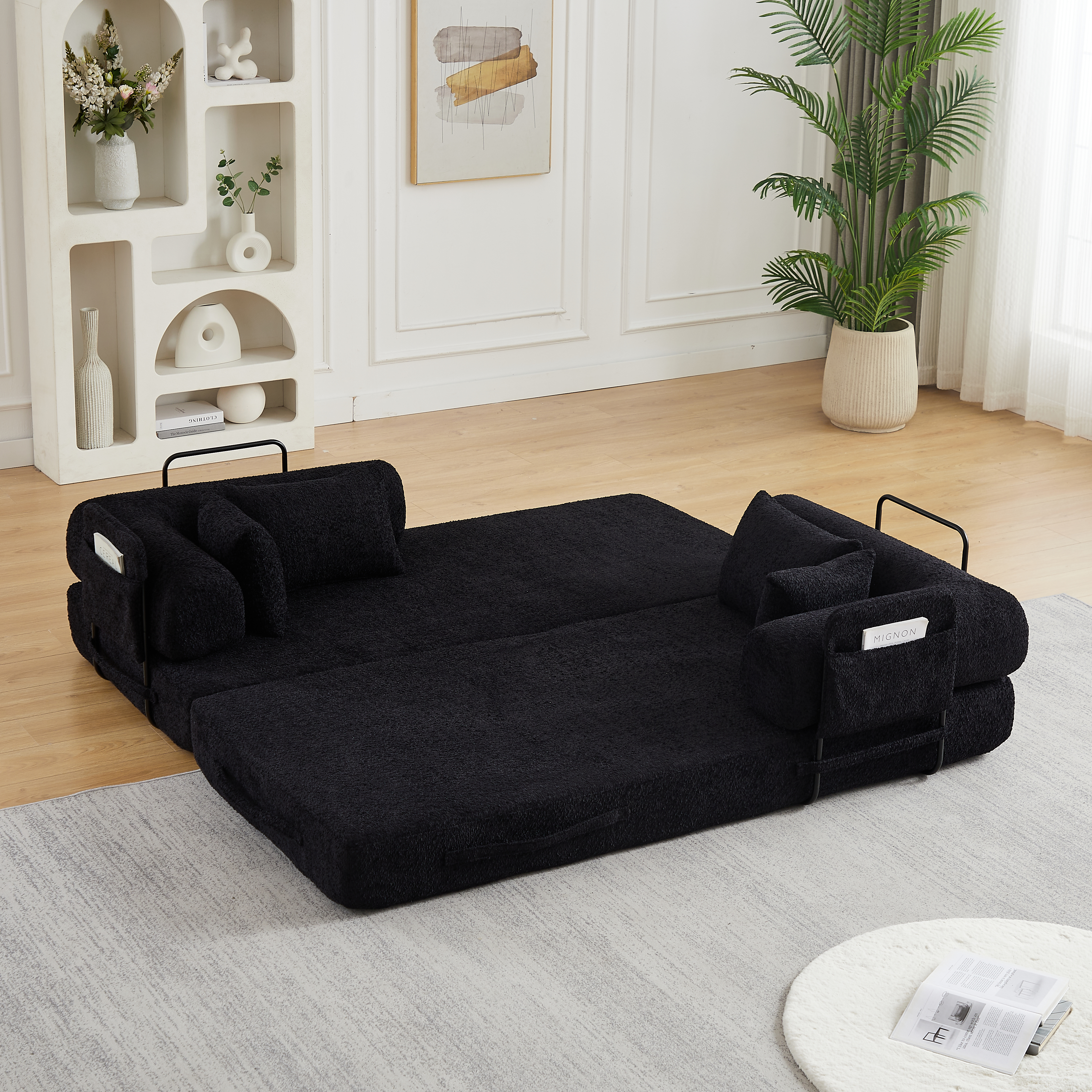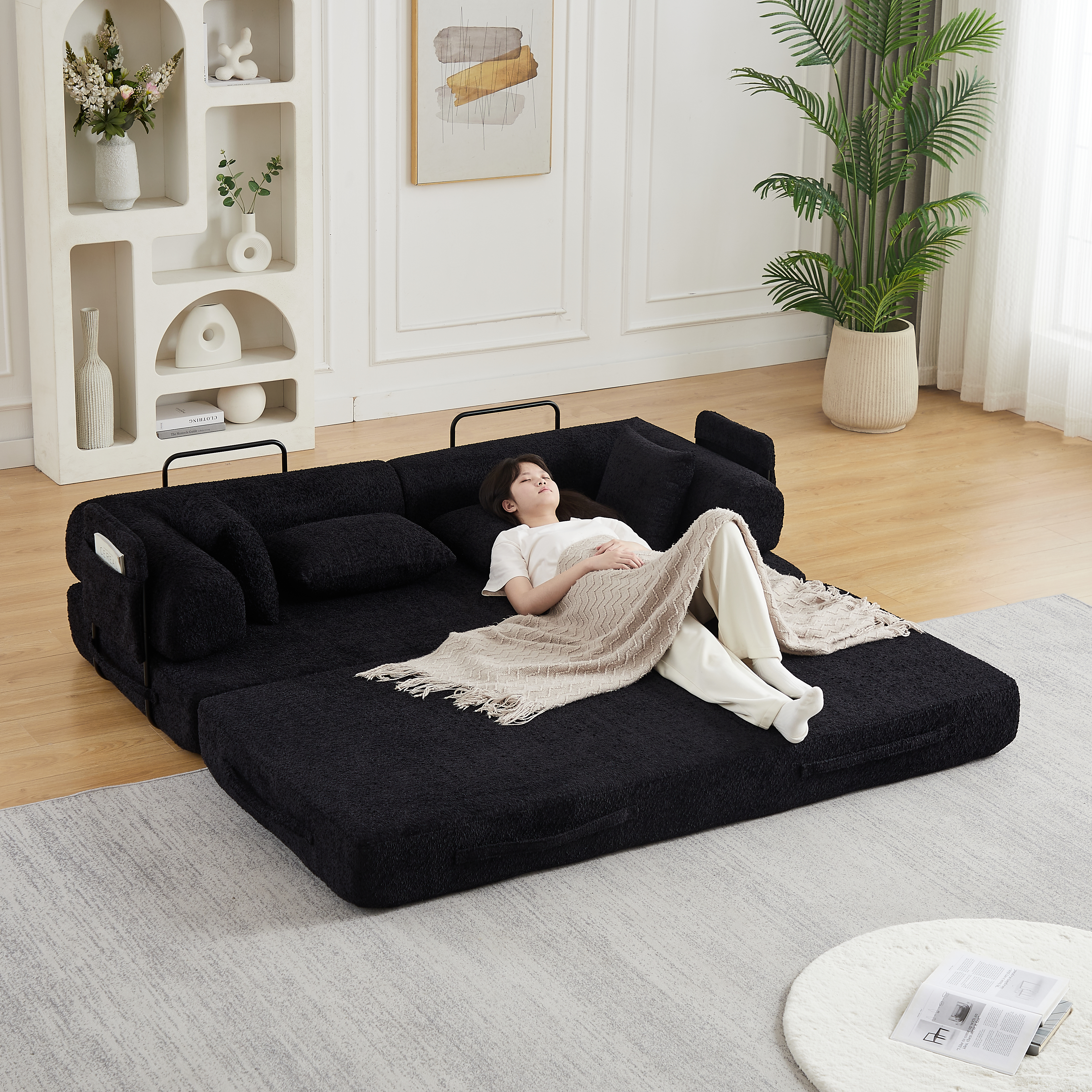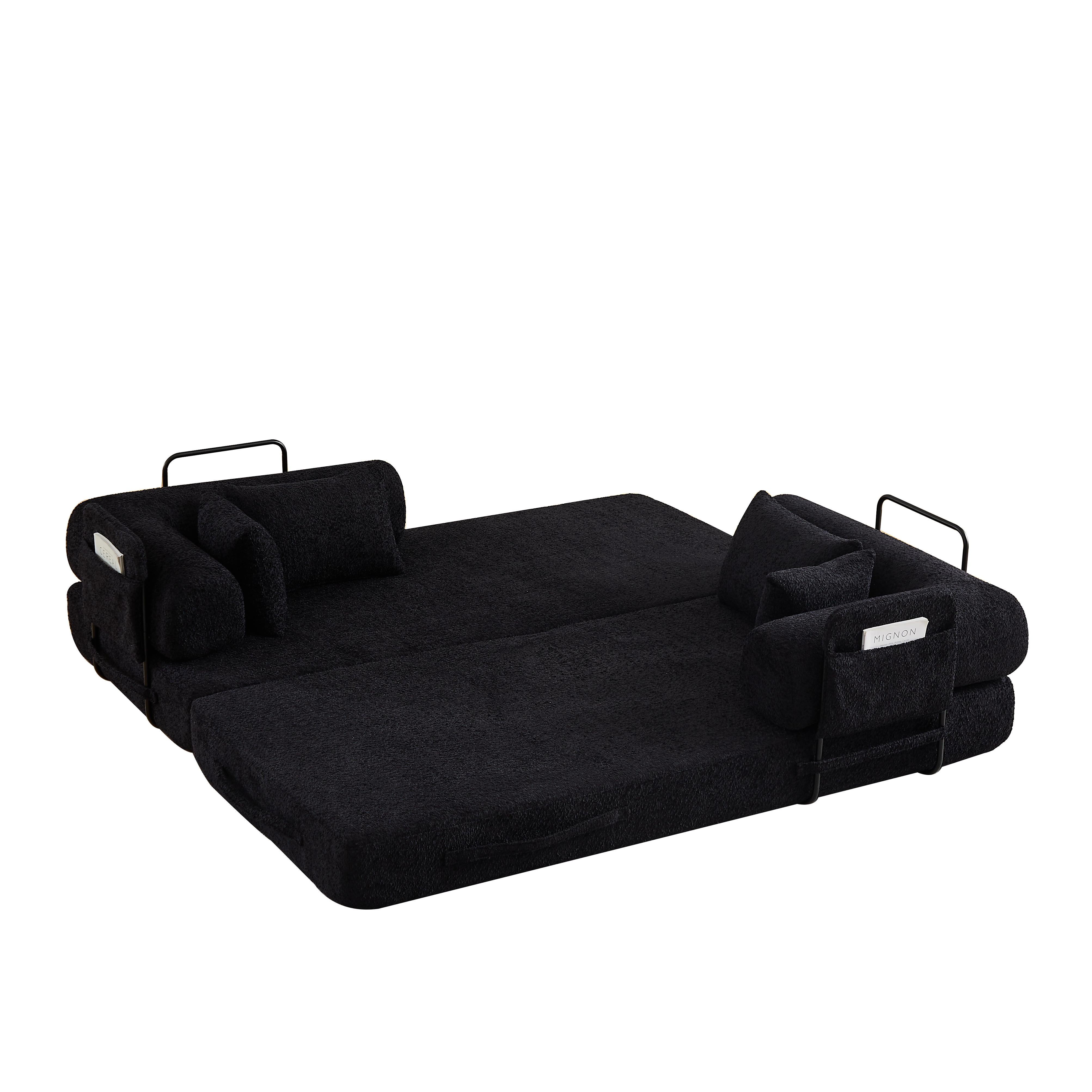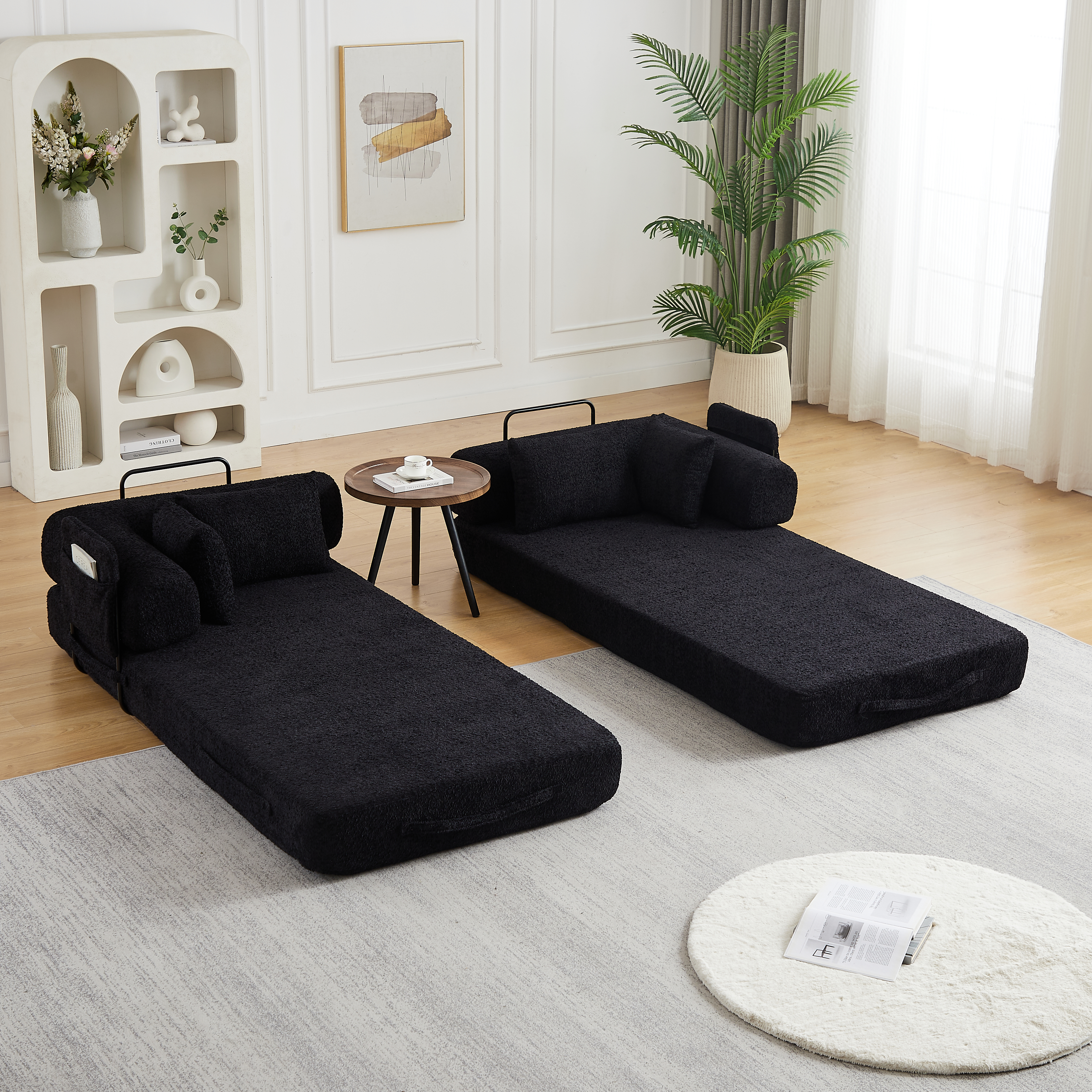 Product Name:78.7-Inch Convertible Sleeper Sofa Bed with Cylindrical Pillow, Chenille Folding Mattress Couch with ,Folding Sofa Bed with Side Pocket, Floor Sofa Lounge Couch for Living Room Bedroom Lounge Studio