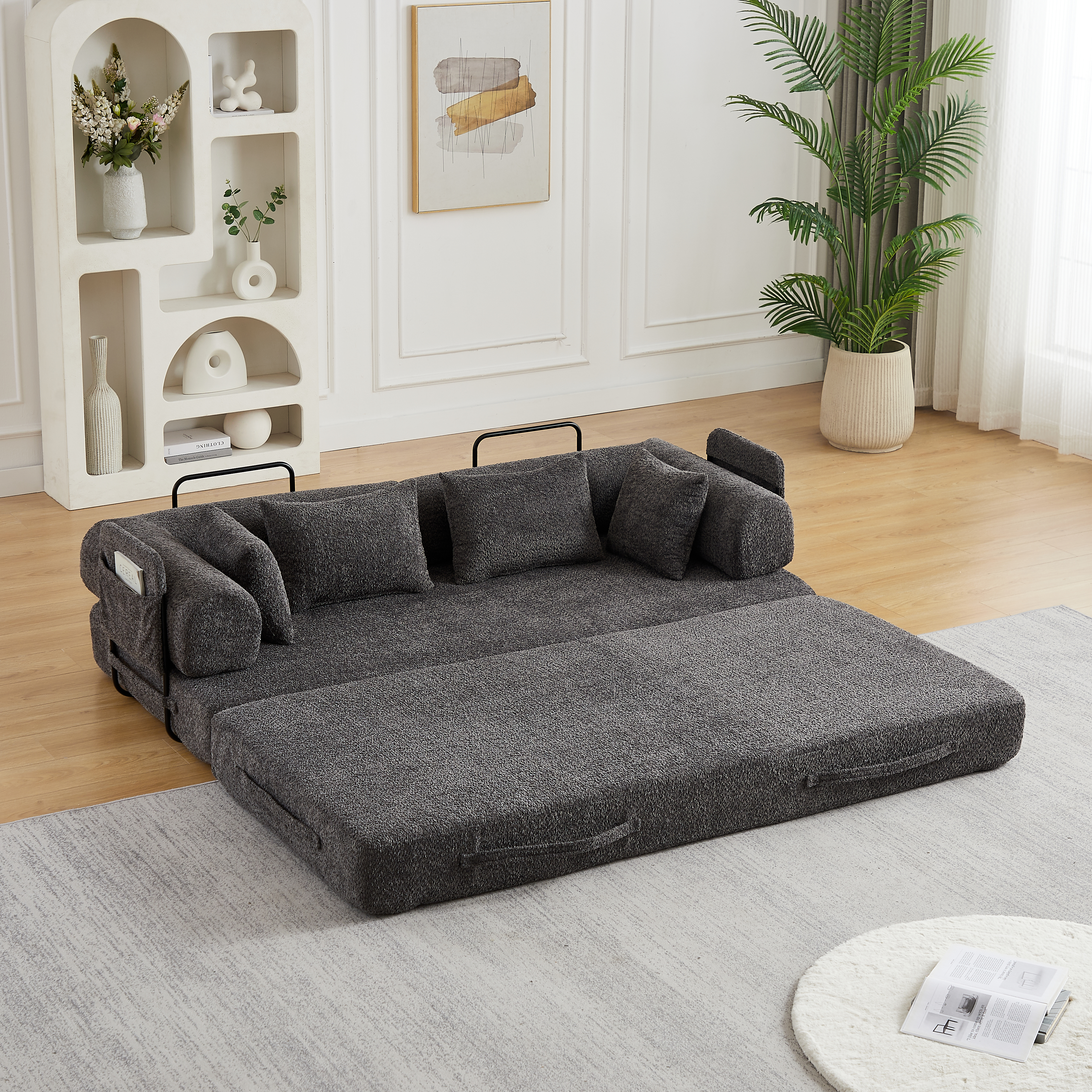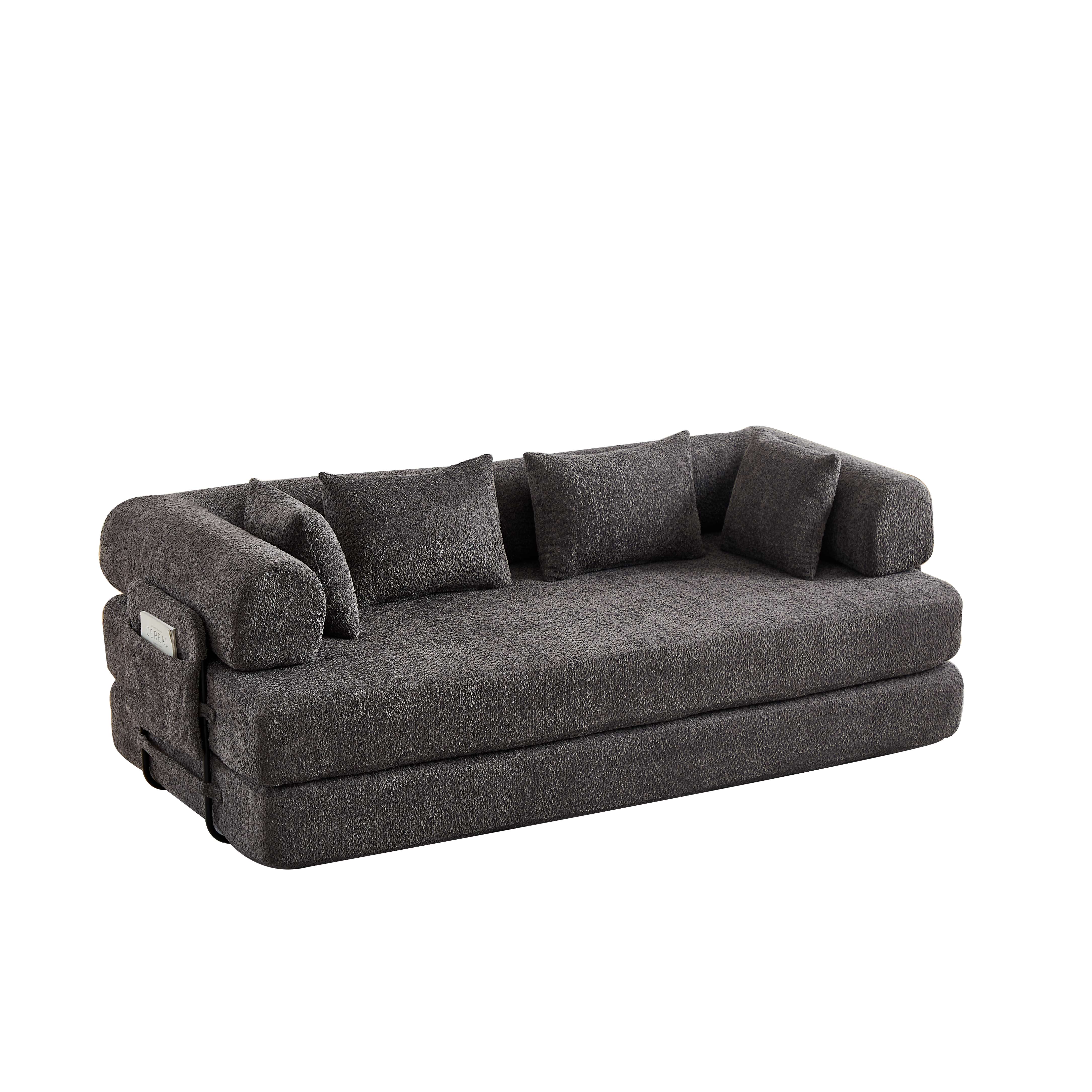 Product Name:78.7-Inch Convertible Sleeper Sofa Bed with Cylindrical Pillow, Chenille Folding Mattress Couch with ,Folding Sofa Bed with Side Pocket, Floor Sofa Lounge Couch for Living Room Bedroom Lounge Studio