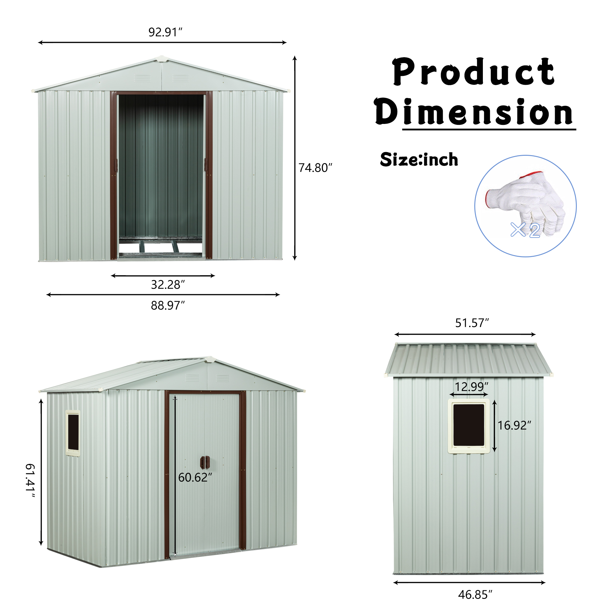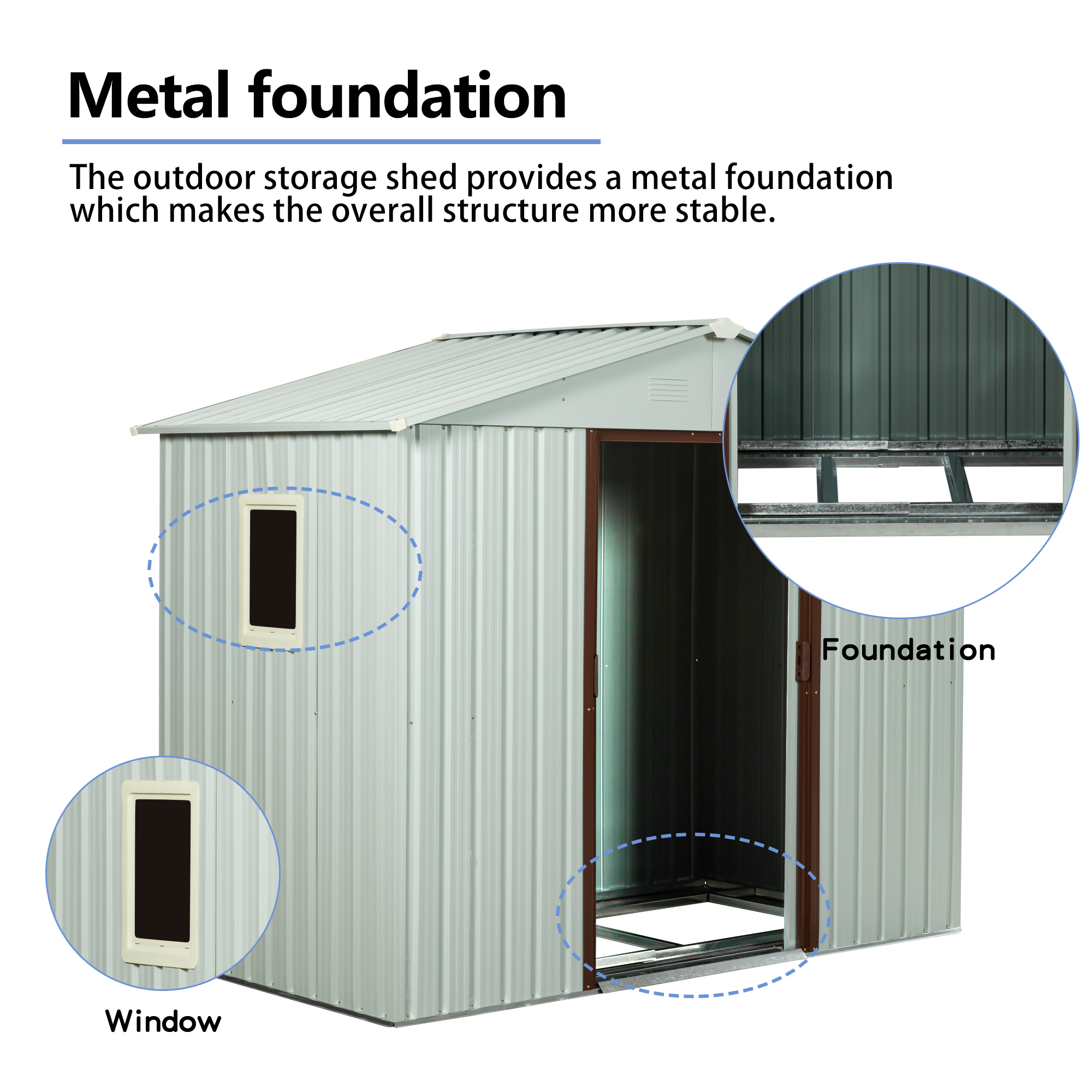 Product Specifications: Basic information Product Type:Single Box Product Product Name:8ft x 4ft Outdoor Metal Storage Shed With window and metal foundation White Color:White Material:Metal Product size Assembly Lengt...