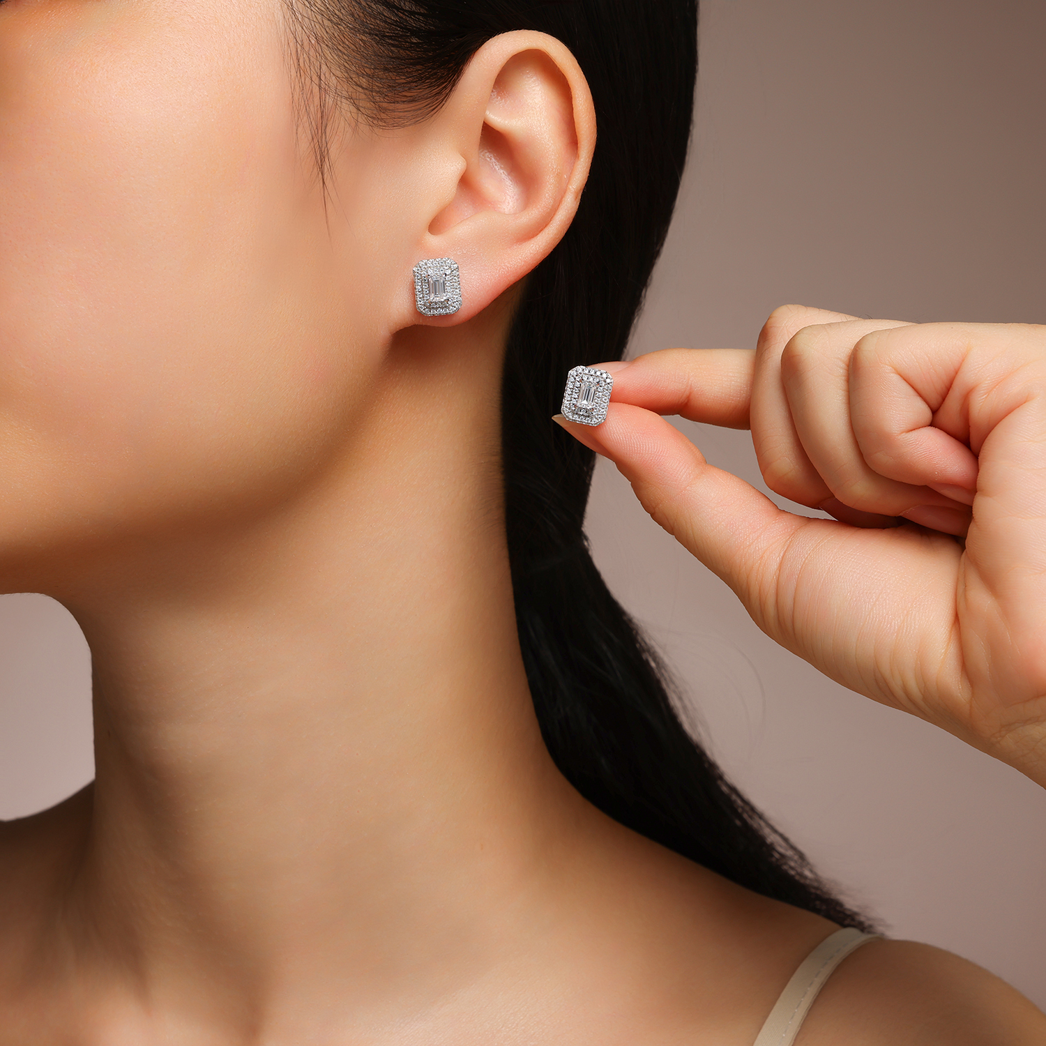 A Luxurious And Fashionable Minimalist Jewelry Earring Set Featuring Top quality Moissanite...