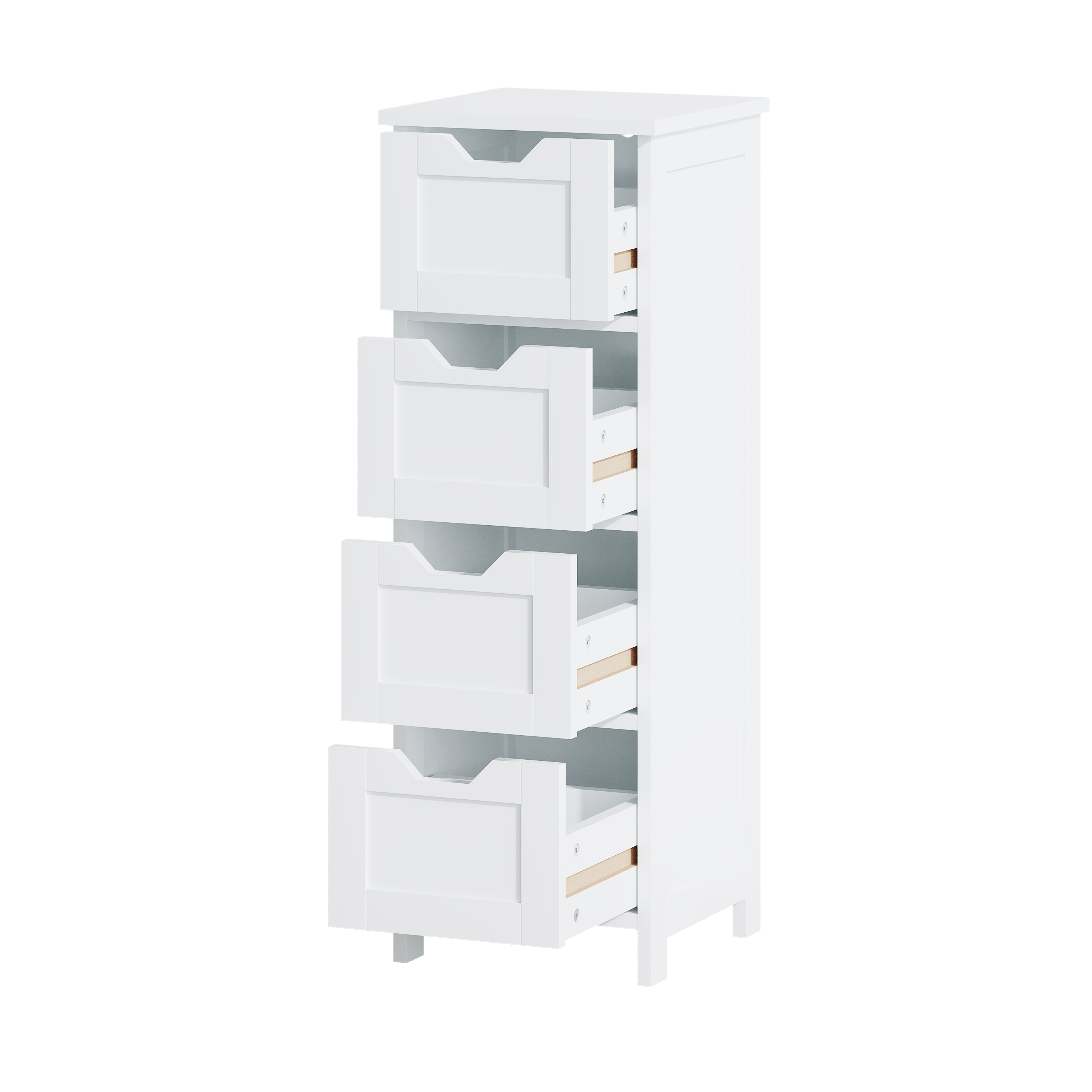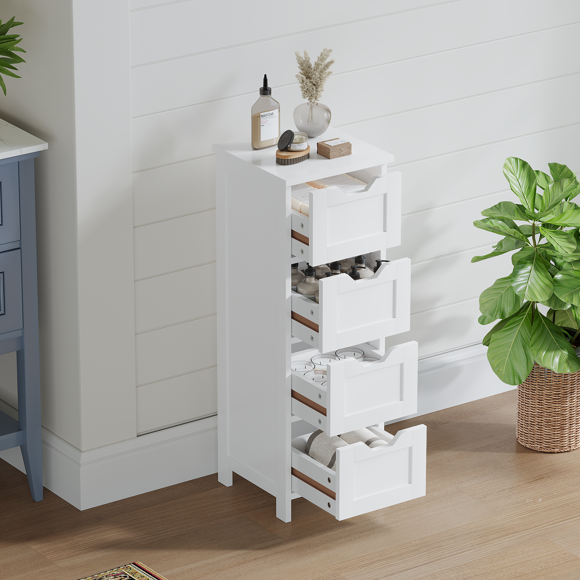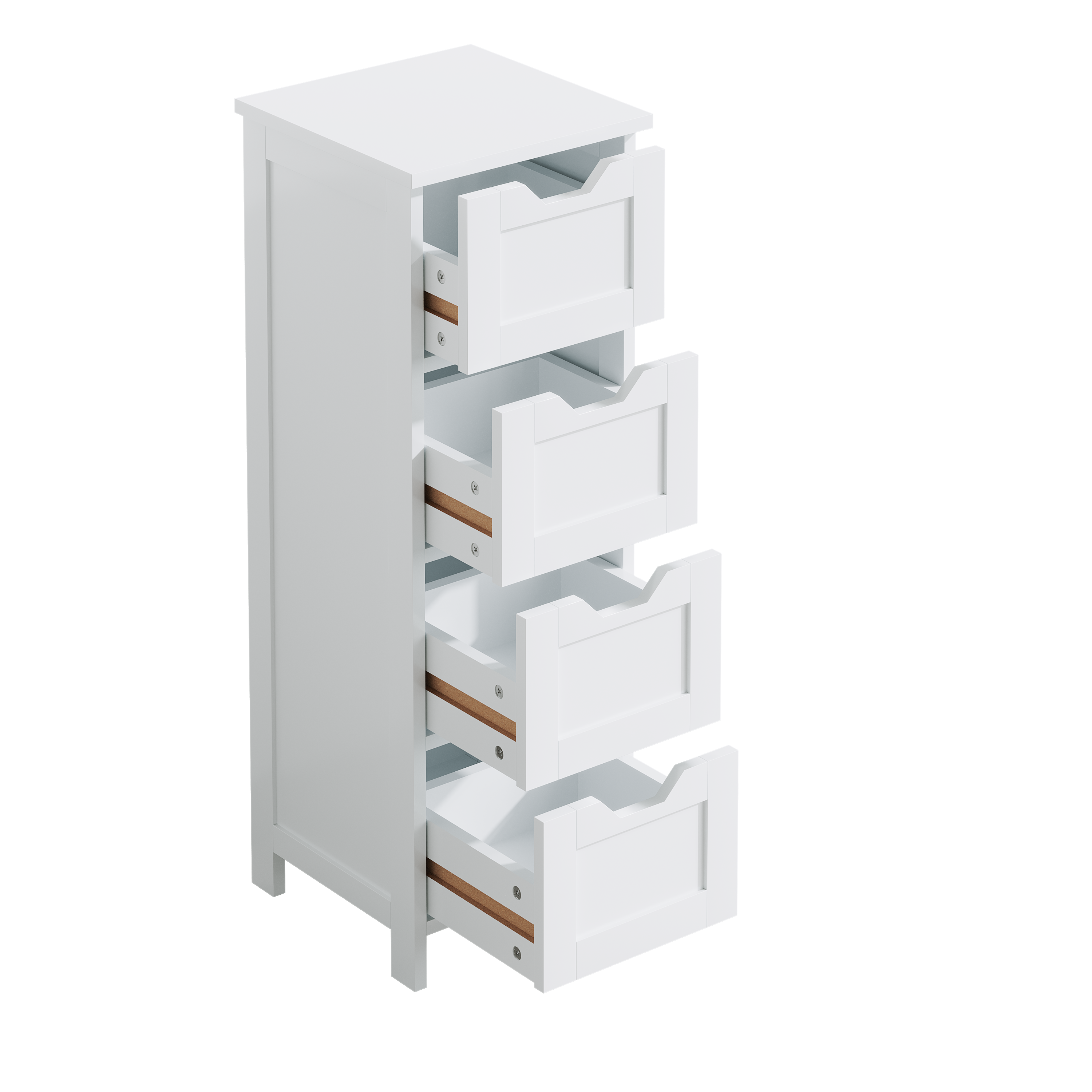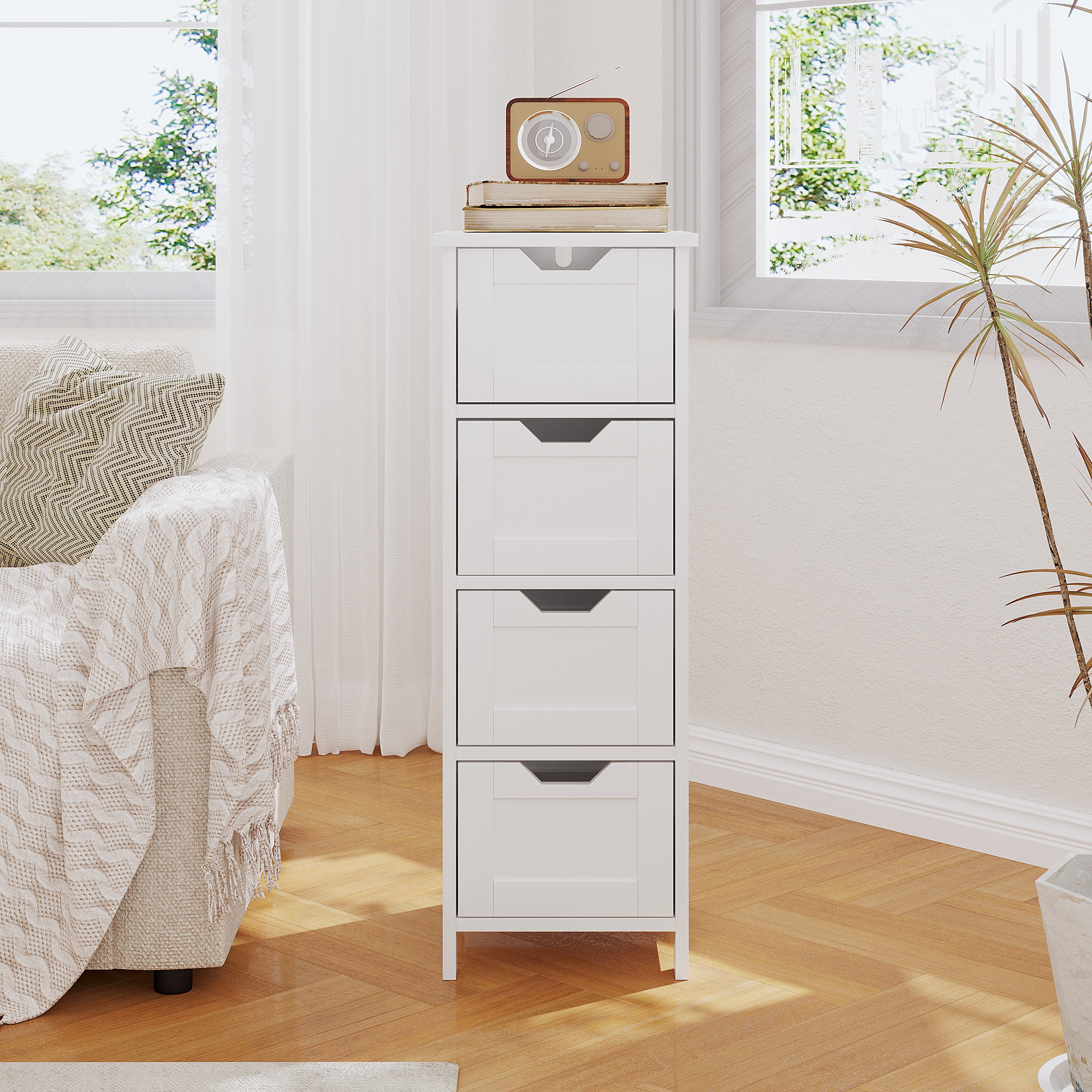 Product Name:Bathroom Floor Cabinet with 4 Drawers, Freestanding Wooden Storage Organizer for Bathroom, Hallway or Living Room, Narrow White Side Cabinet with Space-Saving Vertical Design, White