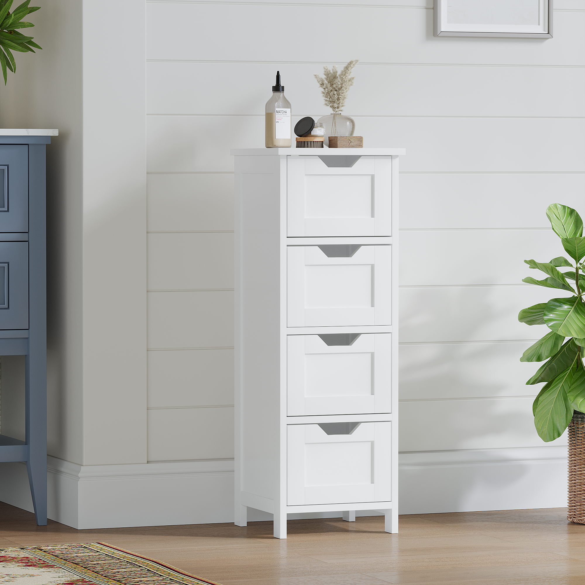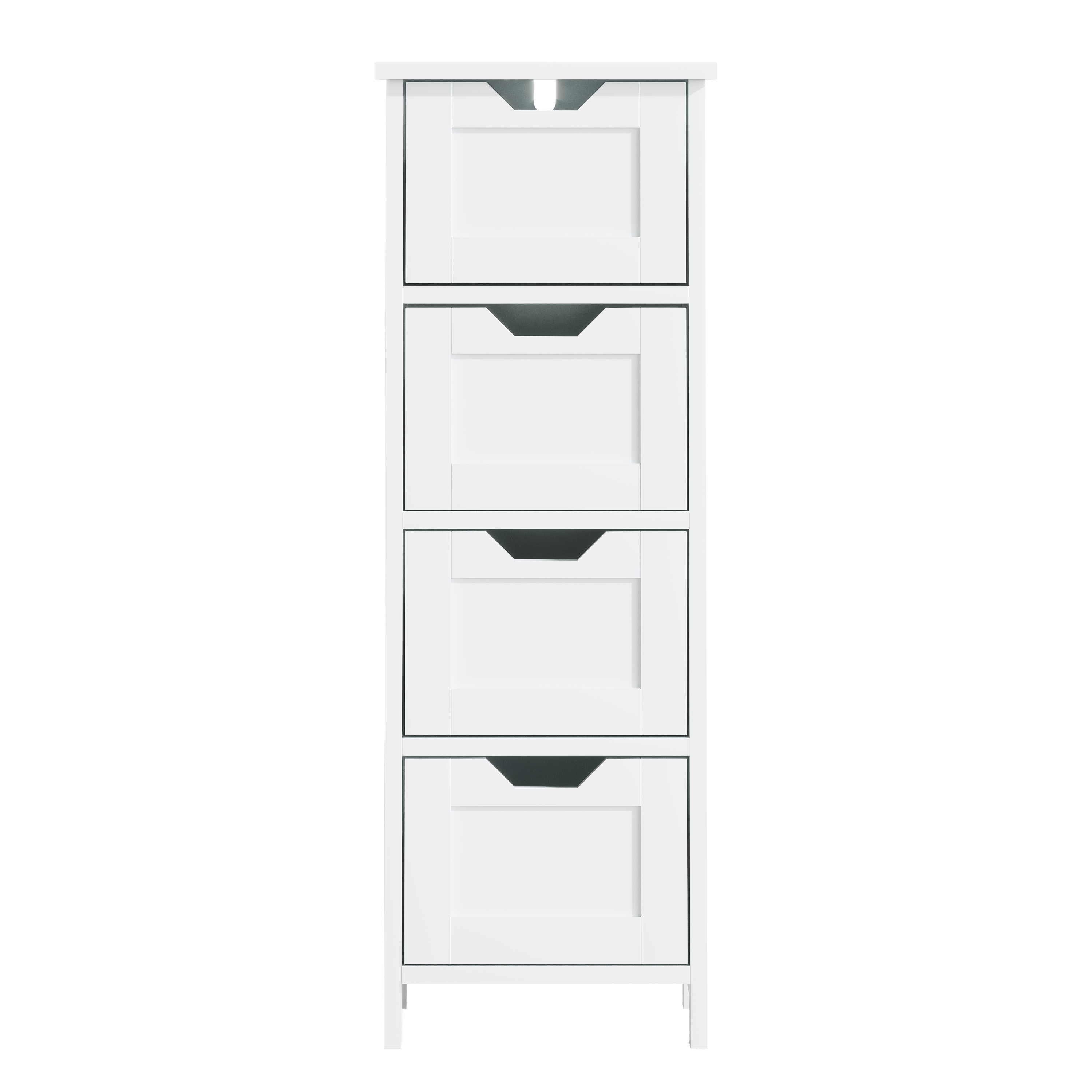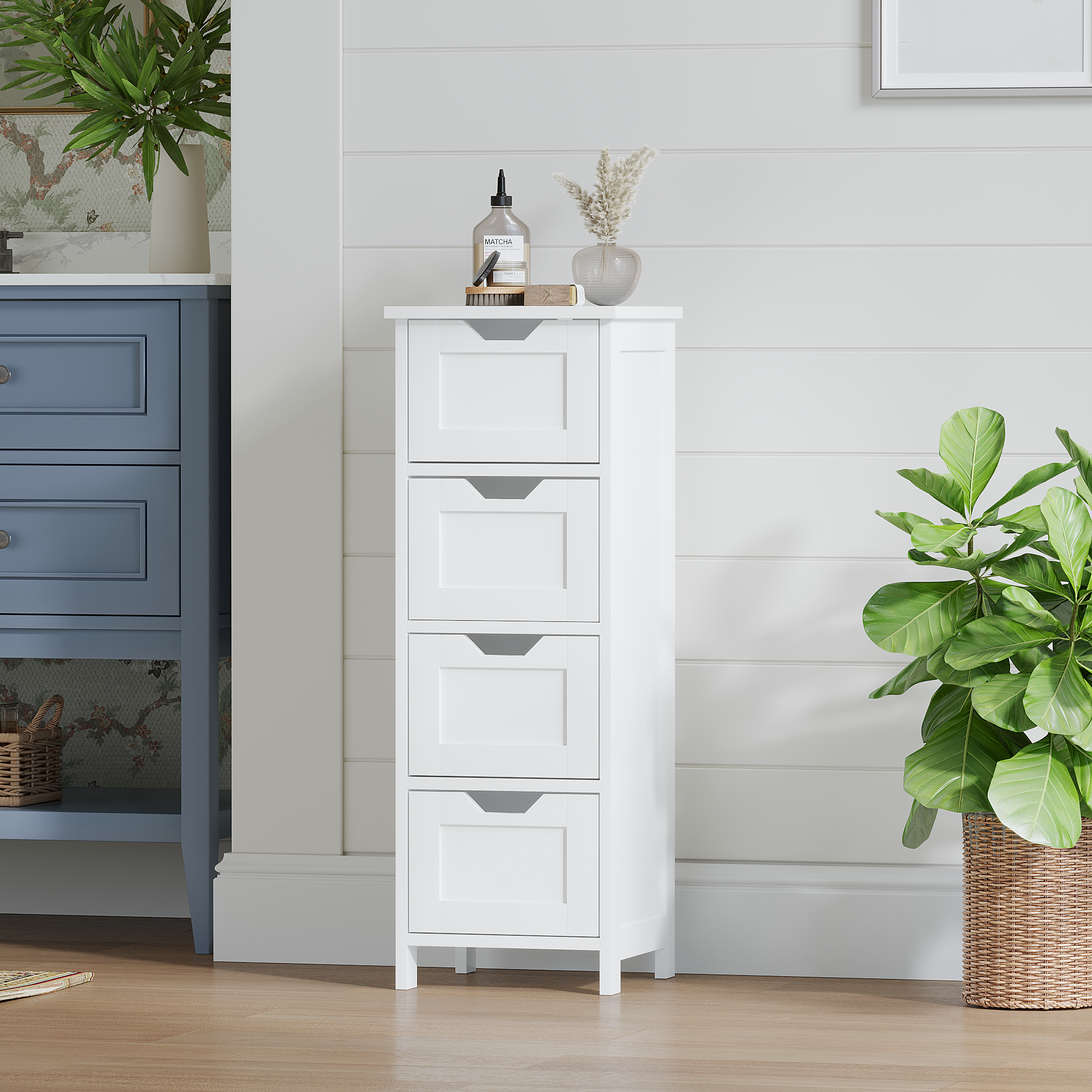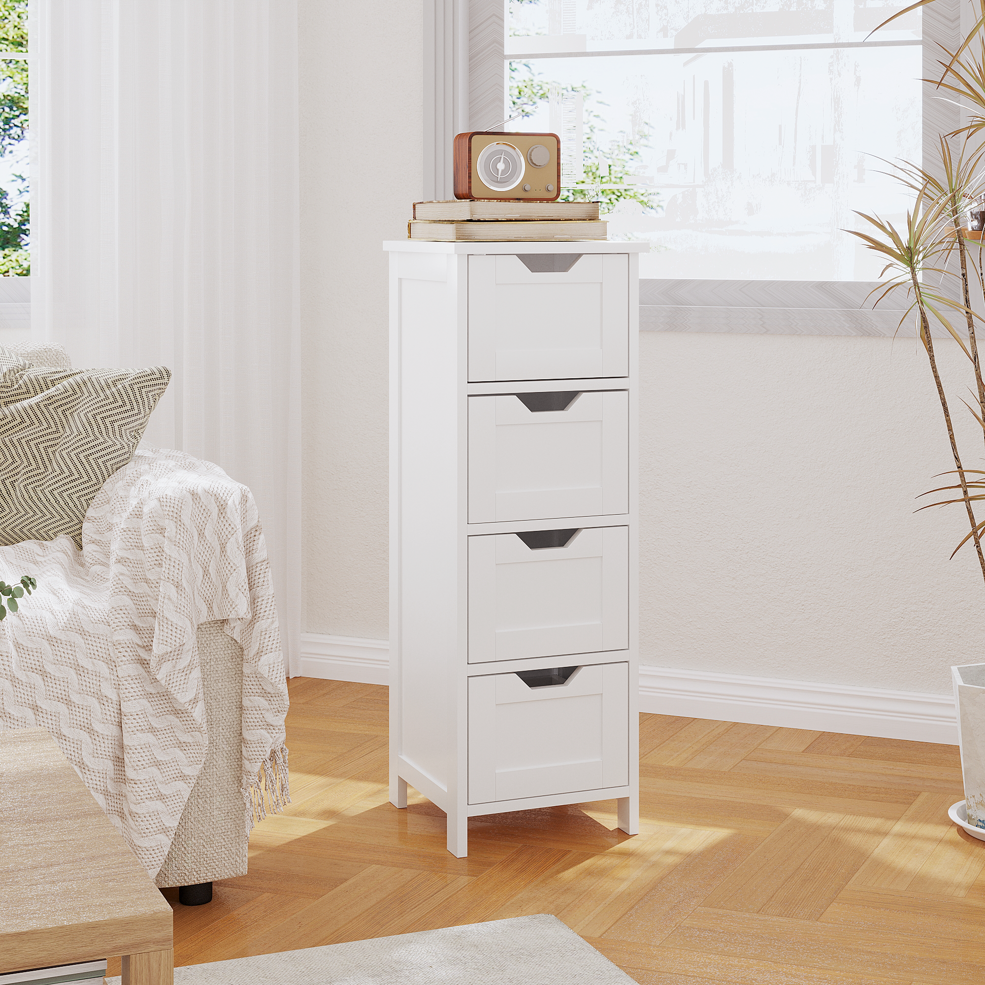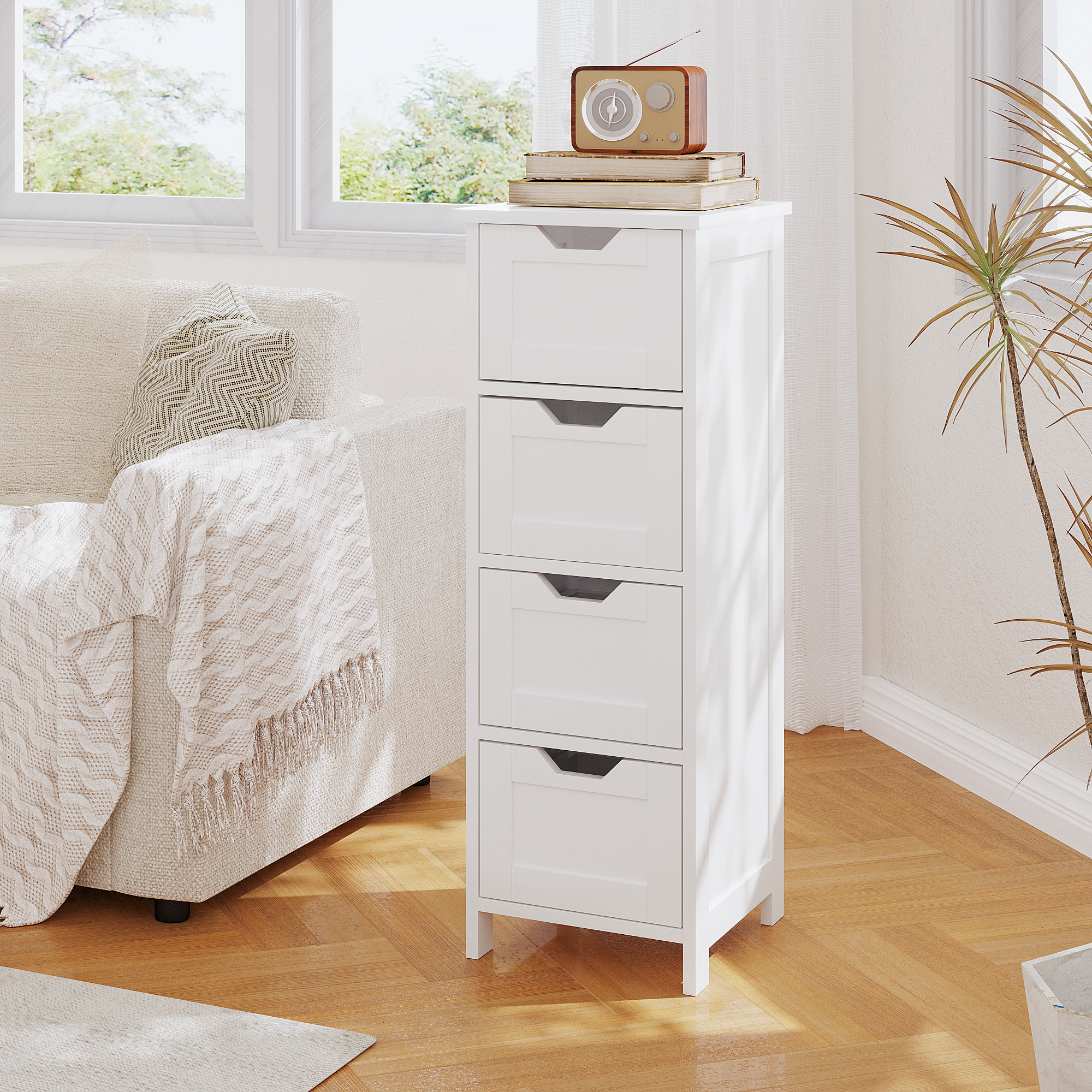 Product Name:Bathroom Floor Cabinet with 4 Drawers, Freestanding Wooden Storage Organizer for Bathroom, Hallway or Living Room, Narrow White Side Cabinet with Space-Saving Vertical Design, White