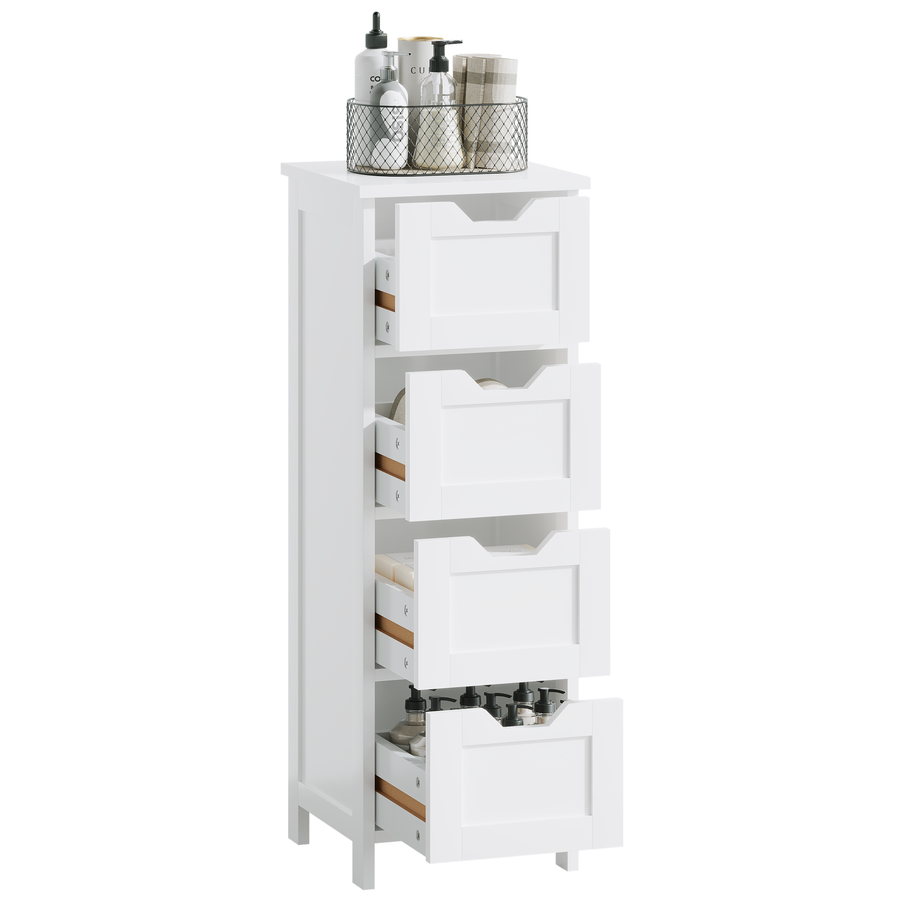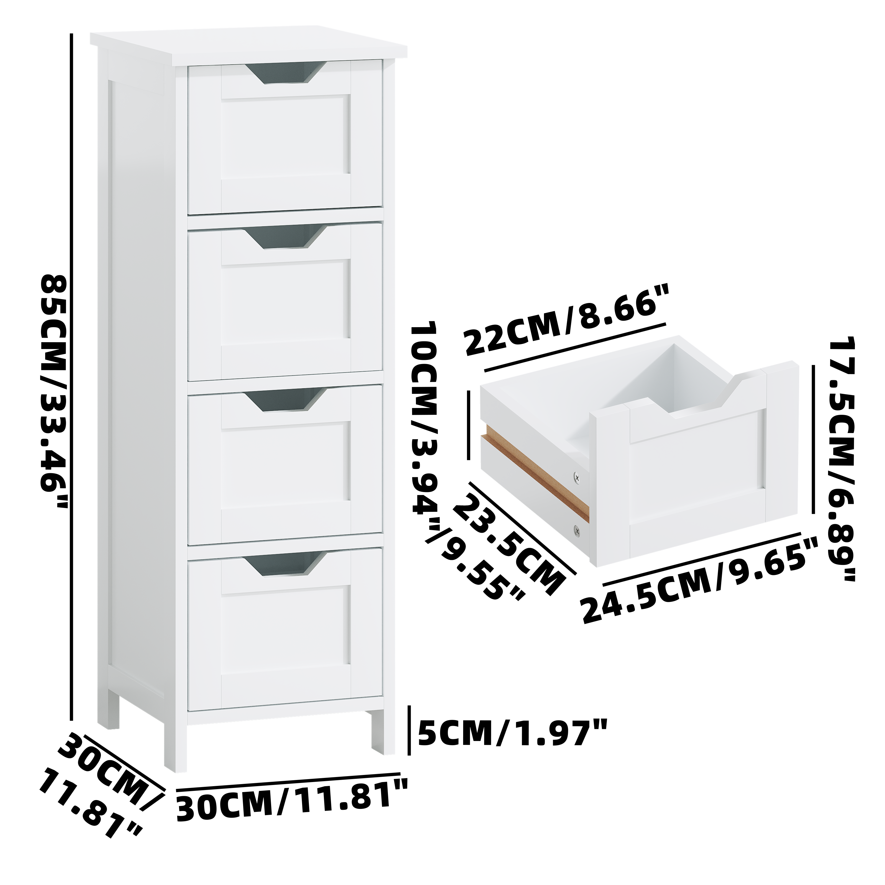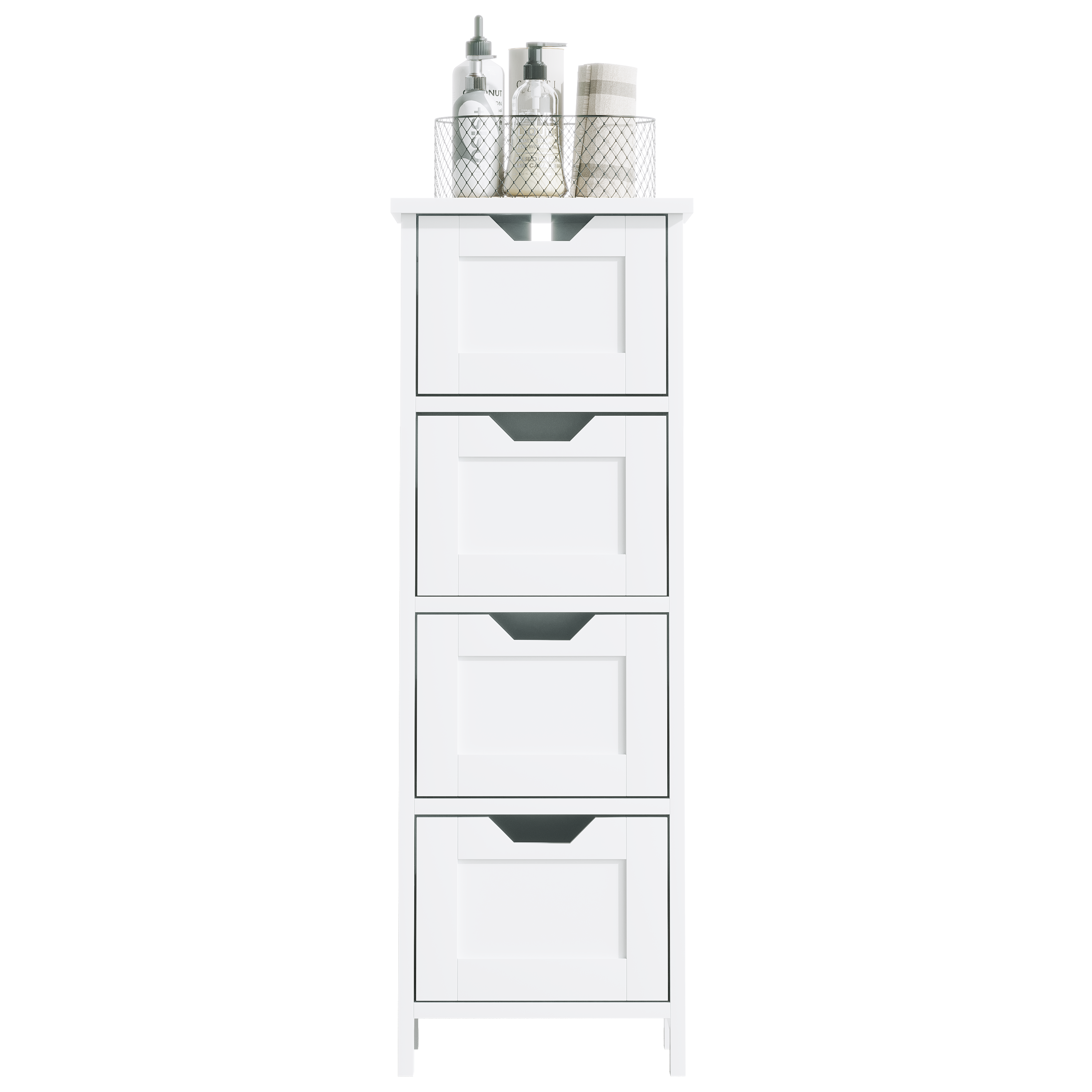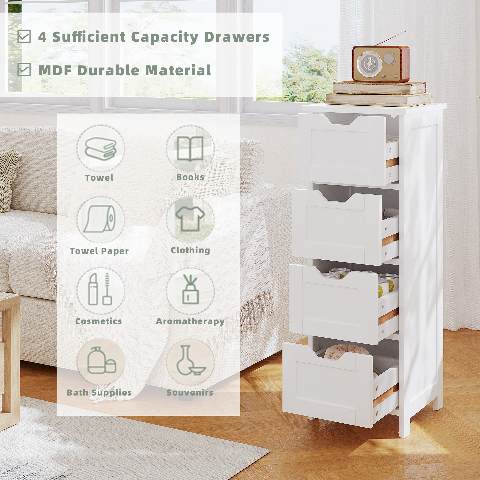 Product Name:Bathroom Floor Cabinet with 4 Drawers, Freestanding Wooden Storage Organizer for Bathroom, Hallway or Living Room, Narrow White Side Cabinet with Space-Saving Vertical Design, White