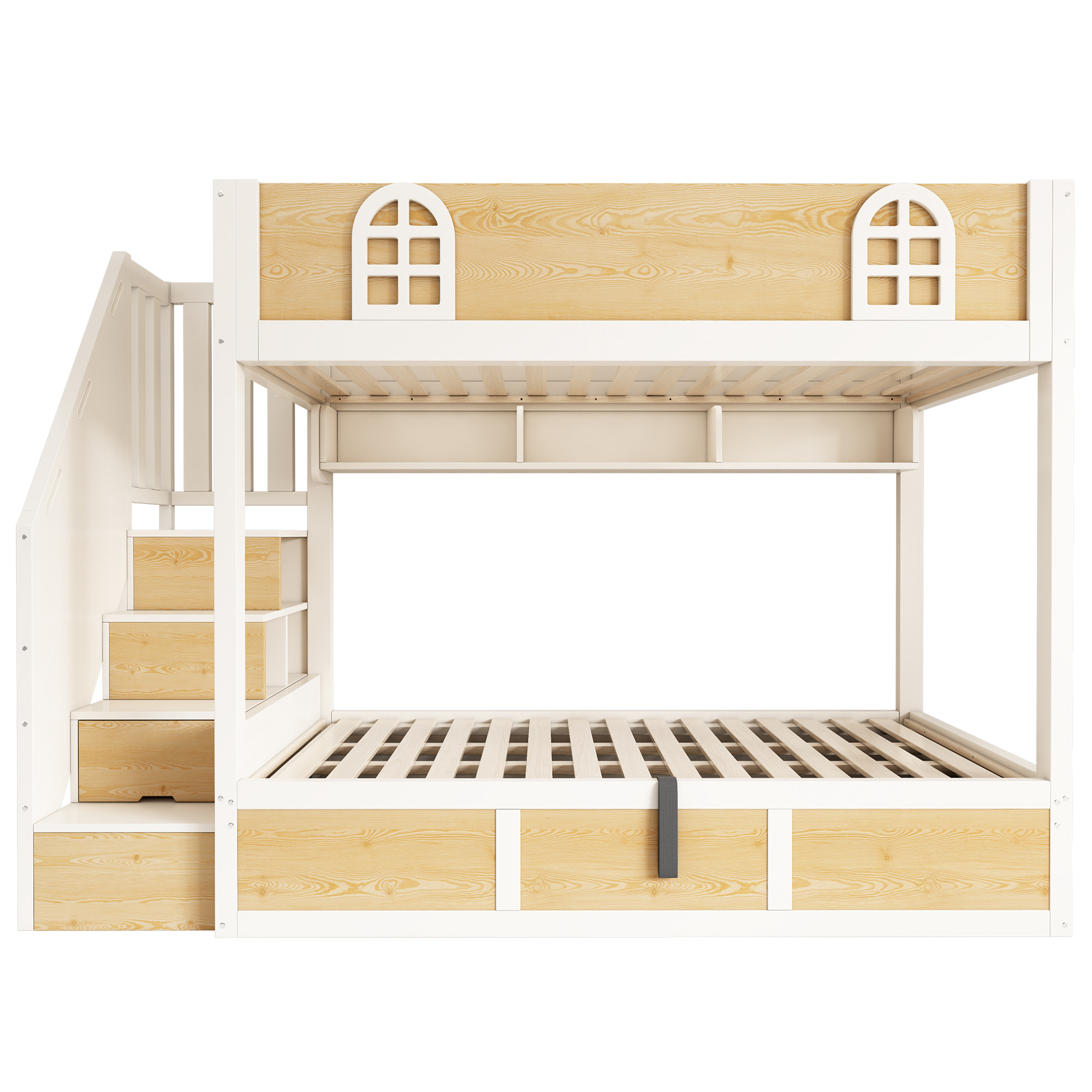 - ⭐【Staircase Cabinet with Storage】This side-mounted staircase wardrobe features four steps and a high safety rail for safe and convenient access. The integrated staircase system provides additional storage space – very practical for the person in the lower bed. The two upper steps are designed as open shelves, while the bottom step forms a magnetically hinged cabinet with easy-to-open and close door. Ideal for storing everyday items.