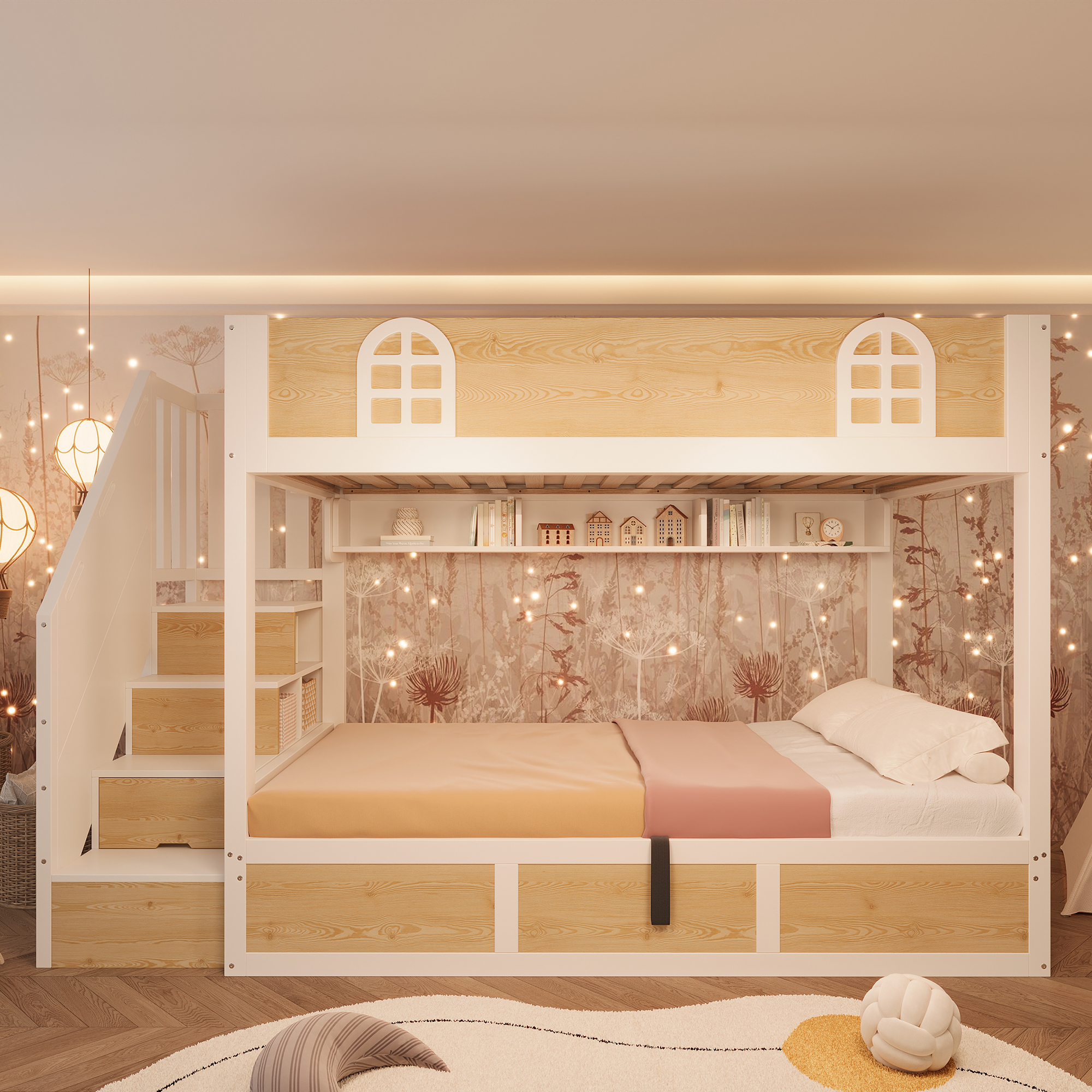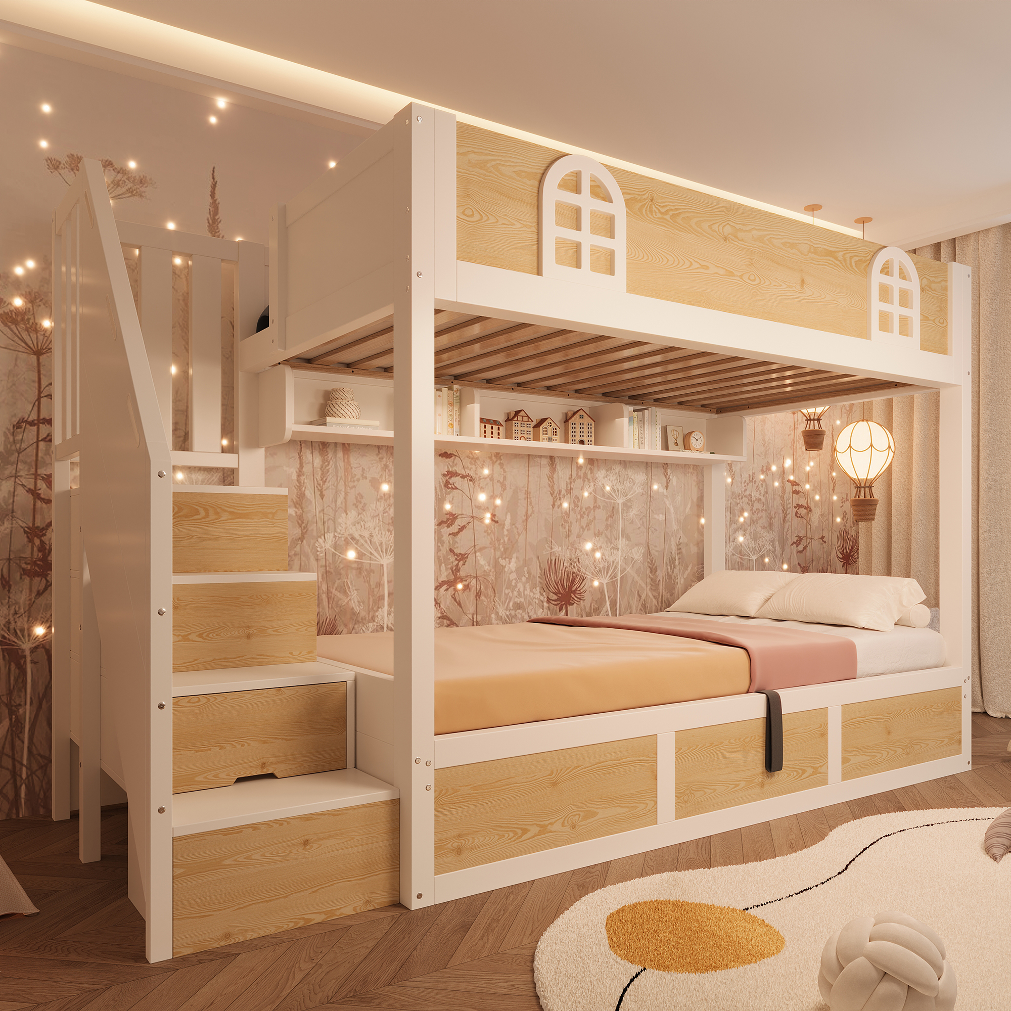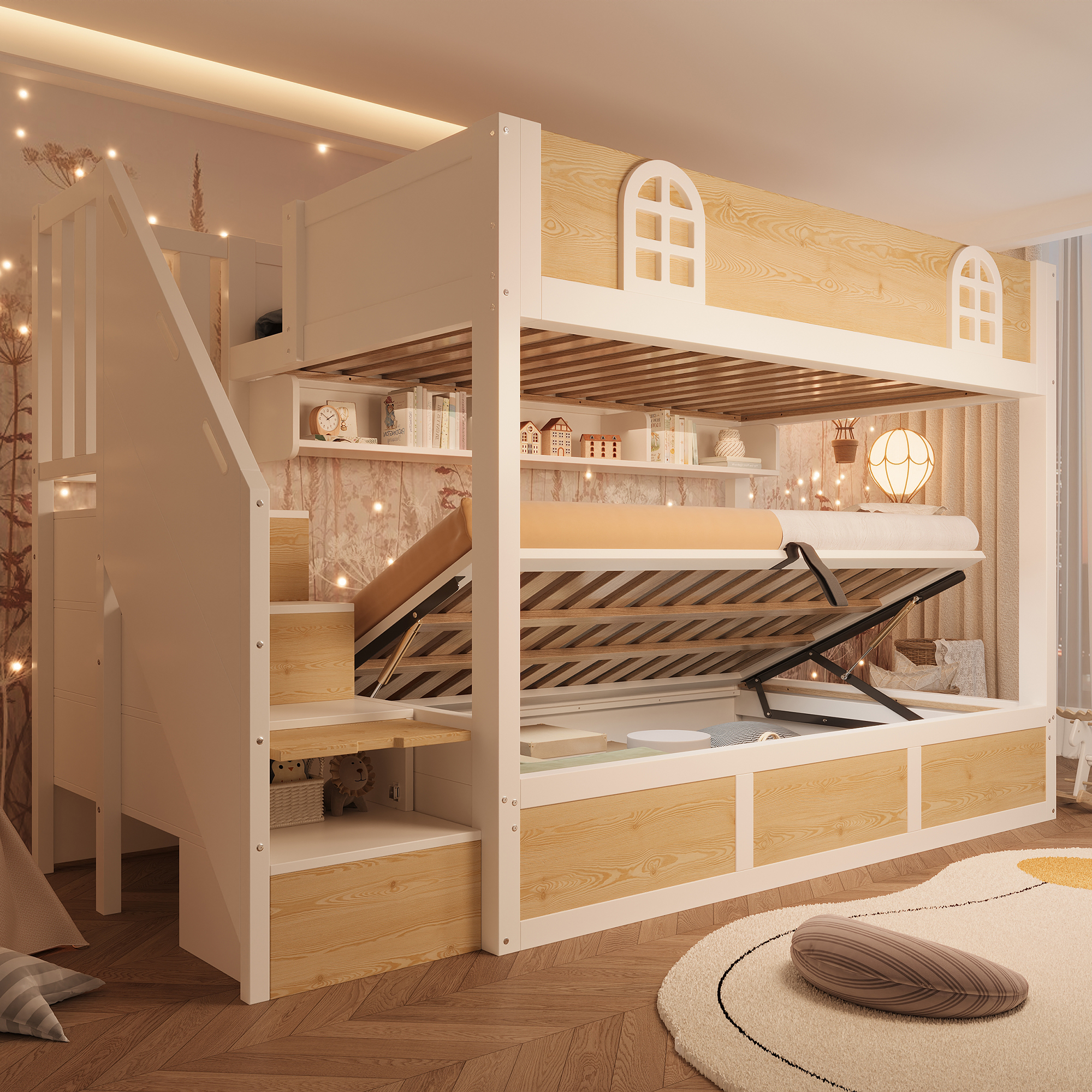 Specification Product Information Product Type :Combo Item Product Name:Bunk Beds for Kids, Staircase Bunk with Storage Cube, Children's Bed with Hydraulic Storage, Double Bed High Sleeper for Family with Multiple Chi...