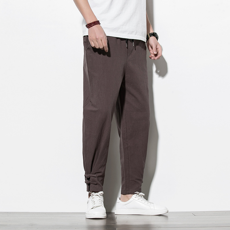 Chinese Style Cotton Linen Men's Track Pants