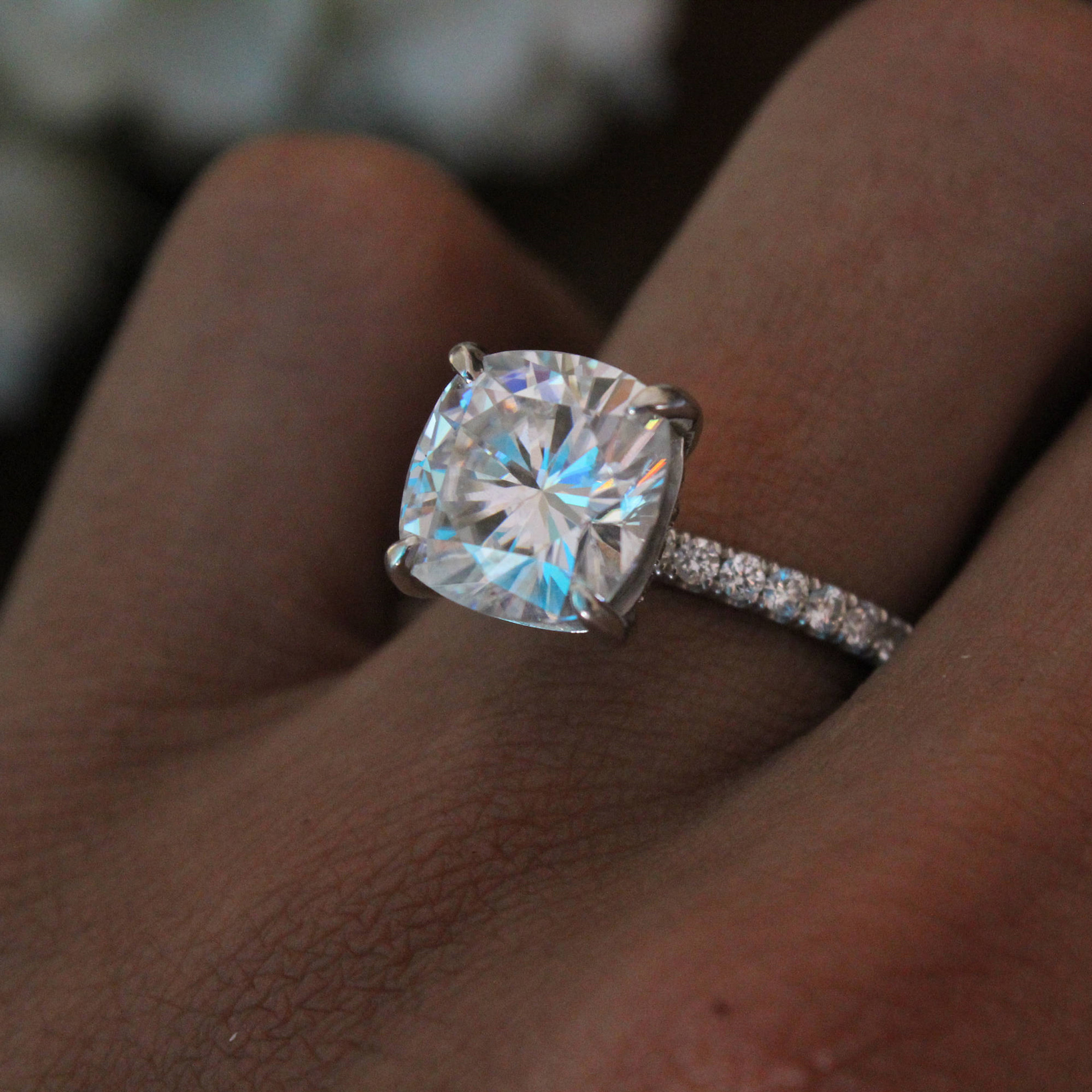 Classic 4 Prong 2ct Princess Cut White Gold Plated Simulated Moissanite Ring For Women,...