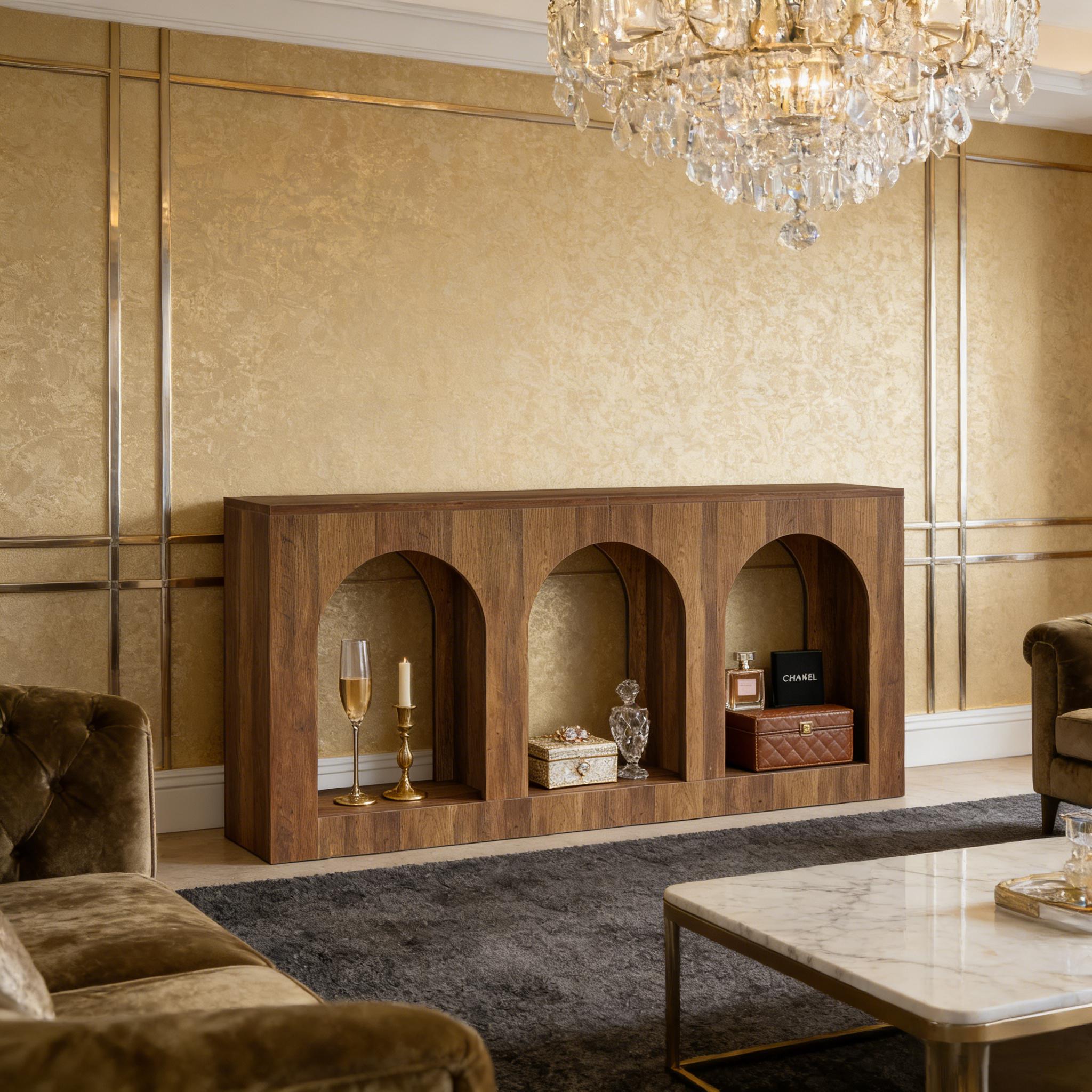 Important Reminder!!! 1) Attention: All products in our store do not support Canada self pickup ordering. Please do not create shipping labels for Canada. Our American products do not support self pickup to Canada 2)We do not ship to Alaska, Hawaii, US protectorates (e.g., Puerto Rico), P.O. boxes, or APO/FPO addresse 3)We don’t accept non-defective remorse returns Stylish Arches - This console table has a cool look with three arched cutouts. It's stylish and gives you places to put things. The simple, fancy design goes with lots of different styles. Lots of Storage Space - At 70.9" W x 11.8" D x 35.4" H, this table has three big arched shelves with tons of room to store and show off your stuff. The open design makes it easy to see and grab things, keeping your space tidy. Strong and Well-Built - Made from strong MDF, this arched console table is built to last. It's sturdy enough to hold heavy decorations without wobbling, so you can safely display your favorite things. Works in Many Ways - This arched entryway table isn't just for entryways. You can use it behind your couch as a sofa table or even as a TV stand in your living room. Easy to Put Together and Clean - It comes with easy instructions and all the parts, so it's simple to assemble. The smooth finish is easy to clean with just a damp cloth.