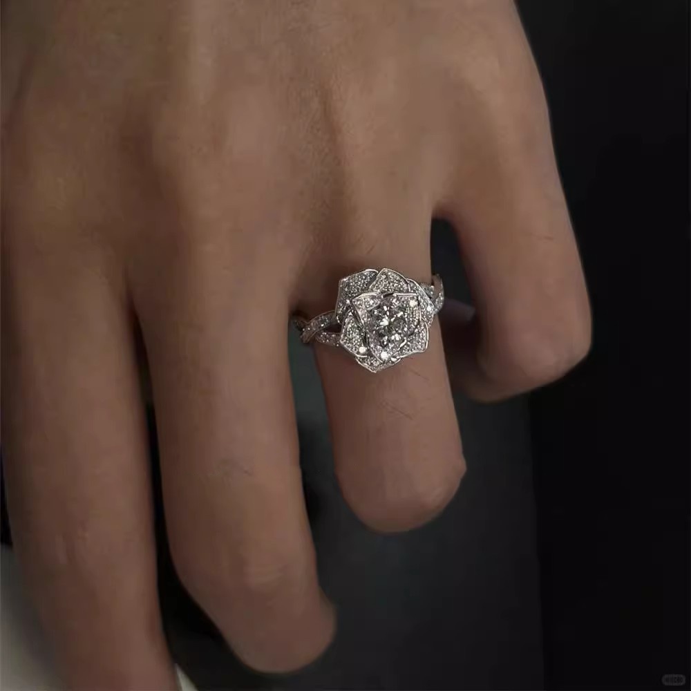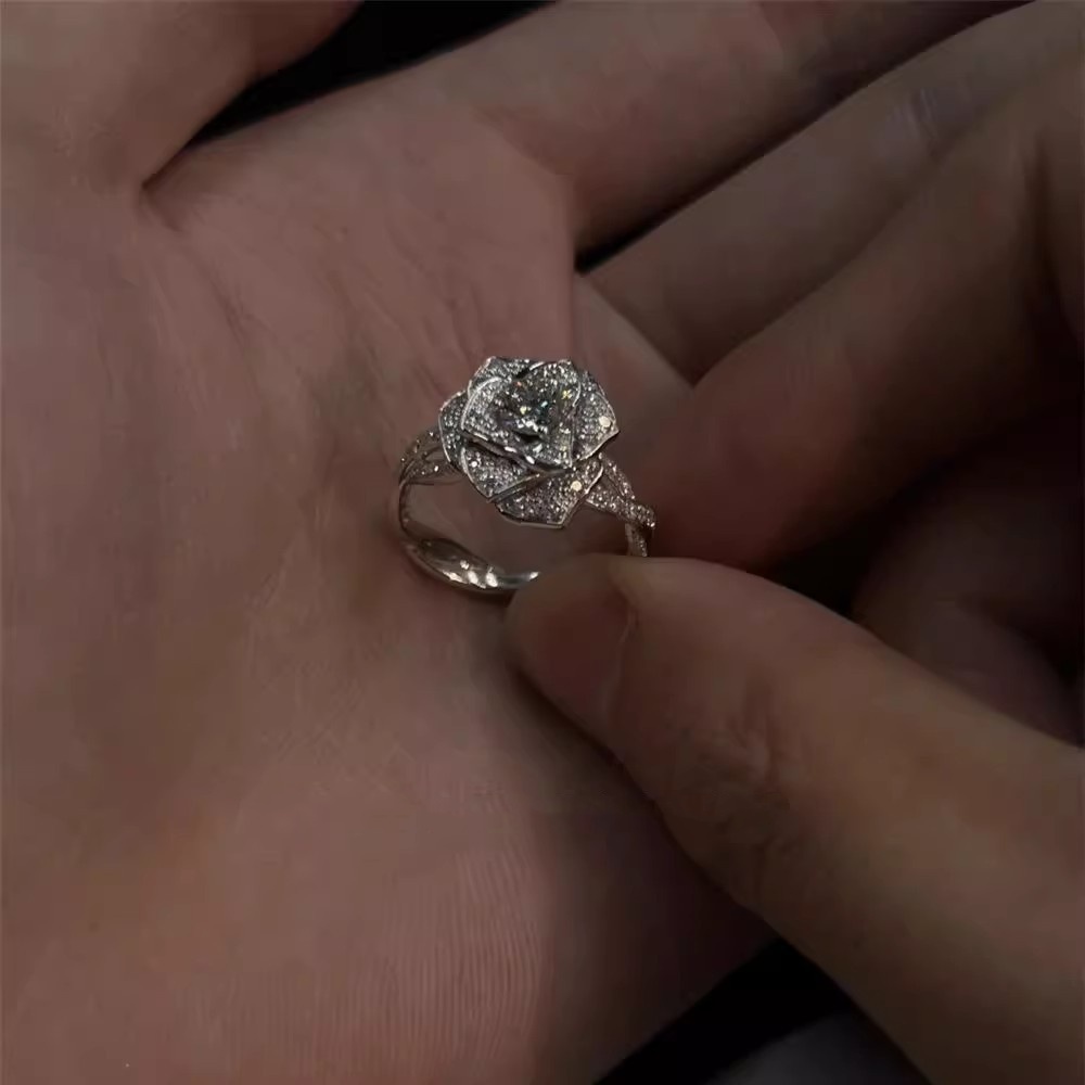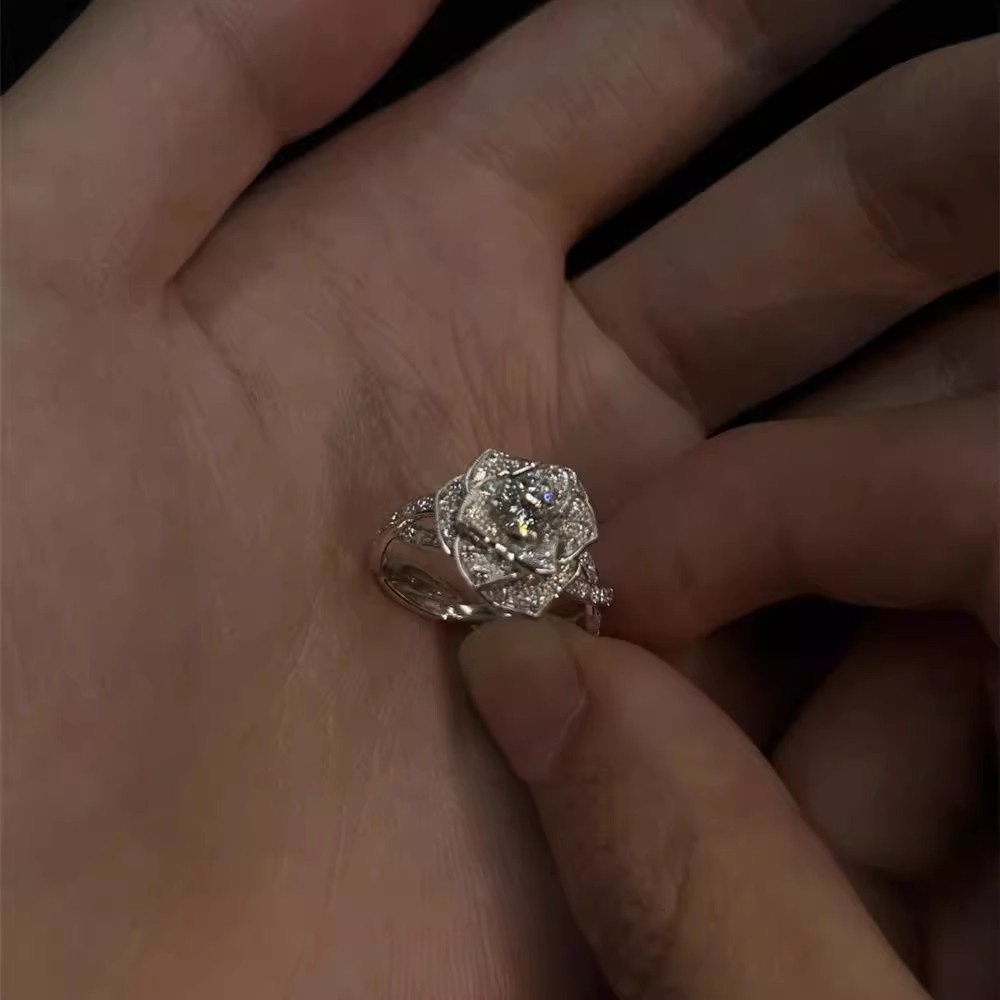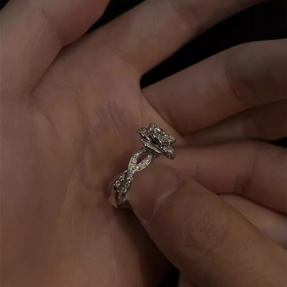 Clear And Cool Zircon Micro Inlaid Three dimensional Rose Ring
