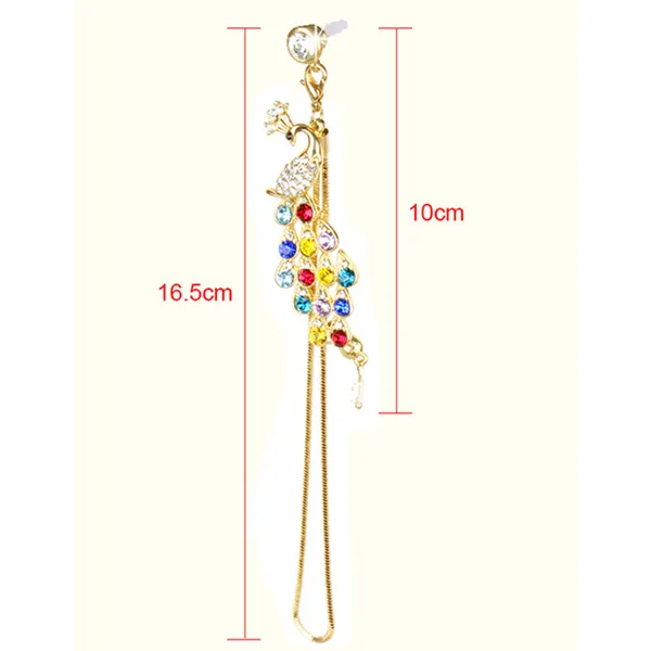 Colorful Crystal Diamond Peacock Dust Cap Pendant For Cell Phone 3.5mm Jack