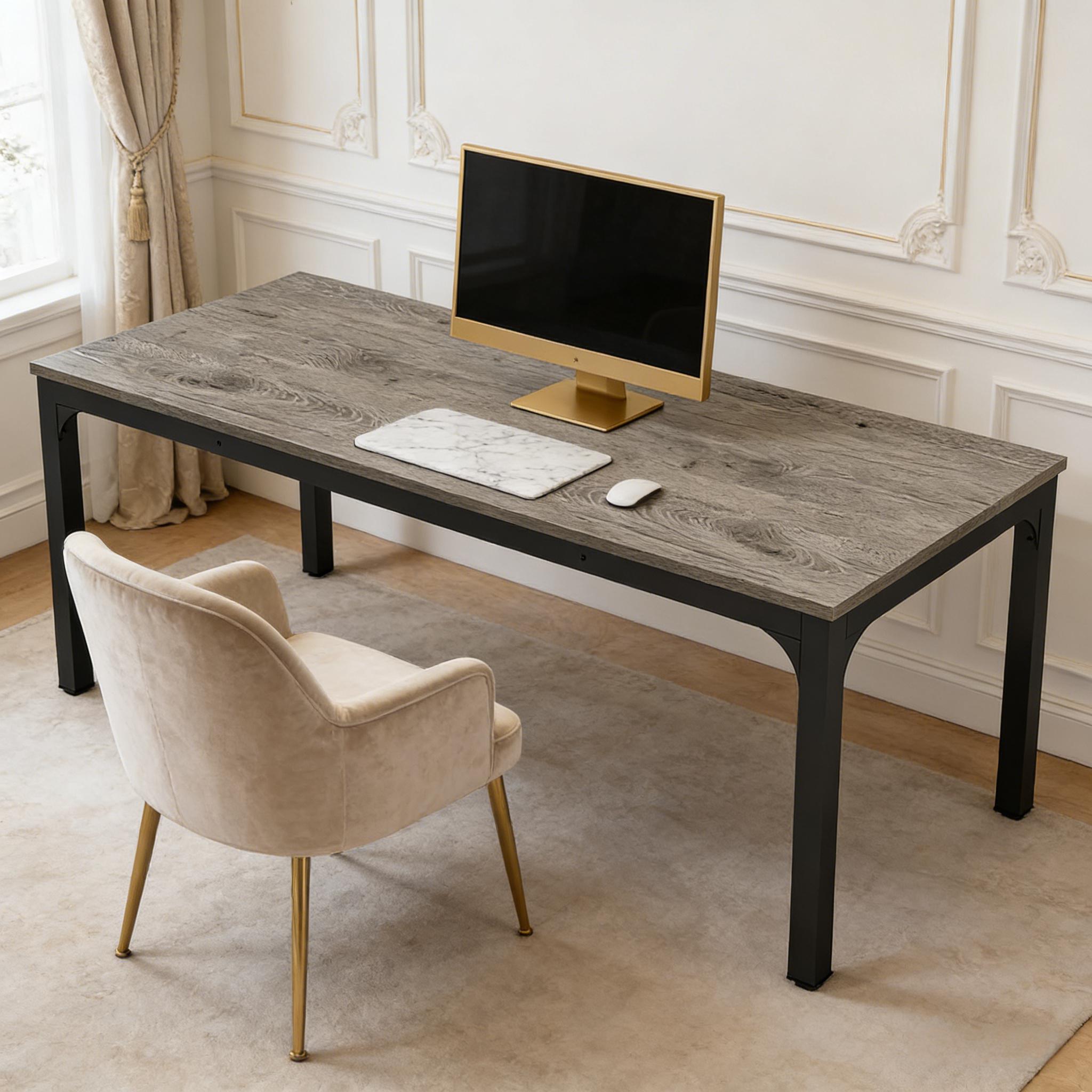 Important Reminder!!! 1) Attention: All products in our store do not support Canada self pickup ordering. Please do not create shipping labels for Canada. Our American products do not support self pickup to Canada 2)We do not ship to Alaska, Hawaii, US protectorates (e.g., Puerto Rico), P.O. boxes, or APO/FPO addresse 3)We don’t accept non-defective remorse returns Sturdy Construction - The desk panel is made from a durable 0.98" thick MDF board, and the legs are composed of heavy-duty 1.97" by 1.97" width powder-coated iron pipes for superior stability. Spacious Work Area - This desk offers an exceptionally large 78.7"W x 27.5"D desktop. This spacious workspace easily houses your laptop, phone, books, files, and more, keeping everything you need within your reach. Versatile Use - Perfect for team meetings, brainstorming sessions, and client conferences, this business table's stylistic versatility complements any office or conference room environment. Industrial Style - With a clean and simplistic style void of frills, it caters to originality. Adjustable foot pads eliminate wobble and avoid floor scraping. Fast Assembly & Easy Cleaning - The package includes all necessary tools and instructions. The detailed guide makes assembly straightforward. A damp cloth can easily wipe any dirty stains from its smooth surface.