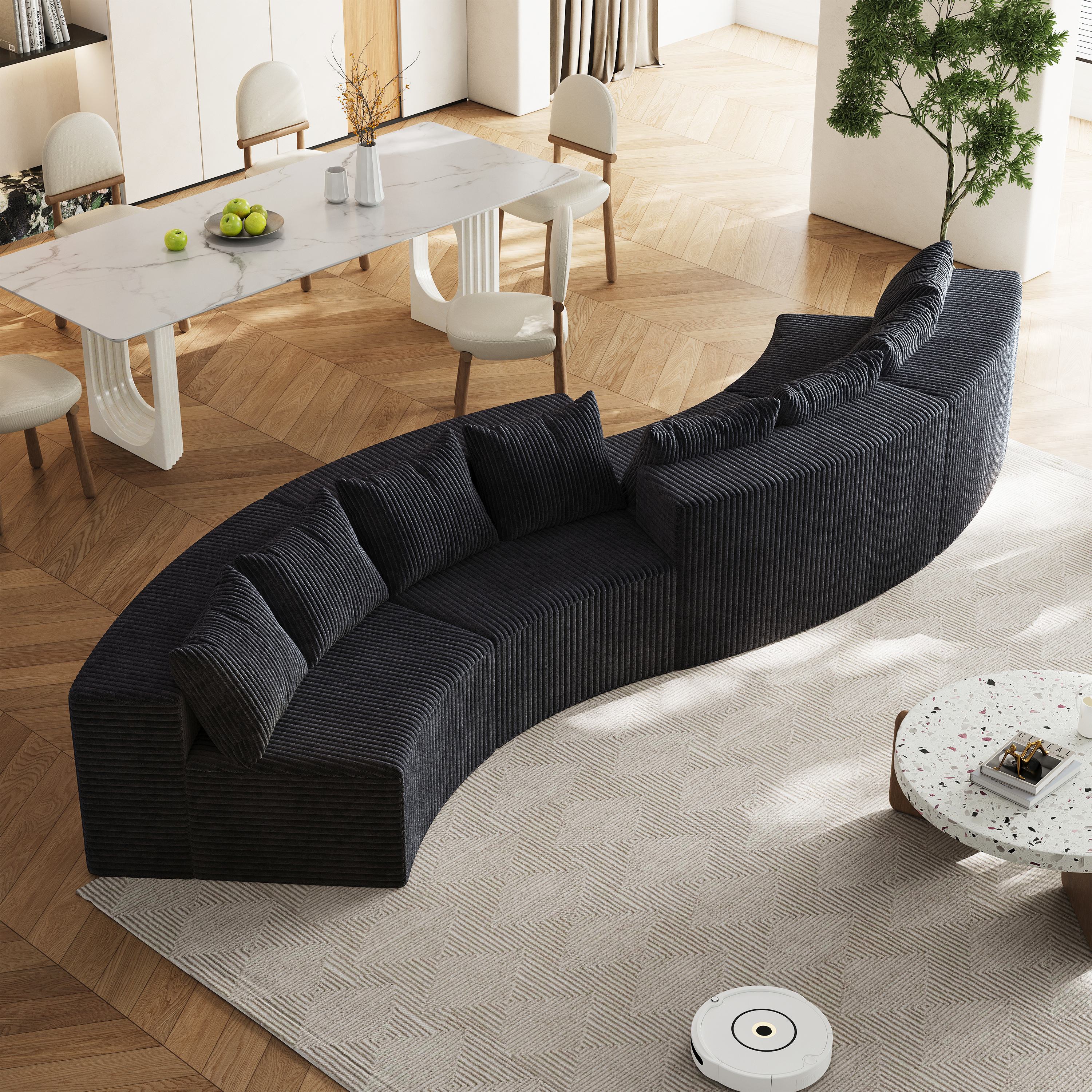 Corduroy Curved Sectional Sofa With 8 Pillows,Curved Symmetrical Modular Semi Circular Sofa...